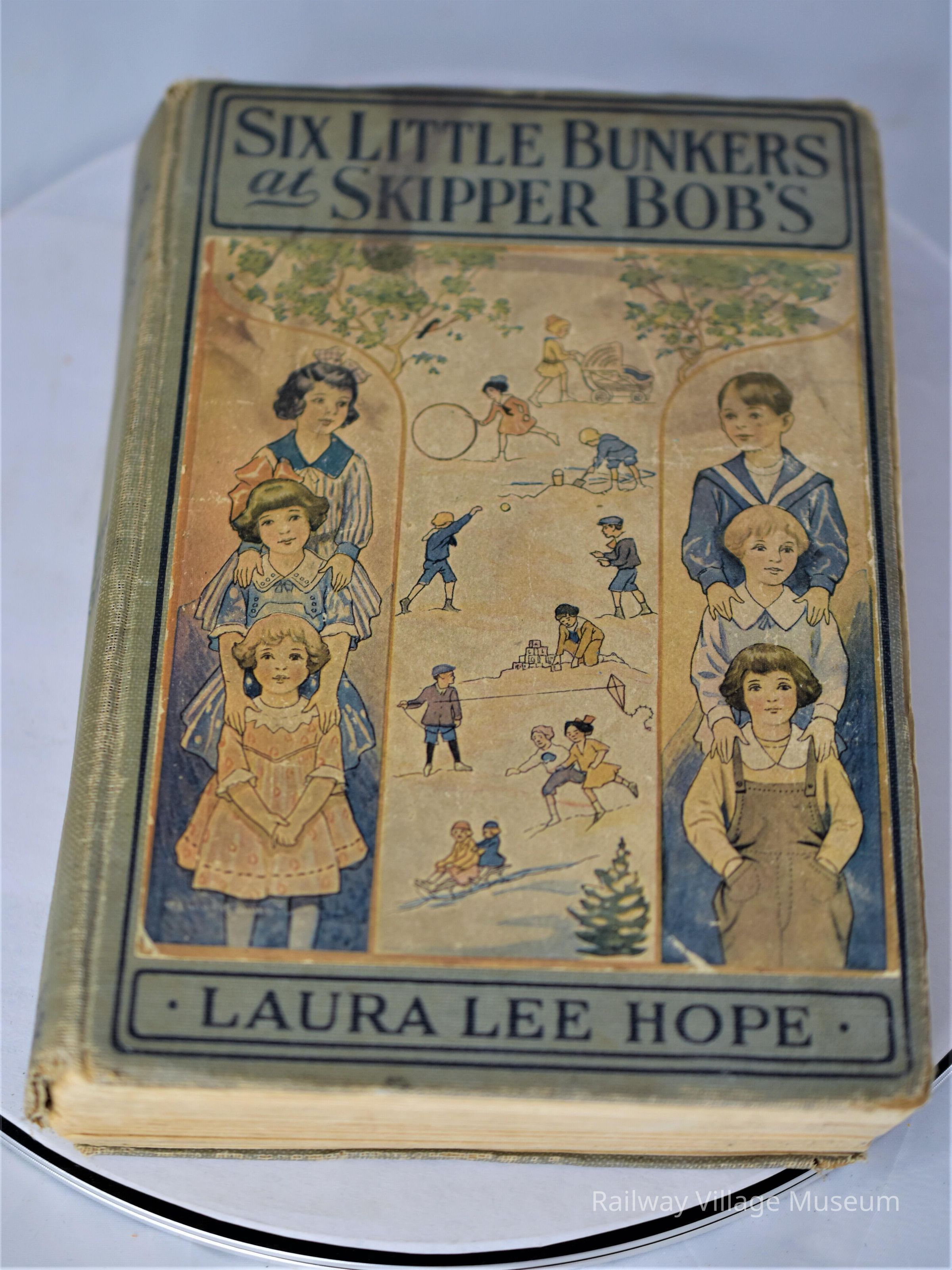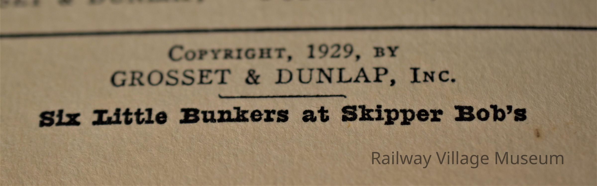 "Six Little Bunkers at Skipper Bob's" was ghostwritten by Eunice Creager, and published by Grosset & Dunlap under the name Laura Lee Hope. The book itself is in good condition, though the spine is worn. The pages are slightly discolored with age, and on the front inside cover there is a message written by the previous owner.Lexicon