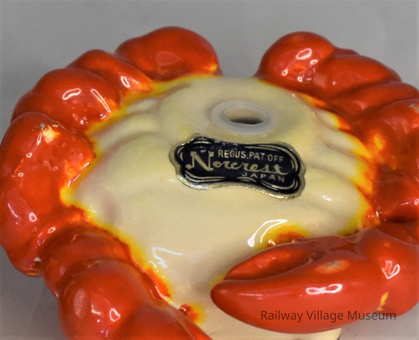 Vintage ceramic figural crabs salt and pepper shakers. Pepper shaker has original "Norcrest" label.