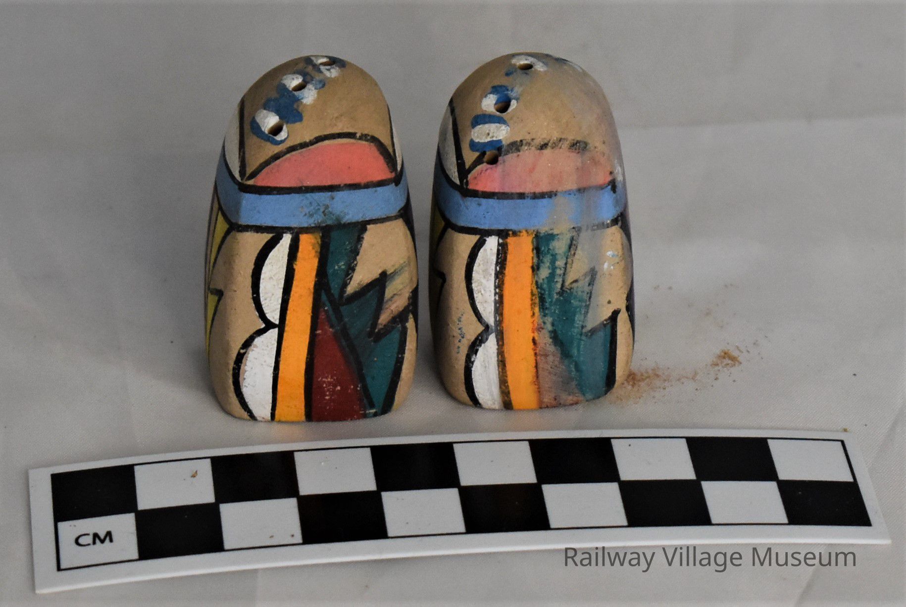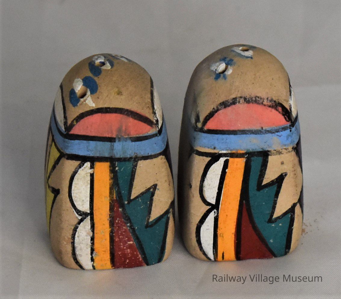 Vintage Pottery Hand Painted Graphics Salt and Pepper ShakersEntry/Object ID