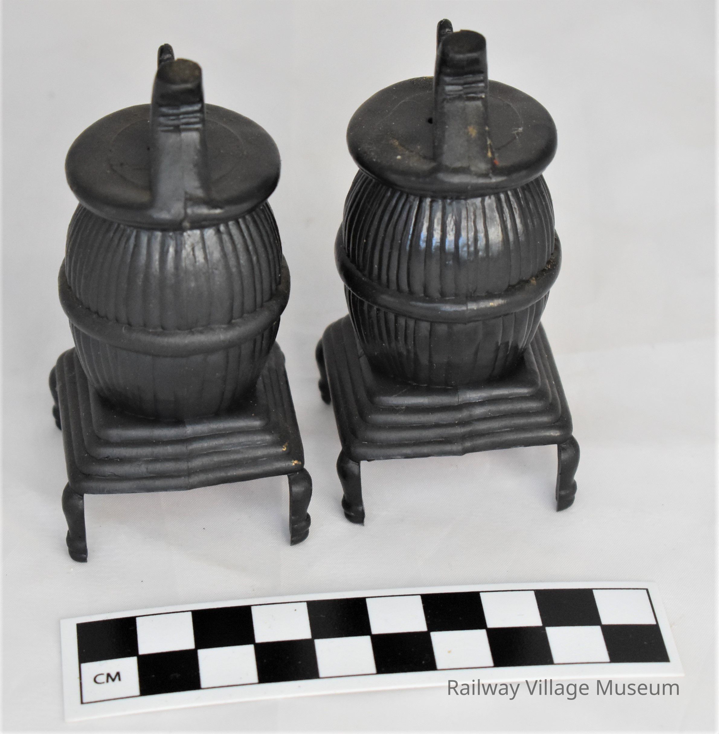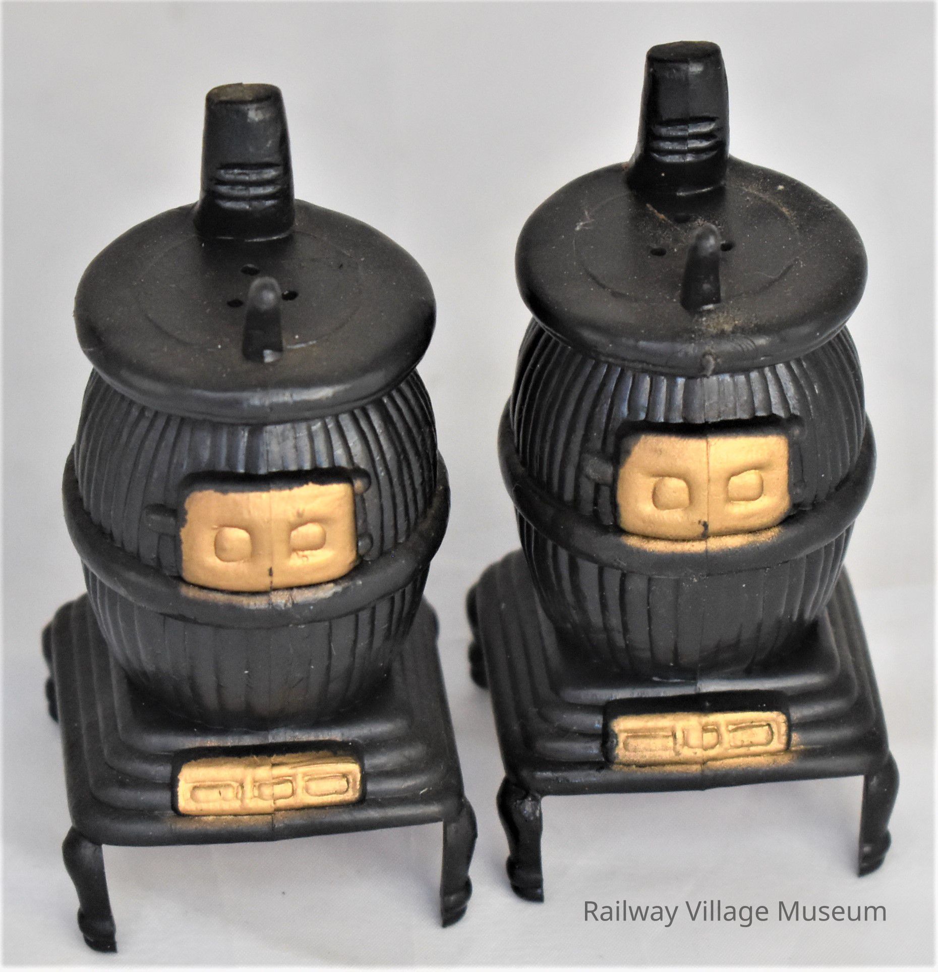 Pot belly stove salt and pepper shakers: 2023.1.105a, and 2023.1.105b