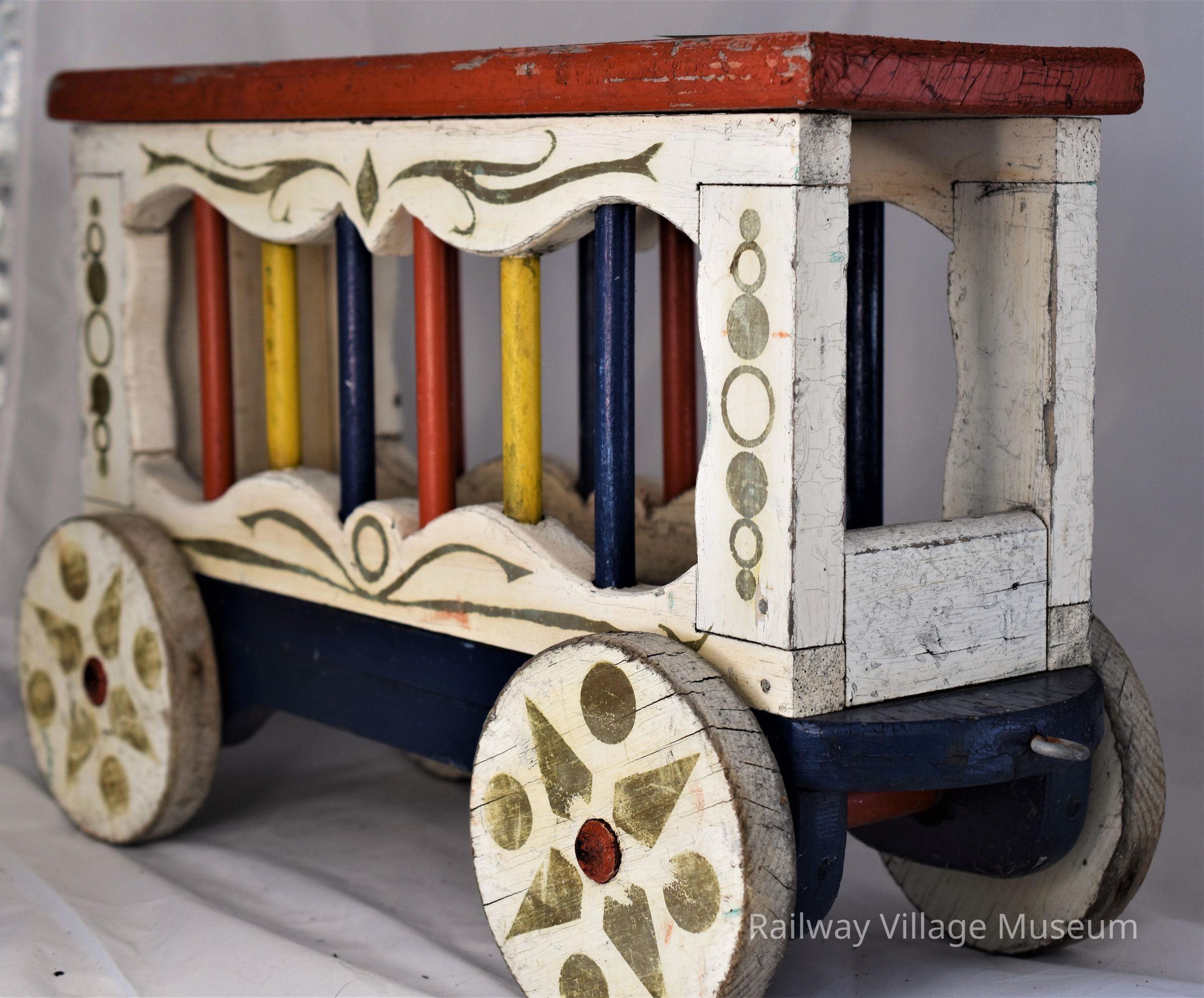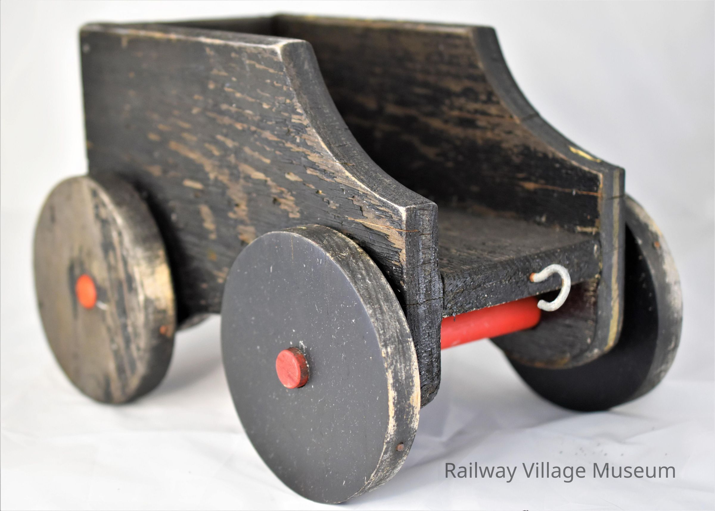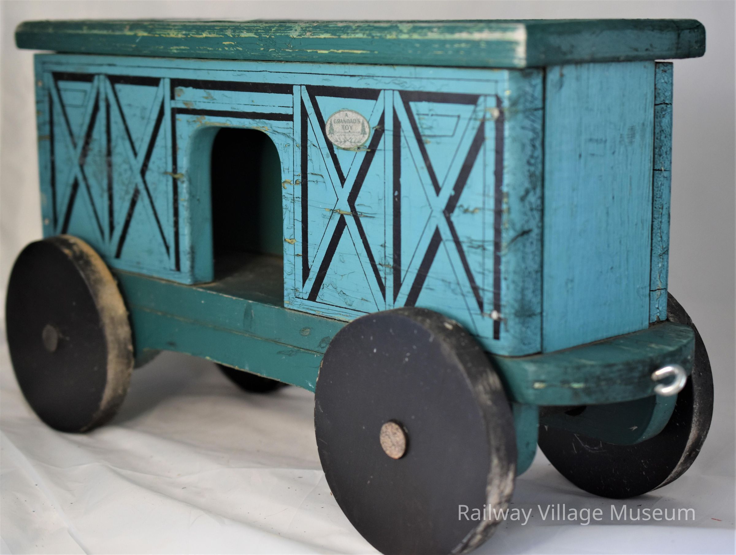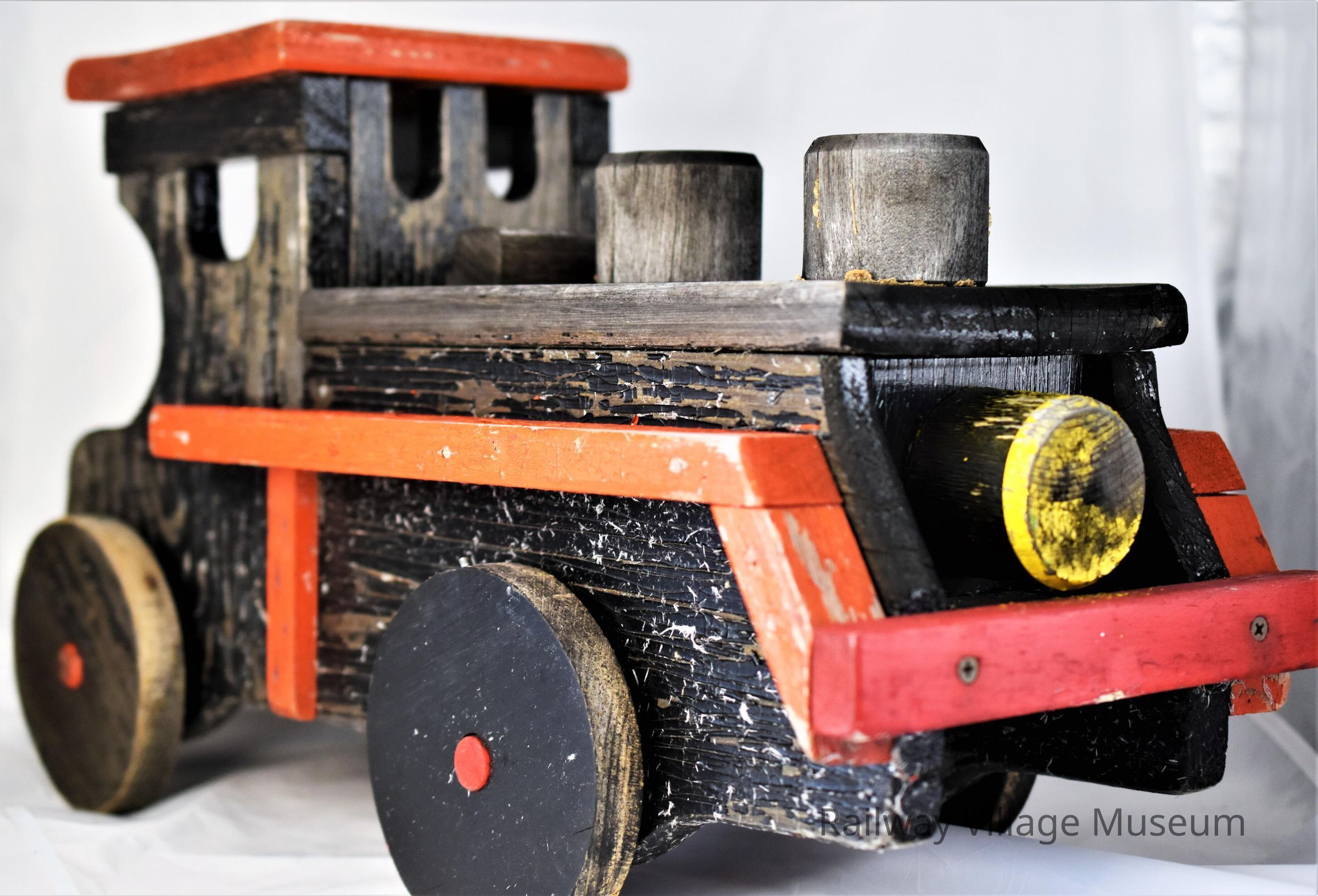 This train consists of six cars and two spare wheels. It was built in 1953, as seen by the logo stamped to the side of the Passenger Car. The whole set is a part of the Grandad's Vermont Railroad. They fit together by the original hooks in the front and back of each car.