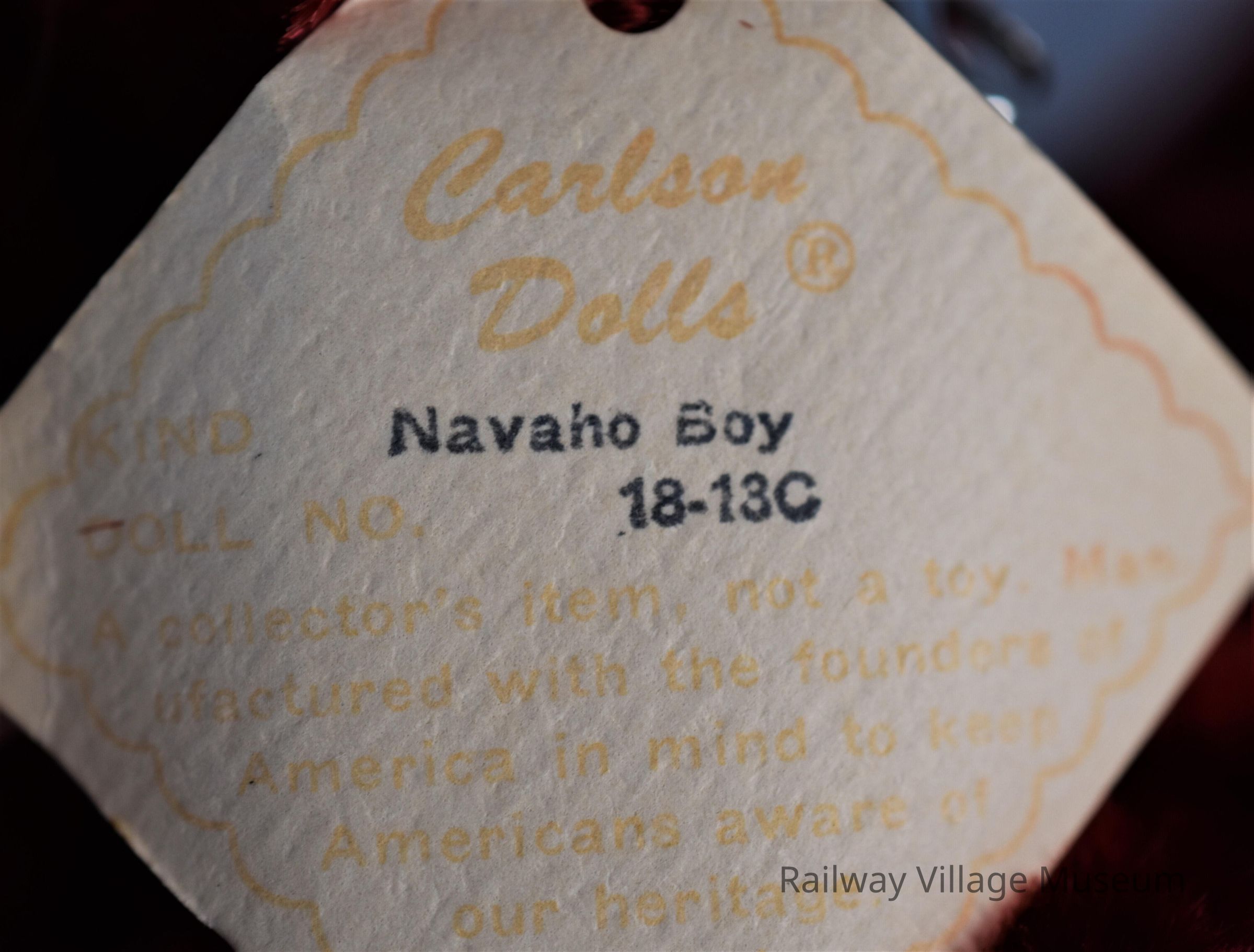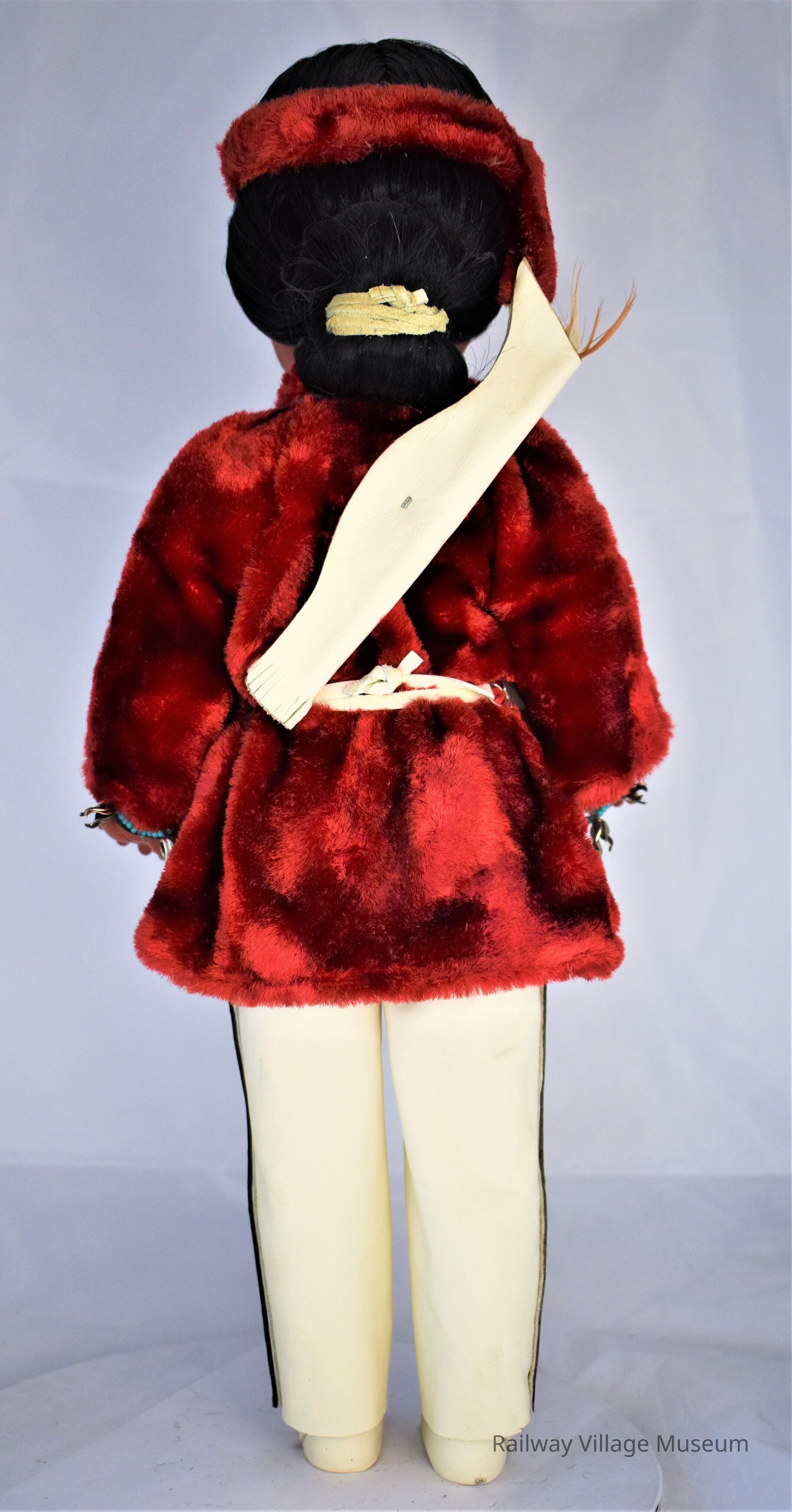 A doll of a Native American Navajo Boy, dressed in a red shirt and white pants, with a quiver on his back.Lexicon