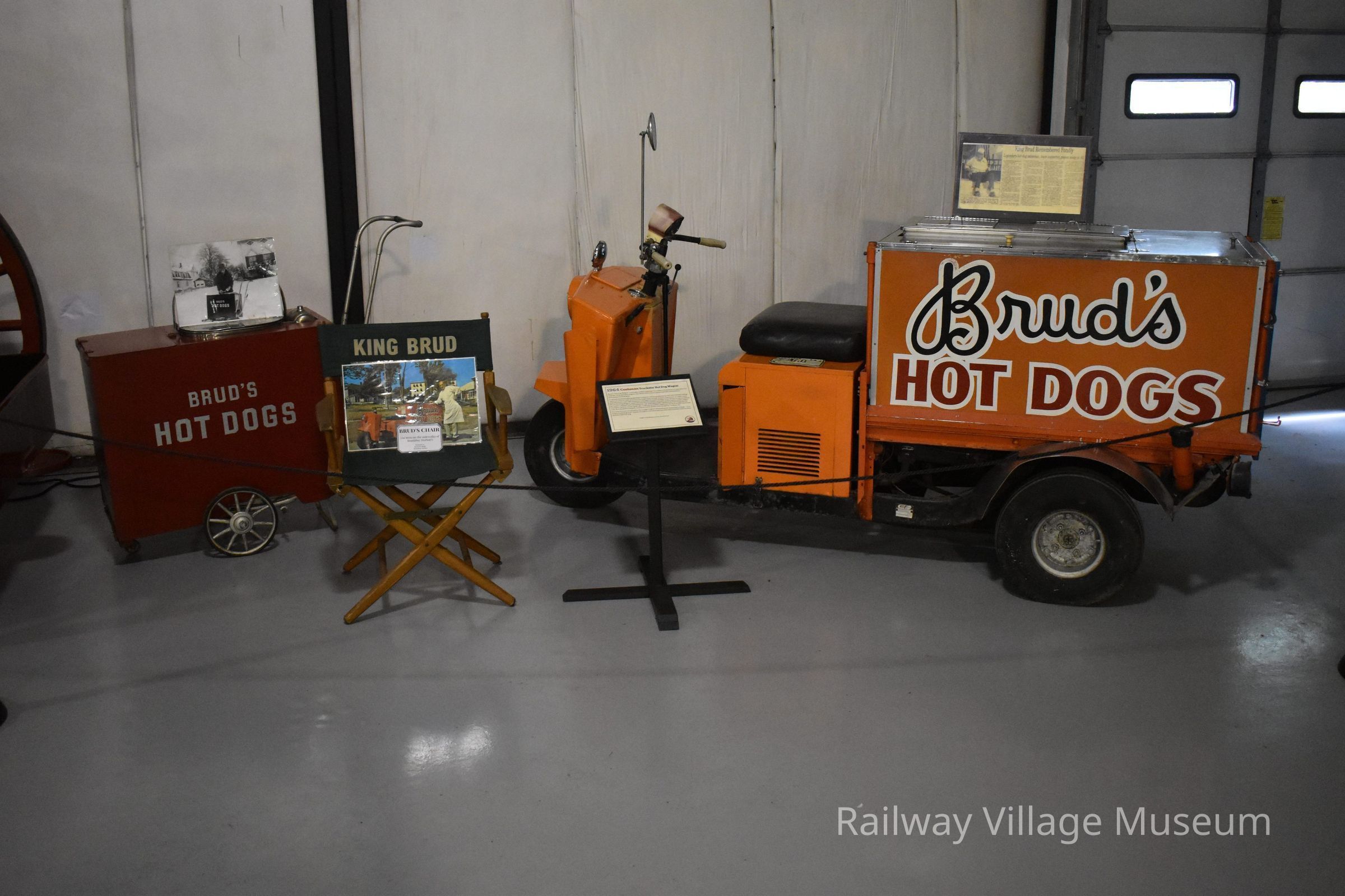 Brud's "Hot Dog Wagon" is a 1964 Cushman Truckster powered by a two-cylinder, four-stroke gasoline engine with electric start that produces 18 hp. It is also fitted with a three-speed manual transmission including a reverse gear. These trucksters were versatile, also being used for parking enforcement, general maintenance, and light cargo transport.Motor Vehicle Type