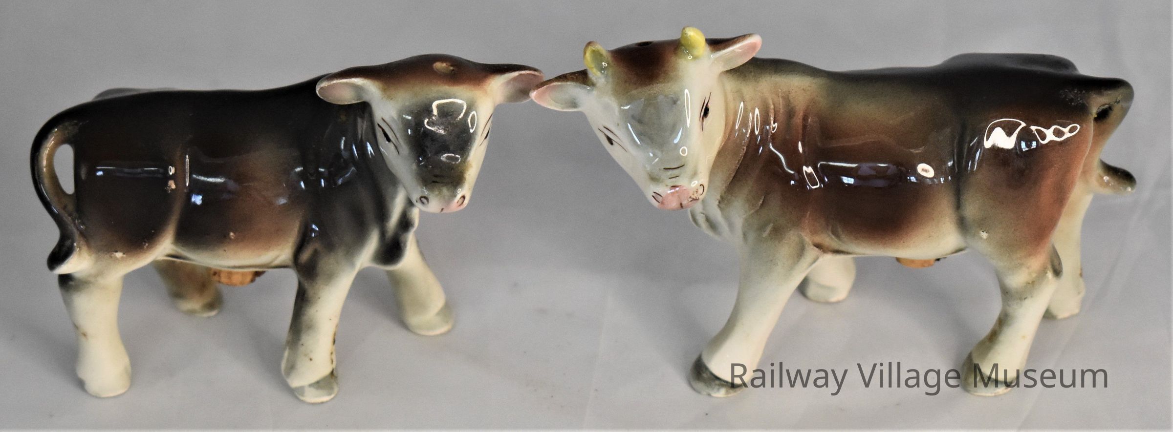 Cow and bull salt and pepper shakers: 2023.1.199a. and 2023.1.199b