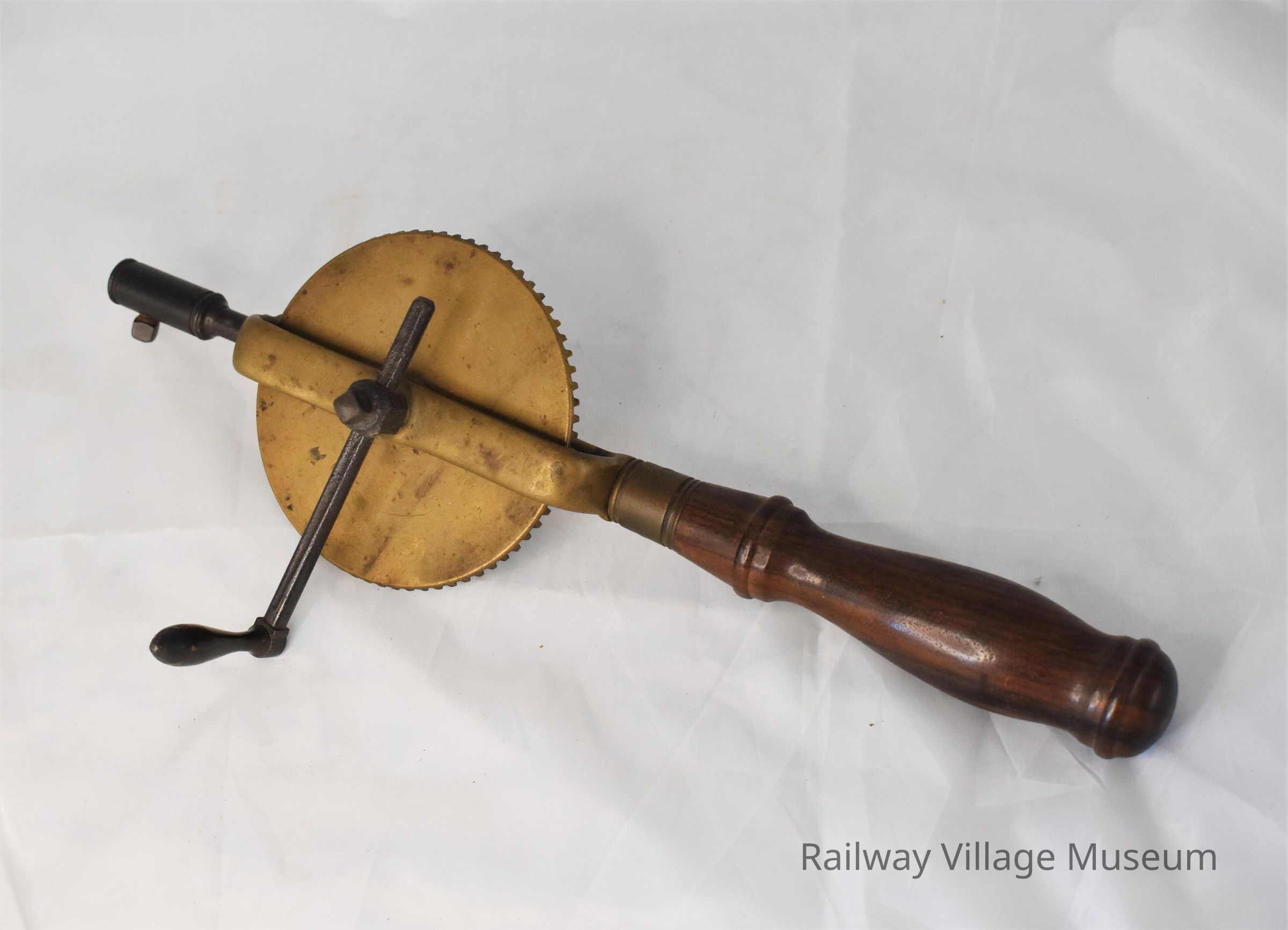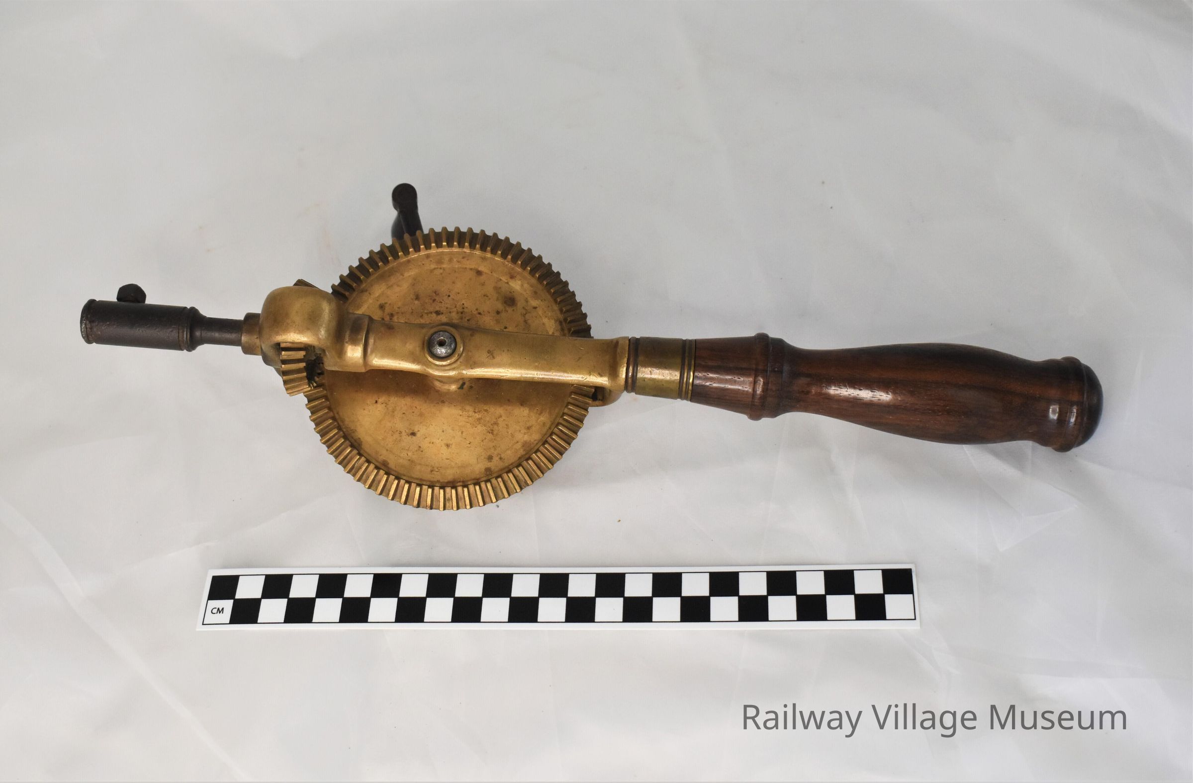 Early Brass Hand Drill with Wooden HandleEntry/Object ID