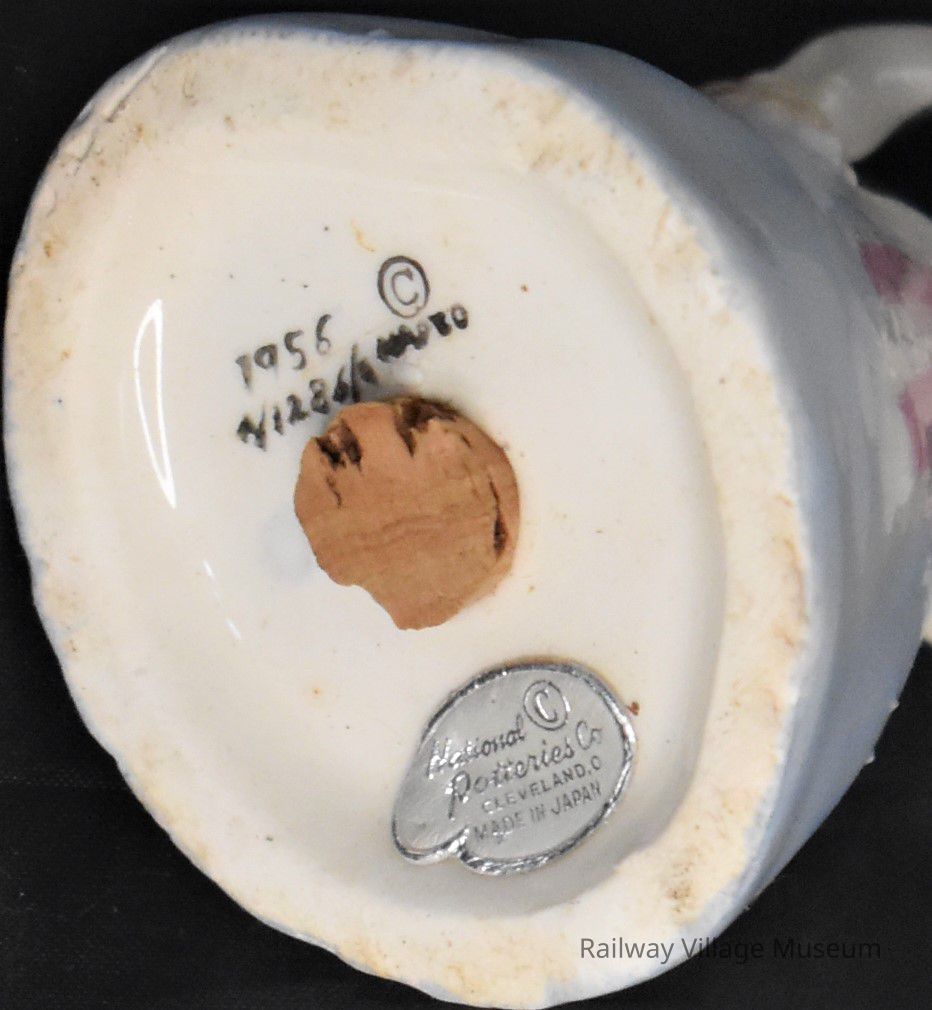 Vintage ceramic kissing man and woman salt and pepper shakers. Original "National Potteries Co. Cleveland Ohio Made in Japan" on the bottom of woman shaker. Both are dated 1956 and numbered "A/1286".