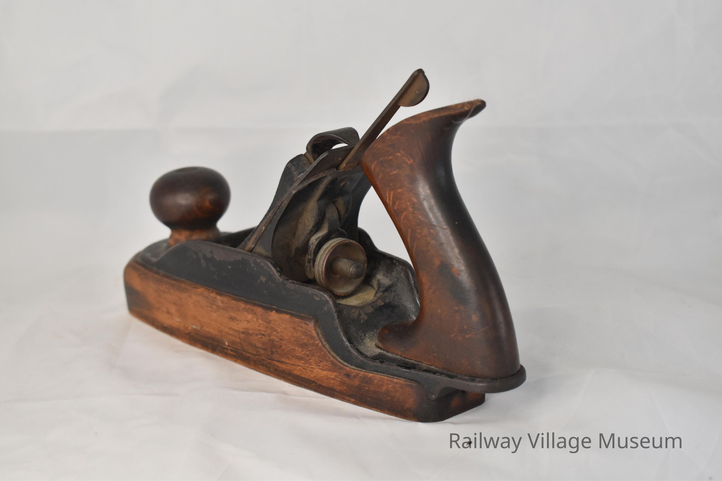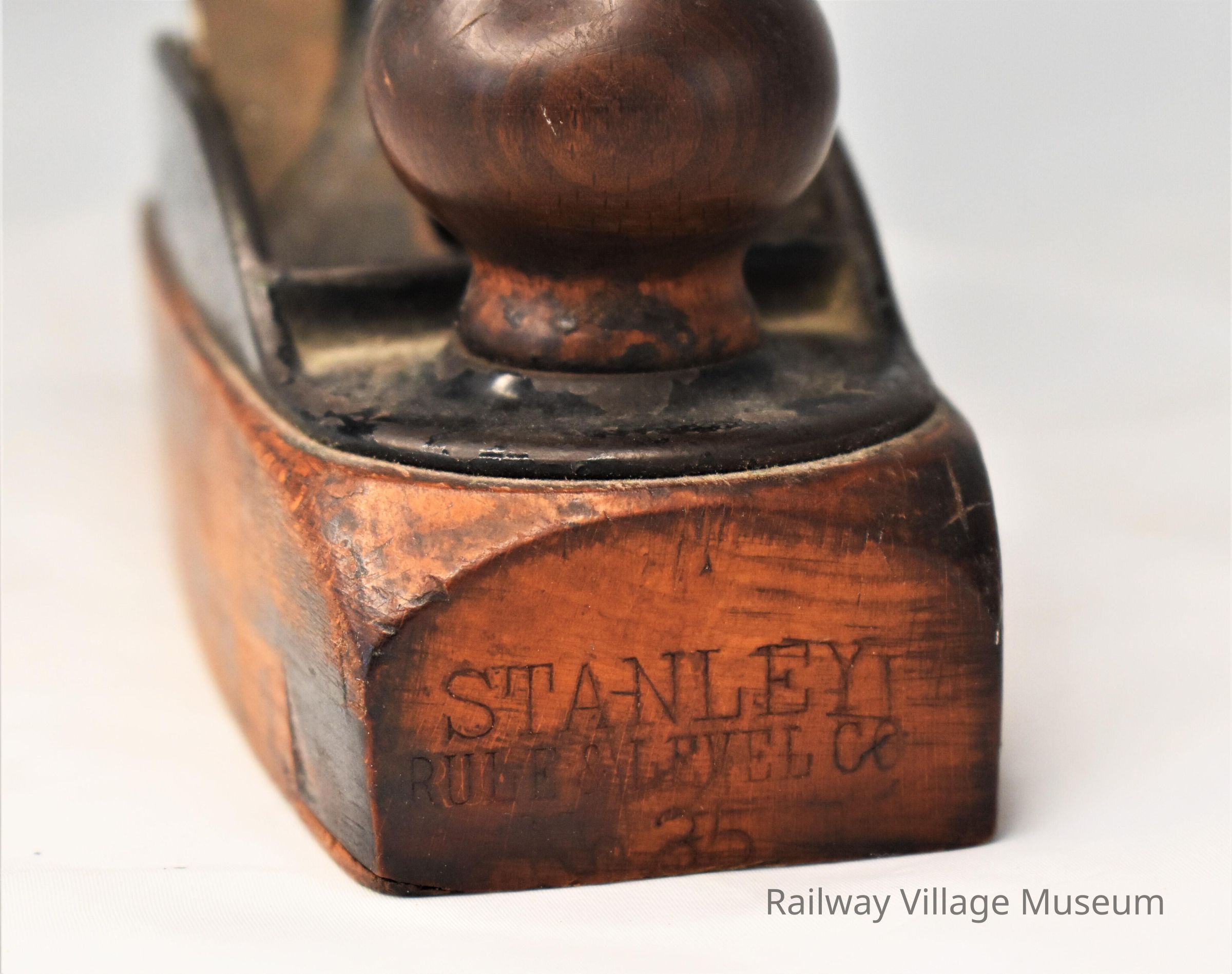 Transitional Iron and wooden smoothing plane. Maker's mark on front: "Stanley Rule and Level Co." "No.35".