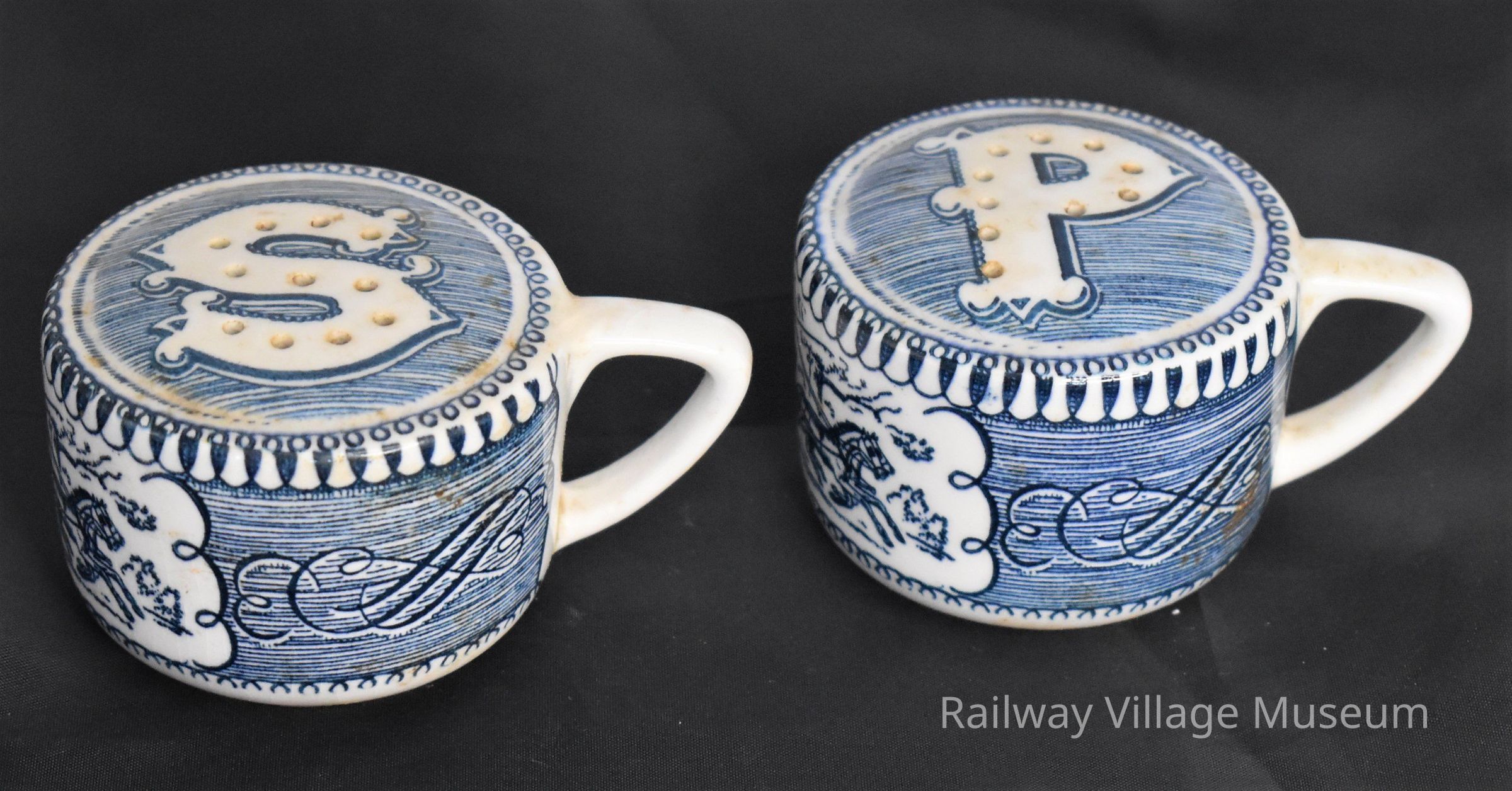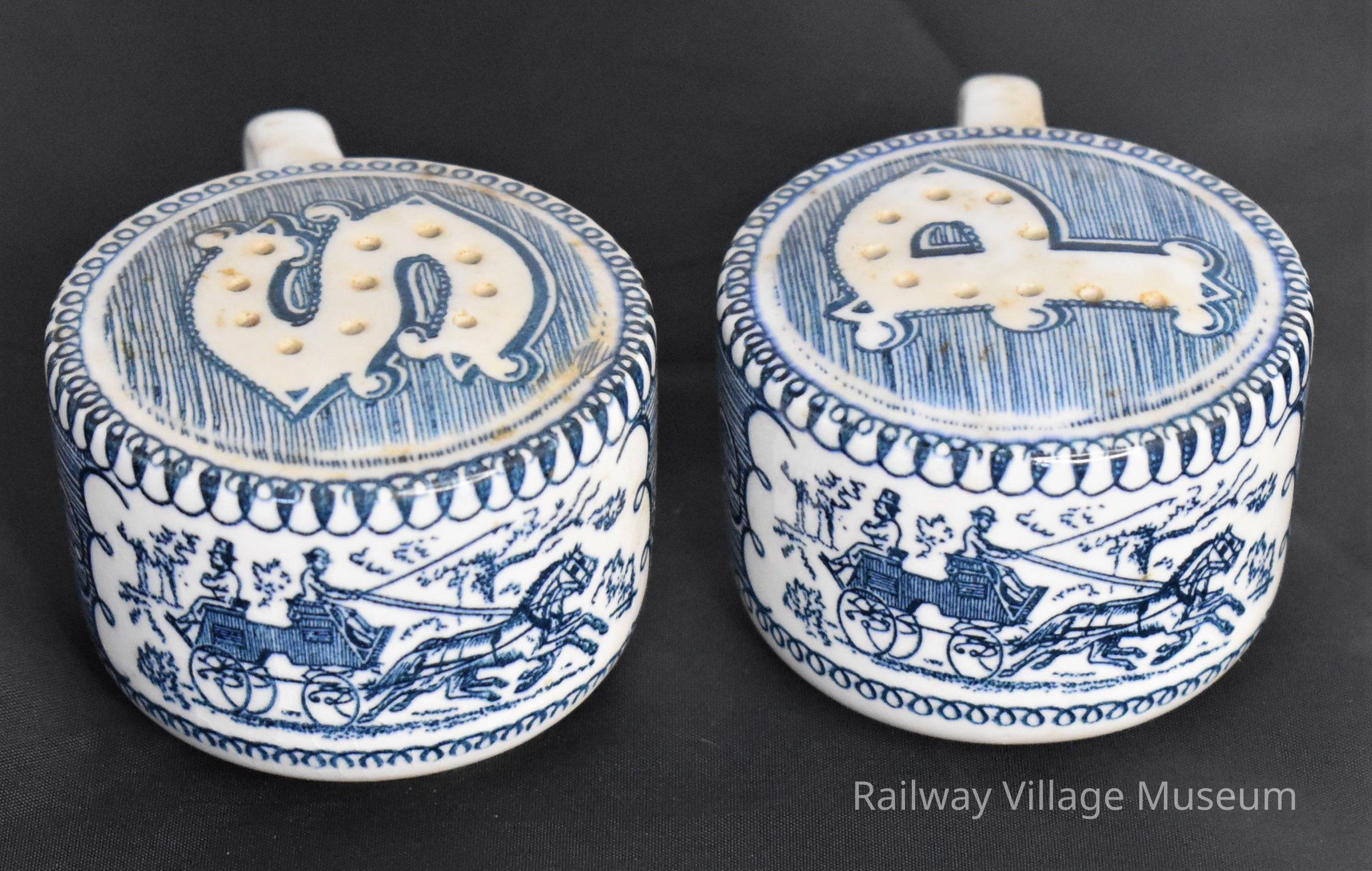 Currier & Ives salt and pepper shakers: 2023.1.119a, and 2023.1.119b