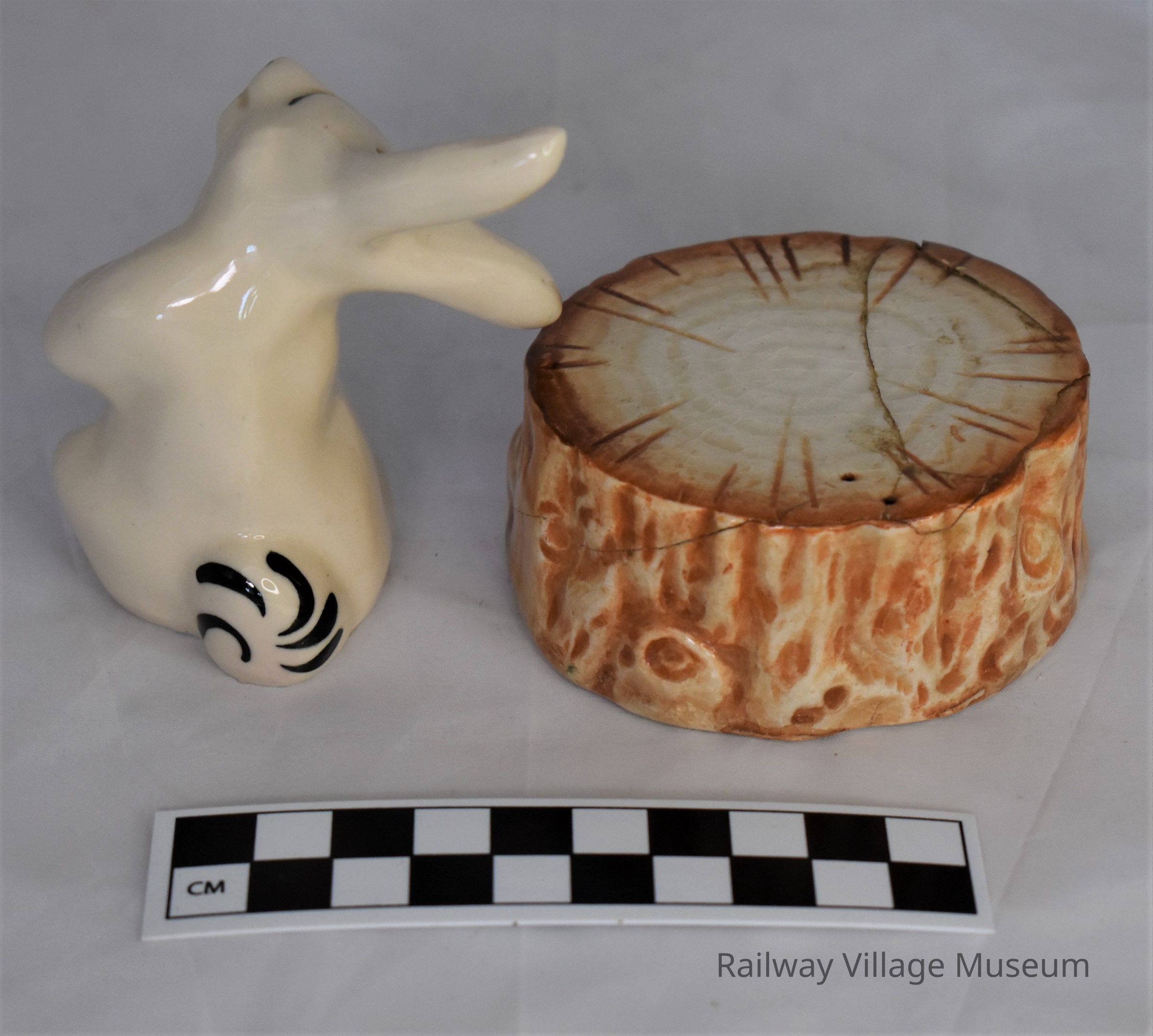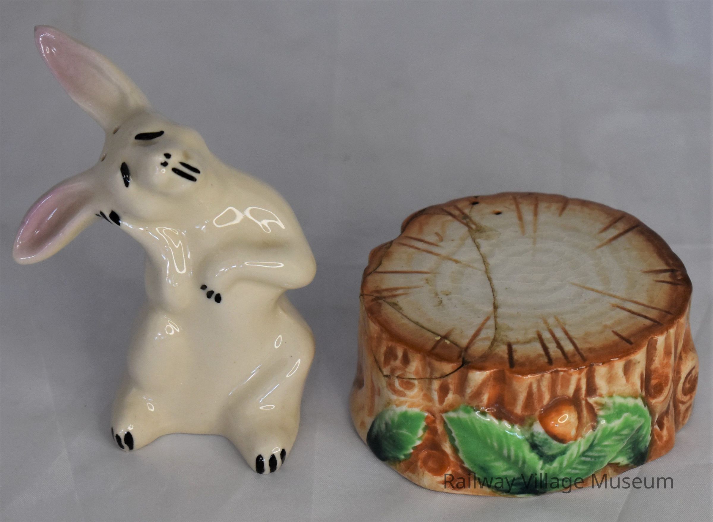 Rabbit and tree stump salt and pepper shakers: 2023.1.90a, and 2023.1.90b