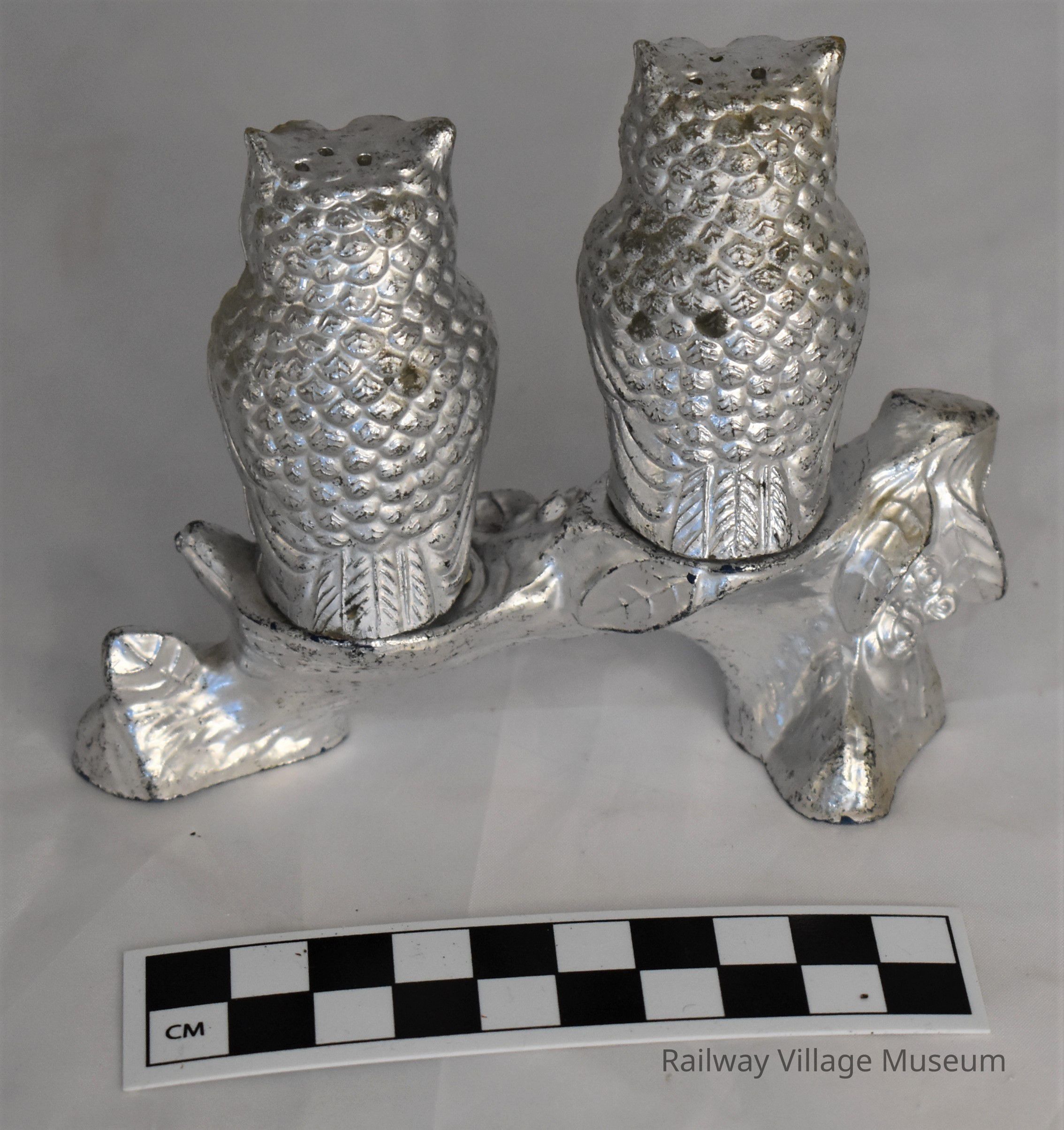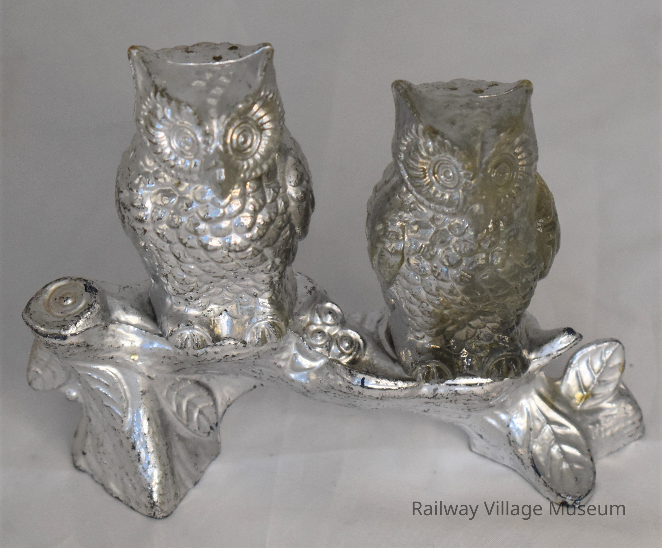 Vintage owls salt and pepper shakers: salt - 2023.1.151a, pepper - 2023.1.151b, and branch holder - 2023.1.151c