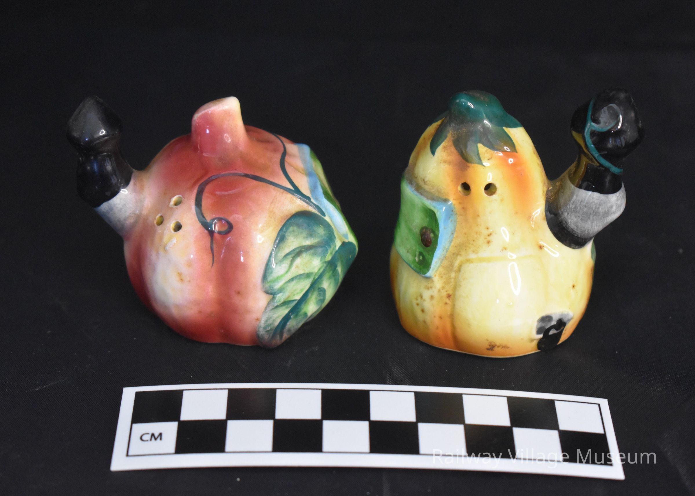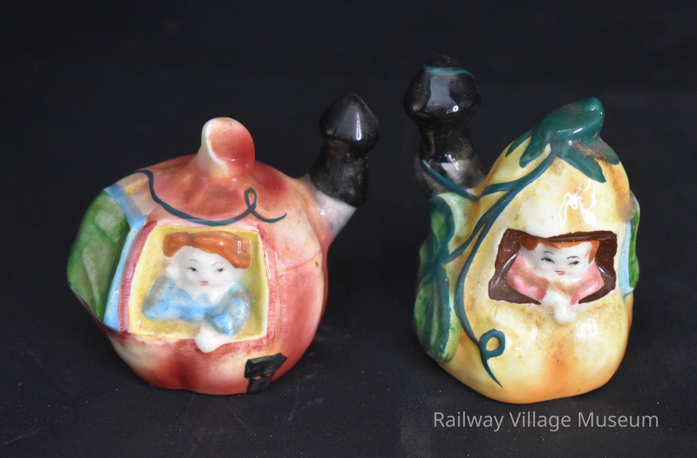 Pumpkin and squash houses salt and pepper shakers: salt - 2023.1.234a, and pepper - 2023.1.234b.