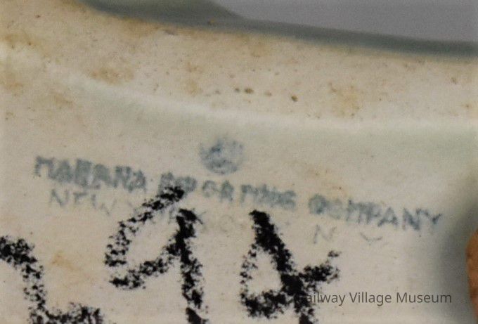Vintage ceramic green alligators salt and pepper shakers marked on bottom - Mahana Importing Company New York City, N.Y. Each shaker has the original "Made in Japan" label.