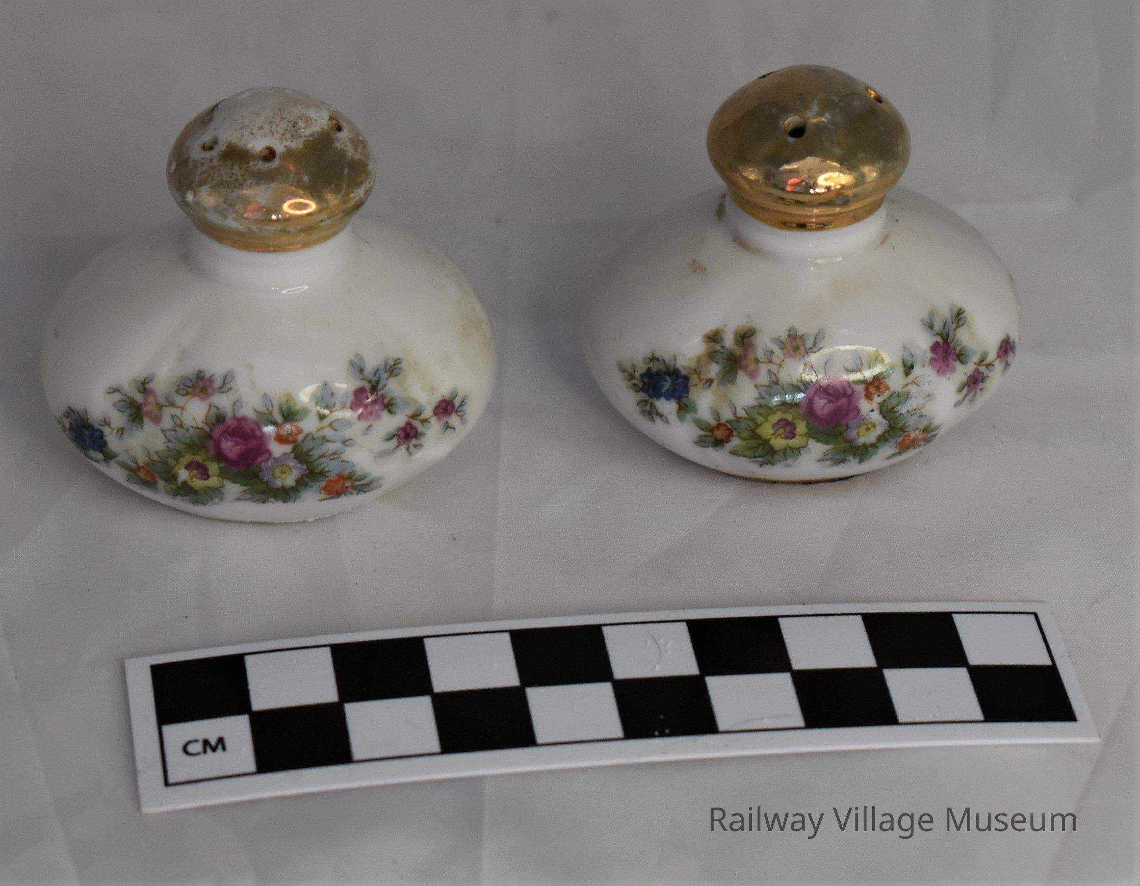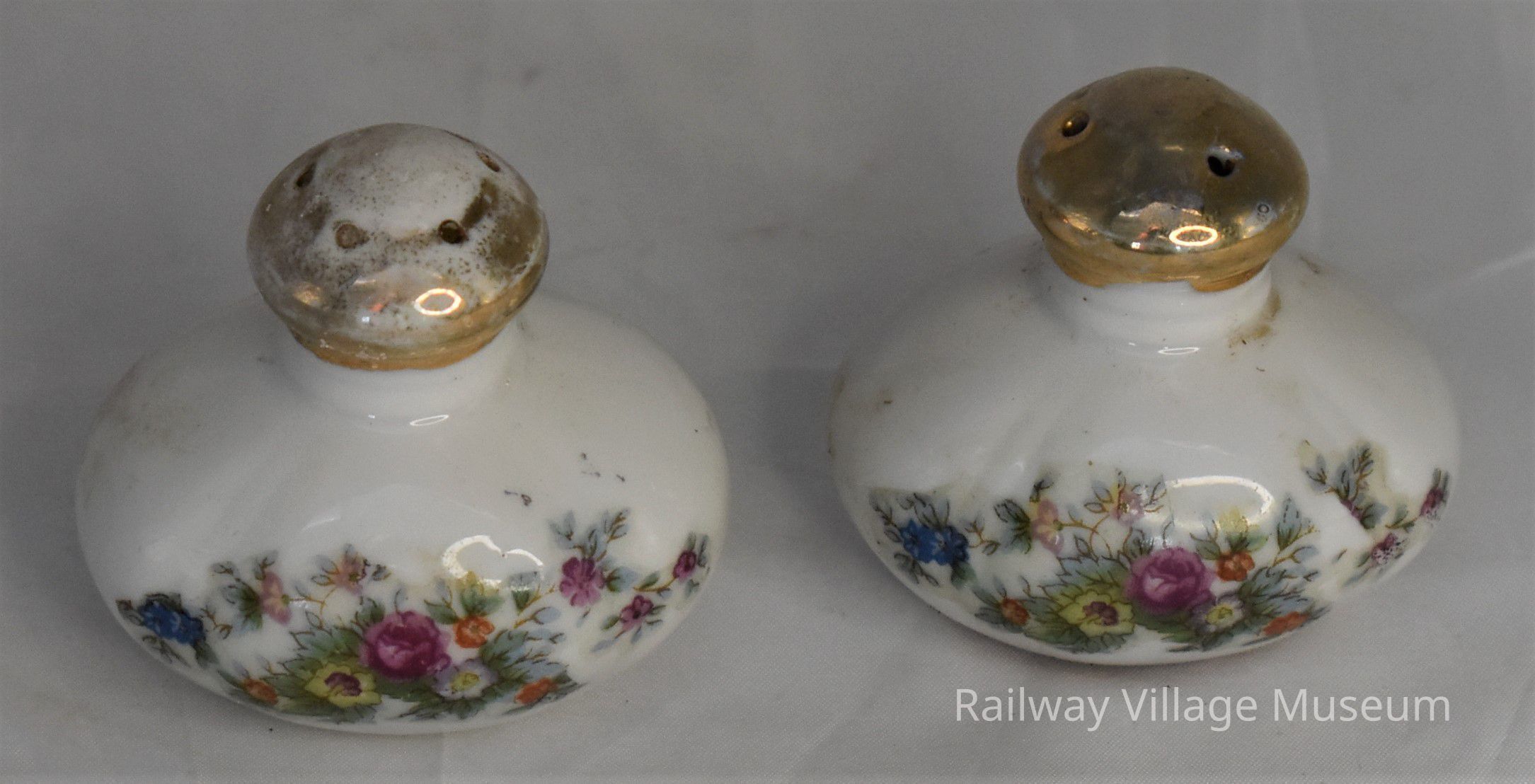 Vintage porcelain floral salt and pepper shakers: 2023.1.6a, and 2023.1.6b