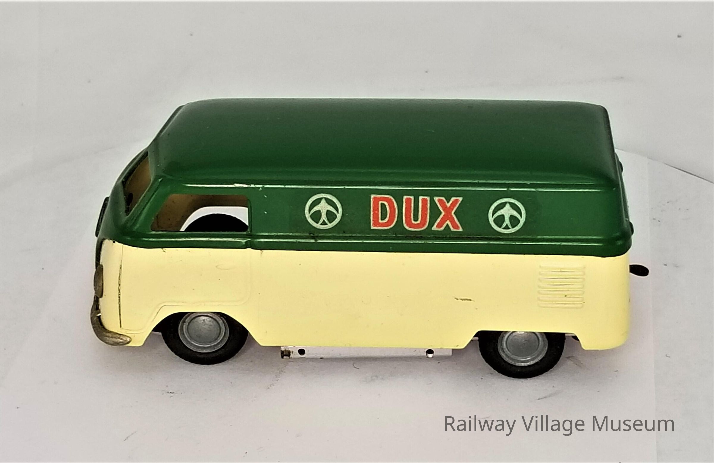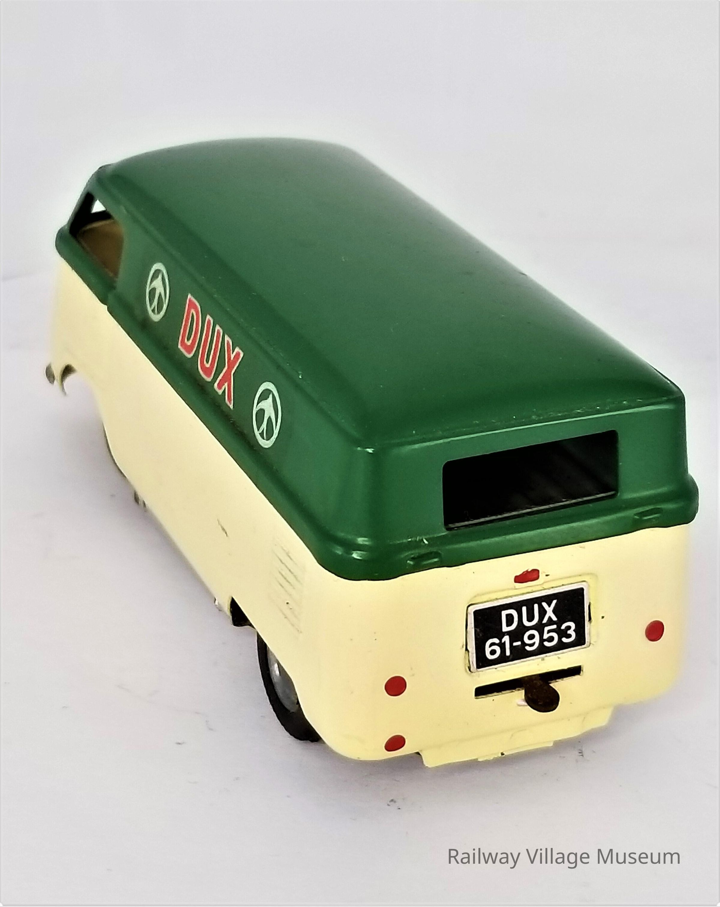 This DUX VW Mini Bus was made by a German manufacturing company. The license plate reads "DUX 61-953". The model was created in 1961.
