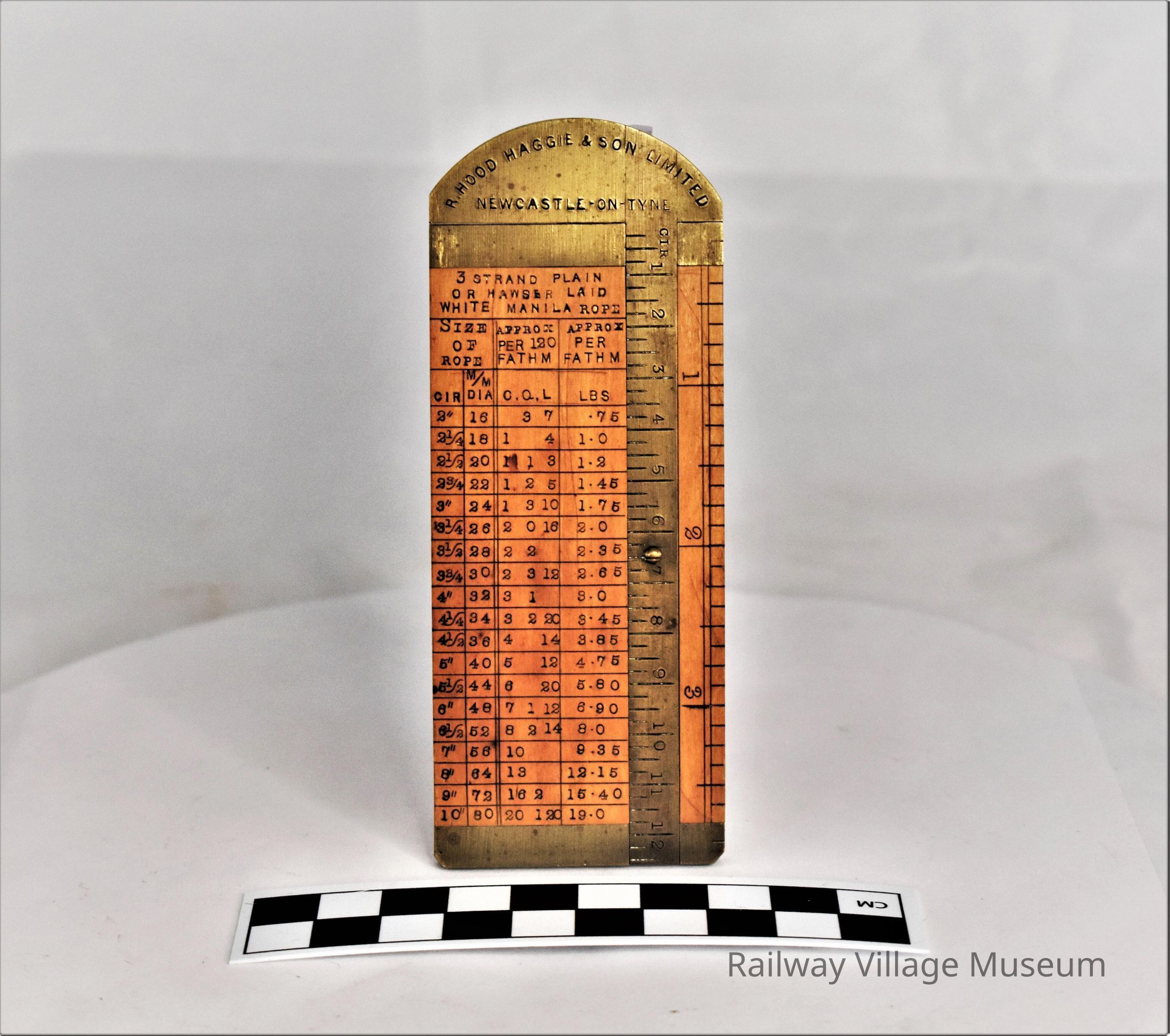 Wooden and brass gauge used for measuring wire & hemp rope. Manufactured by R.Hood Haggie & Son.