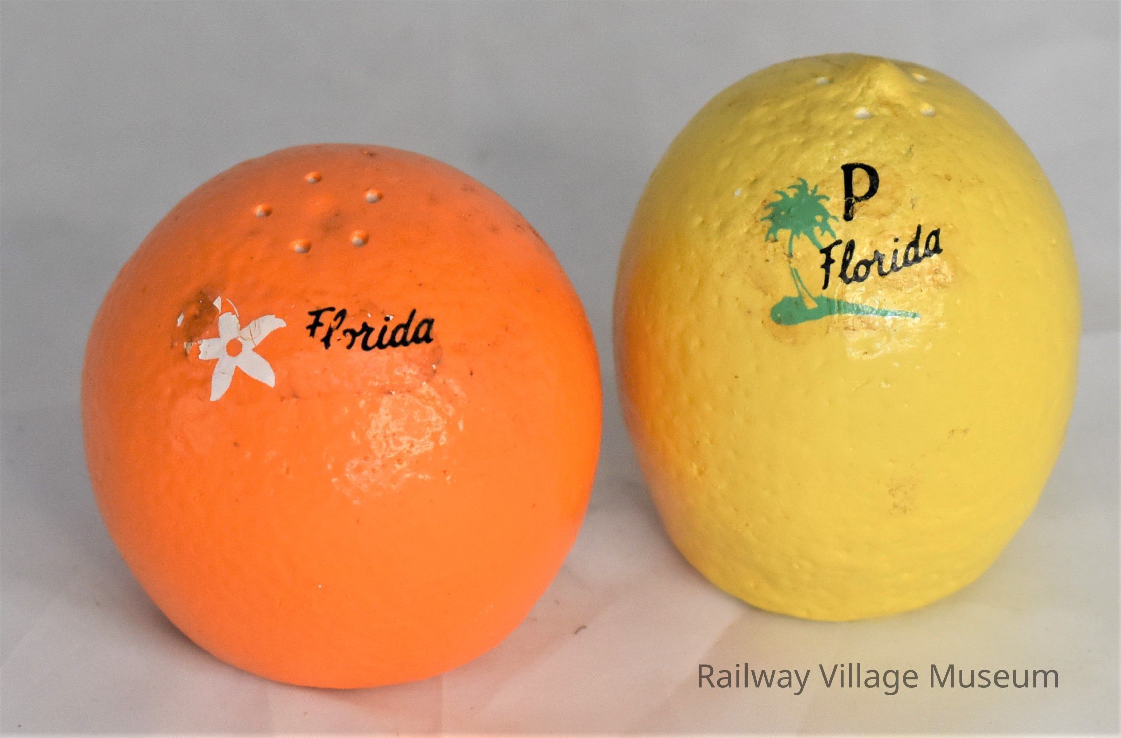 Vintage Florida ceramic orange and lemon salt and pepper shakers.
