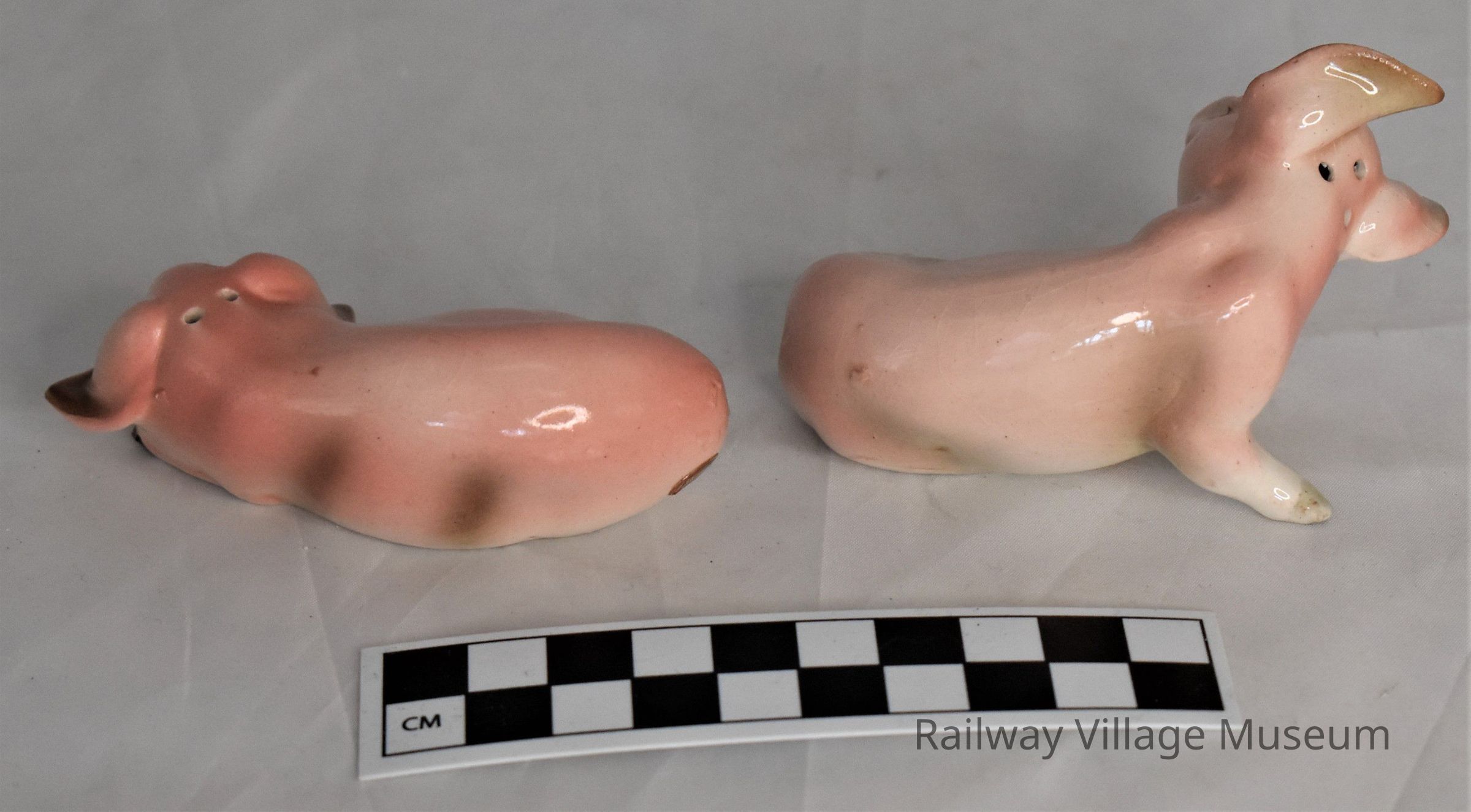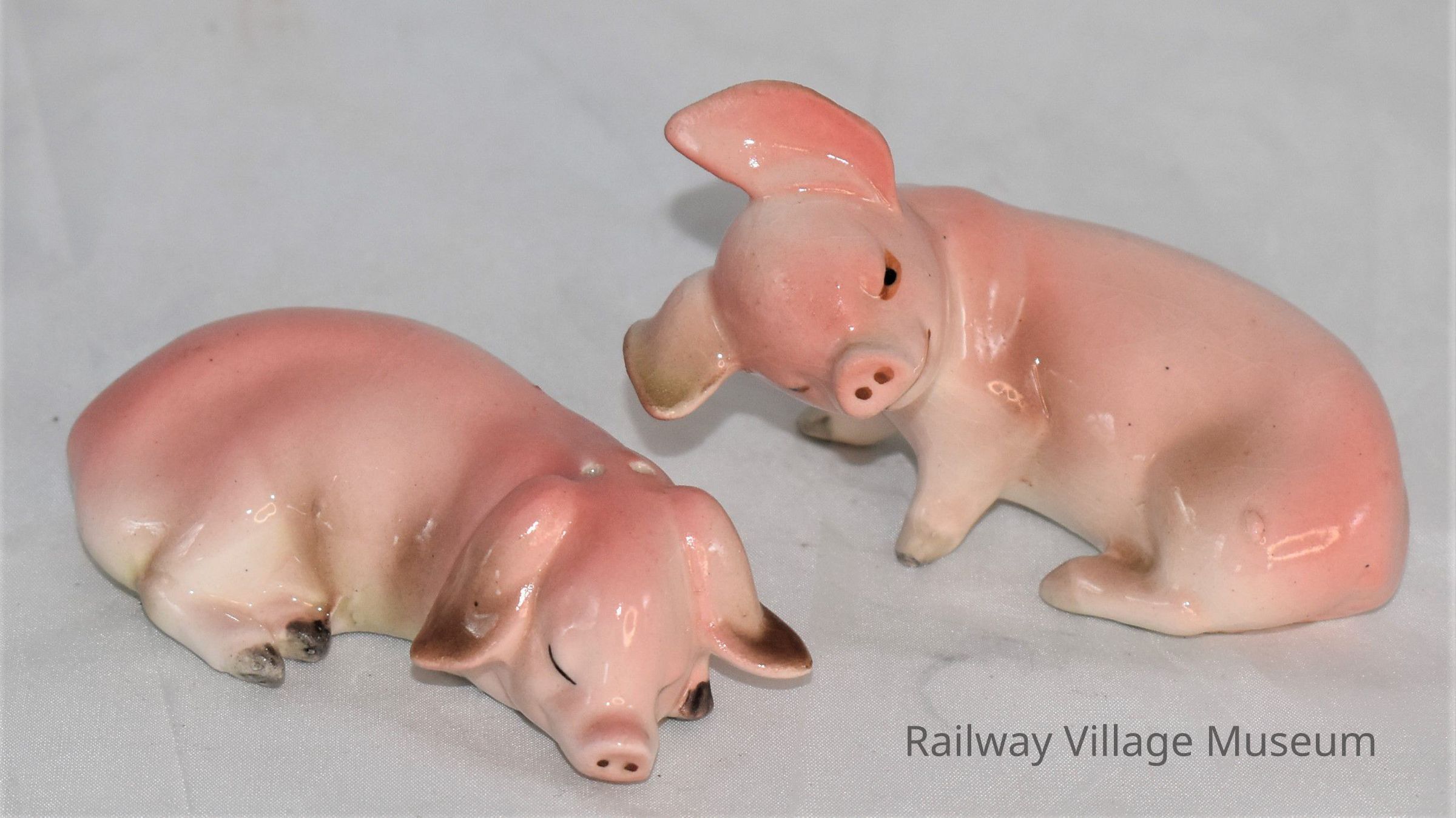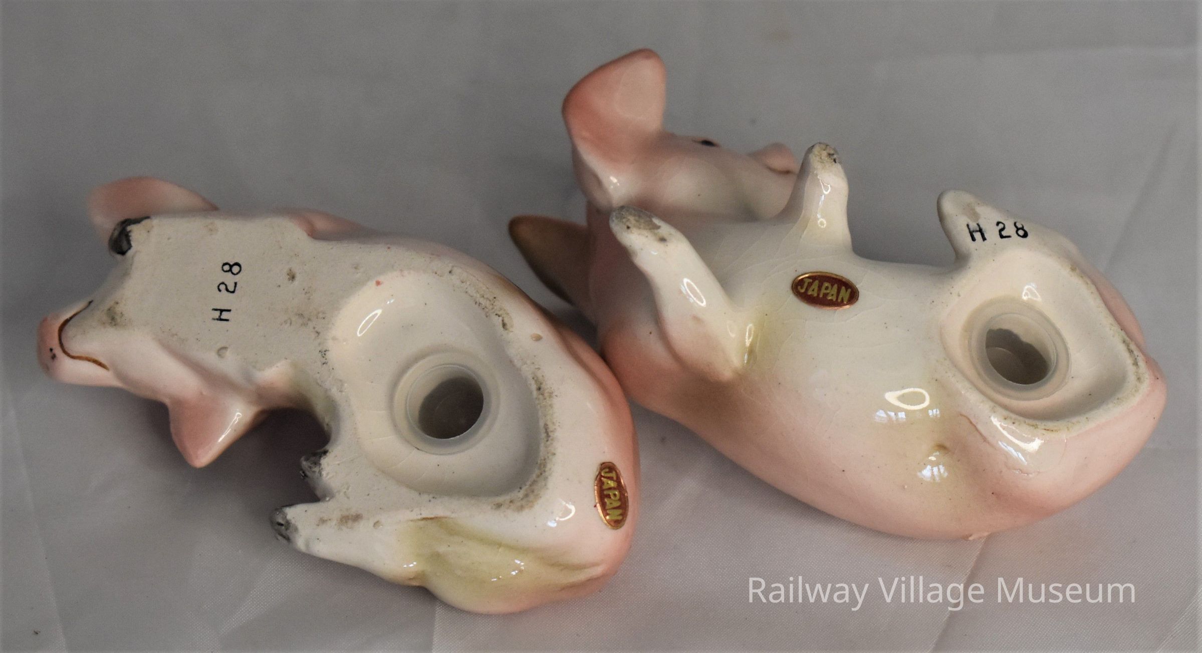 Vintage porcelain pig salt and pepper shakers: 2023.1.59a, and 2023.1.59b