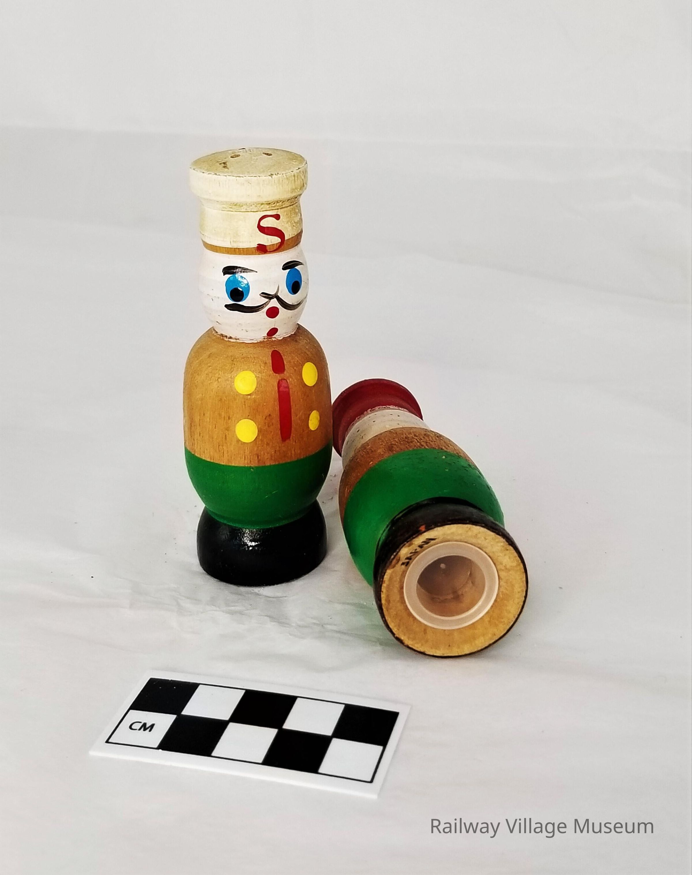 Hand-painted wooden chef salt and pepper shakers. Made in Japan.