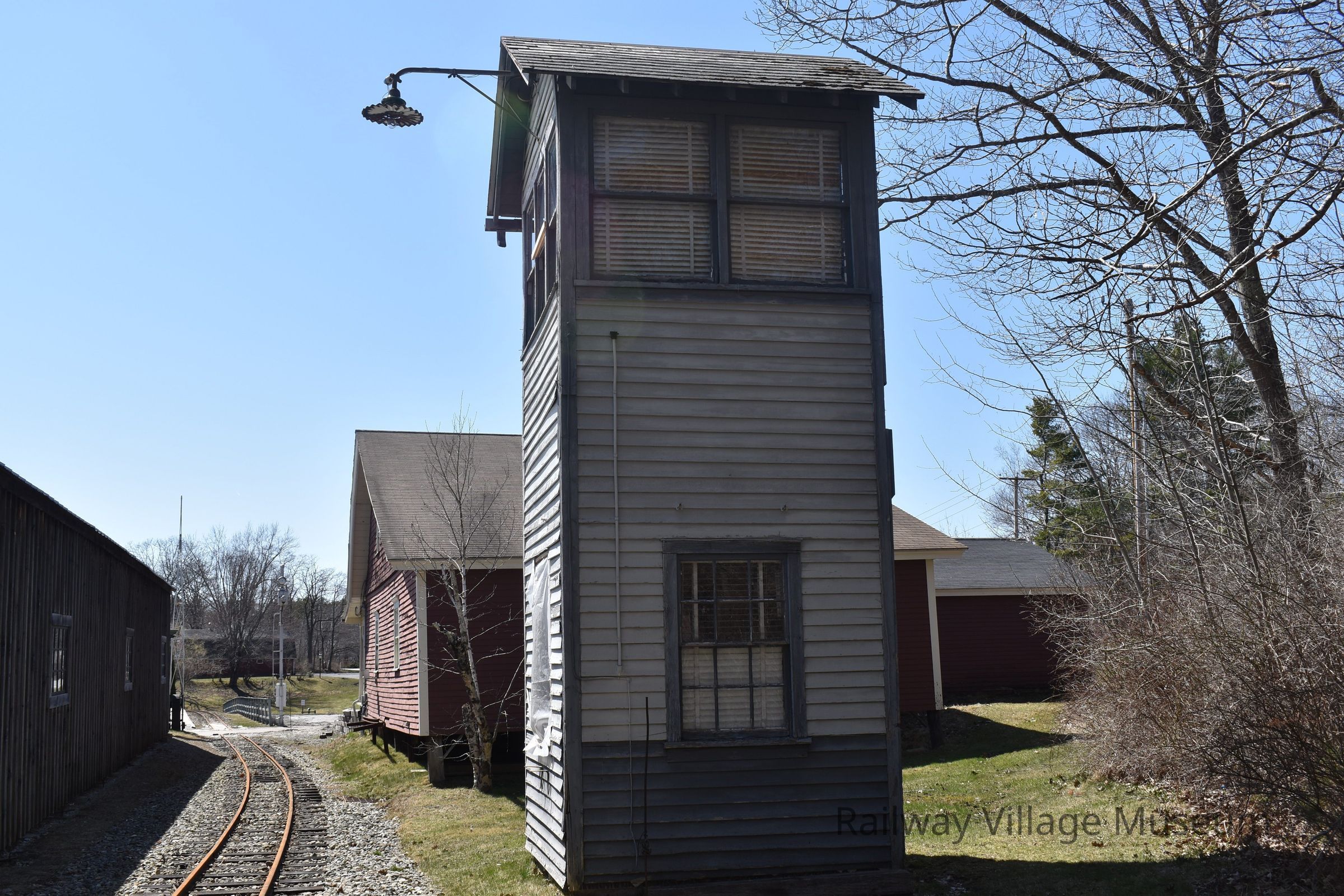 Crossing towers, like this one, helped monitor the operation of trains in a train yard. This crossing tower was transported from its original location in Lewiston, ME. Plans for restoration efforts are in the works during 2023.Made/Created