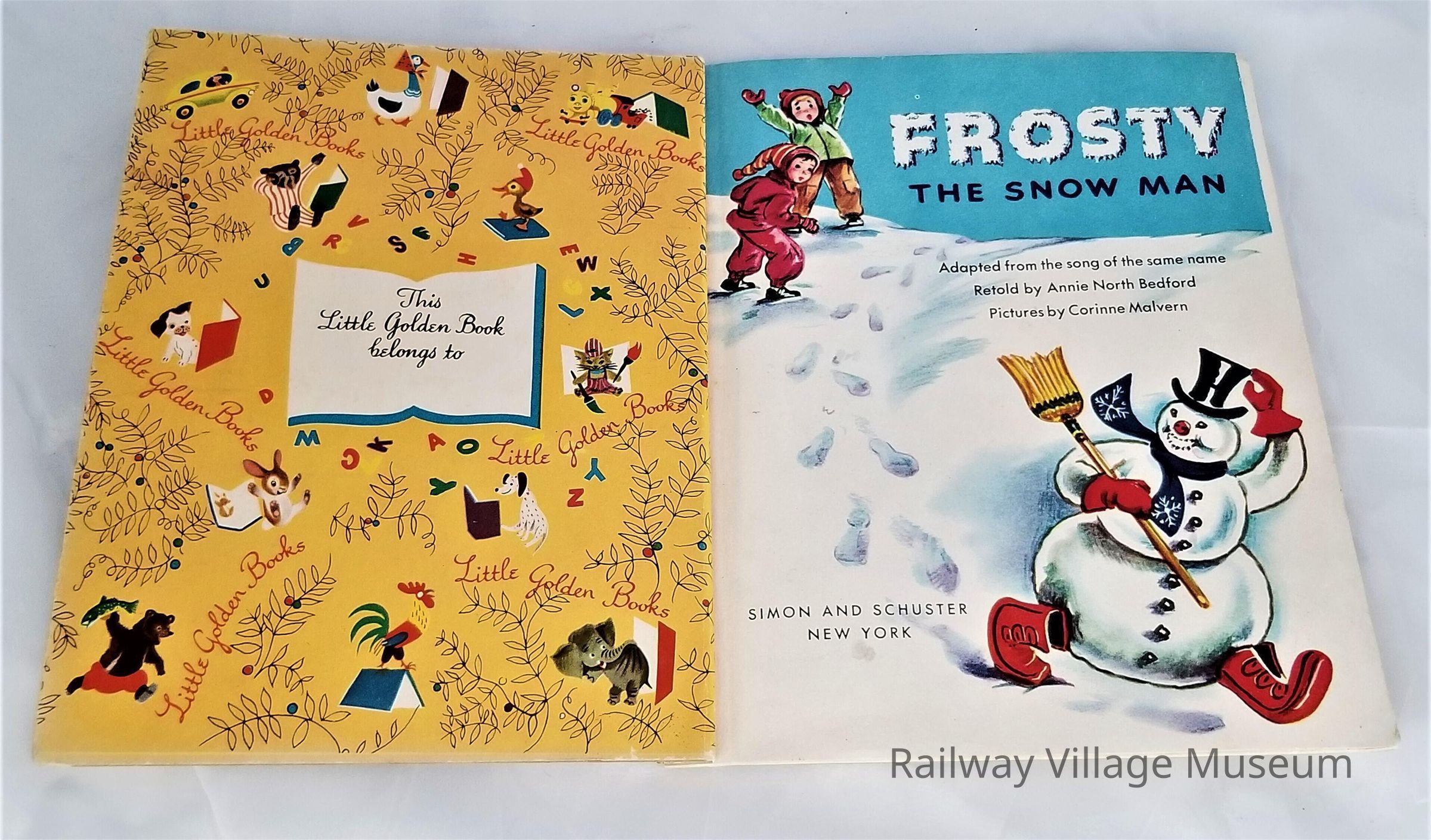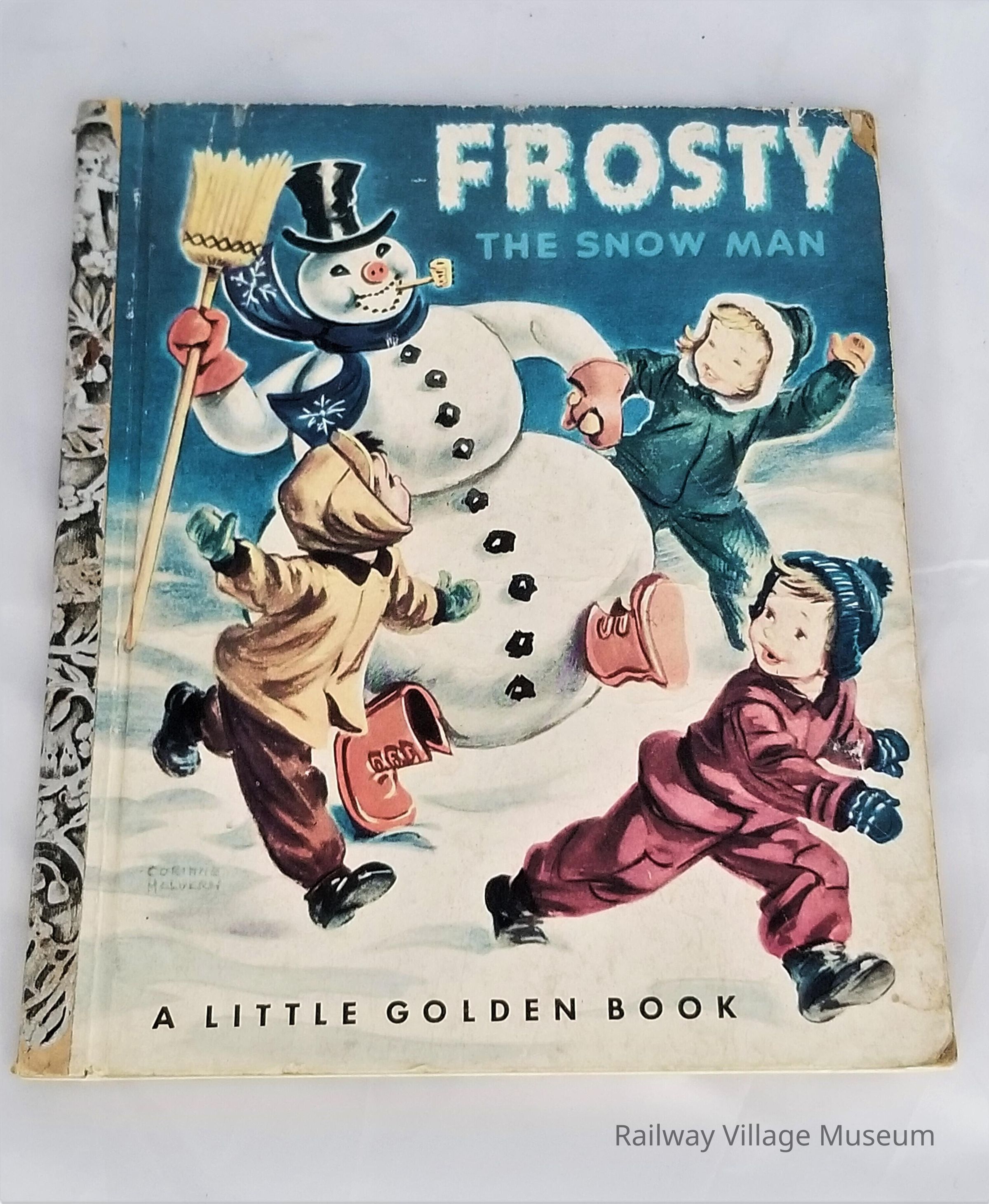 This Little Golden Book, "Frosty the Snow Man" was published by Simon and Schuster of New York and written based on the song. Retold by Annie North Bedford and illustrated by Corinne Malvern.