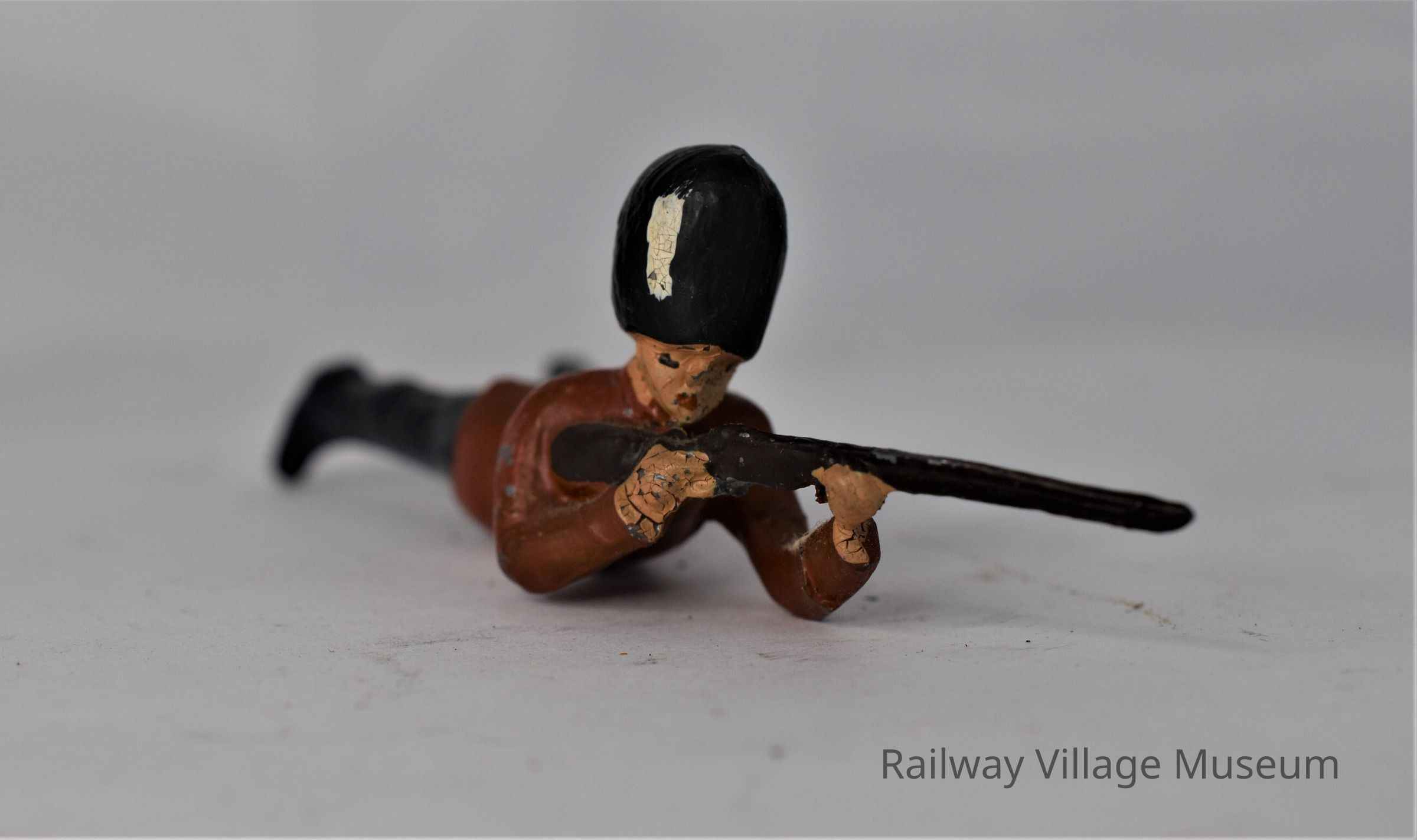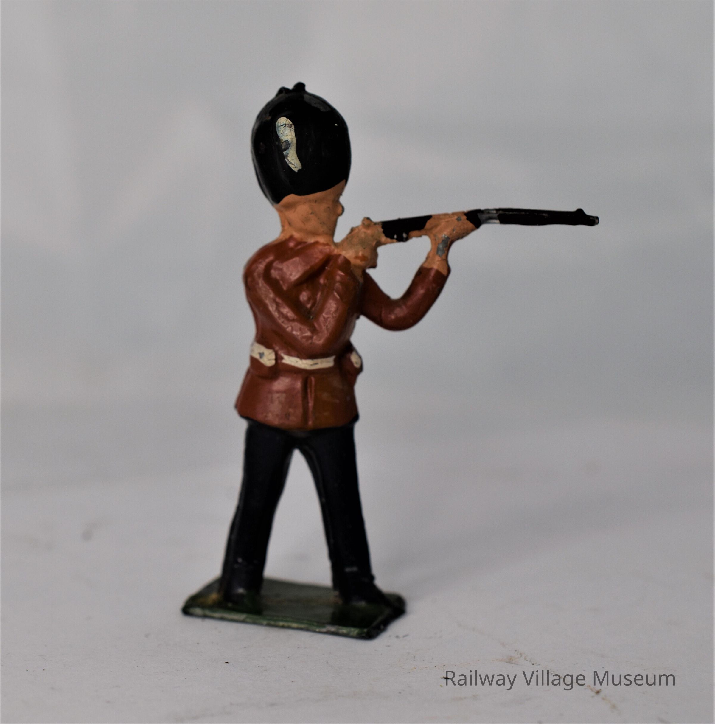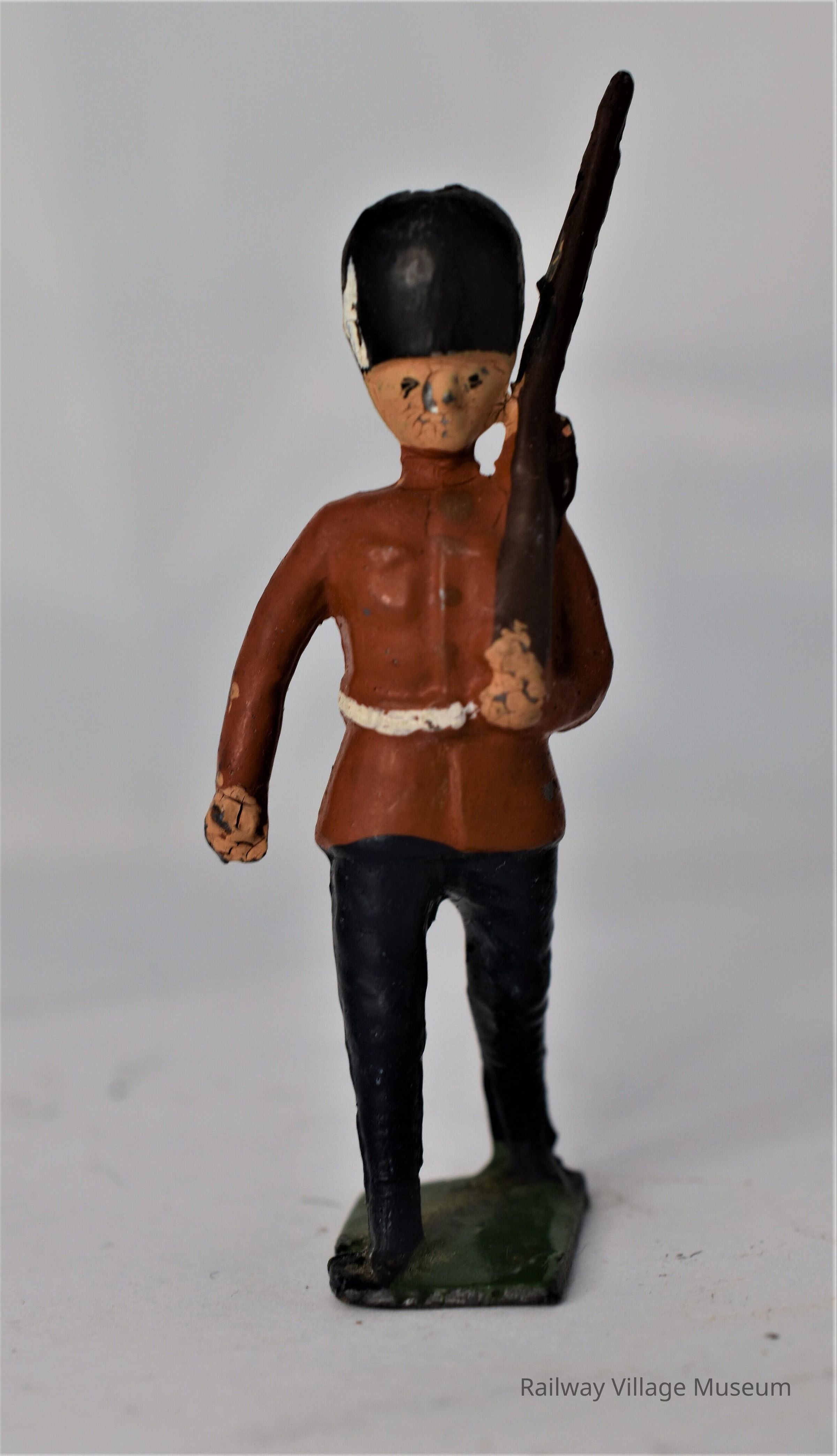 A set of 20 British soldiers, manufactured by Crescent Toys Inc. The horses' stomachs have the makers mark on them. Each soldier wears the same outfit.