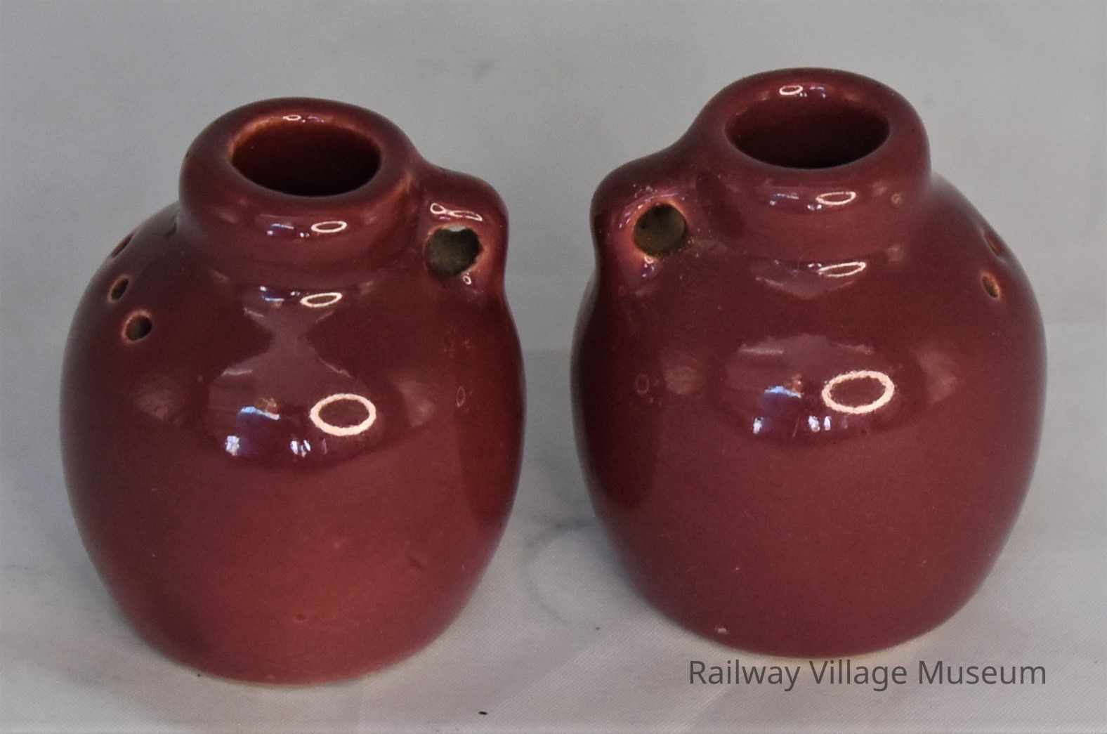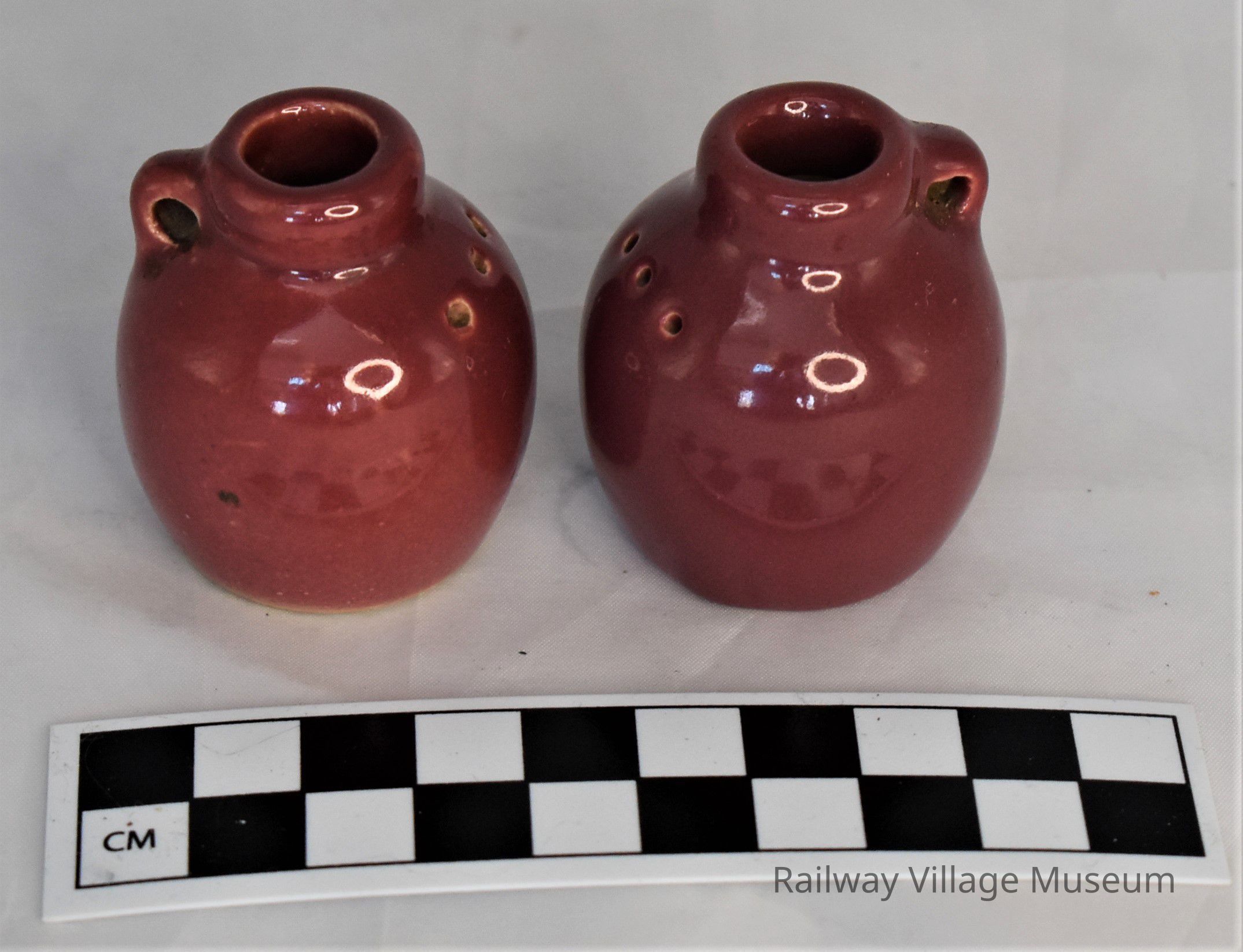 Vintage pottery red handled jugs salt and pepper shakers: 2023.1.36a, and 2023.1.36b