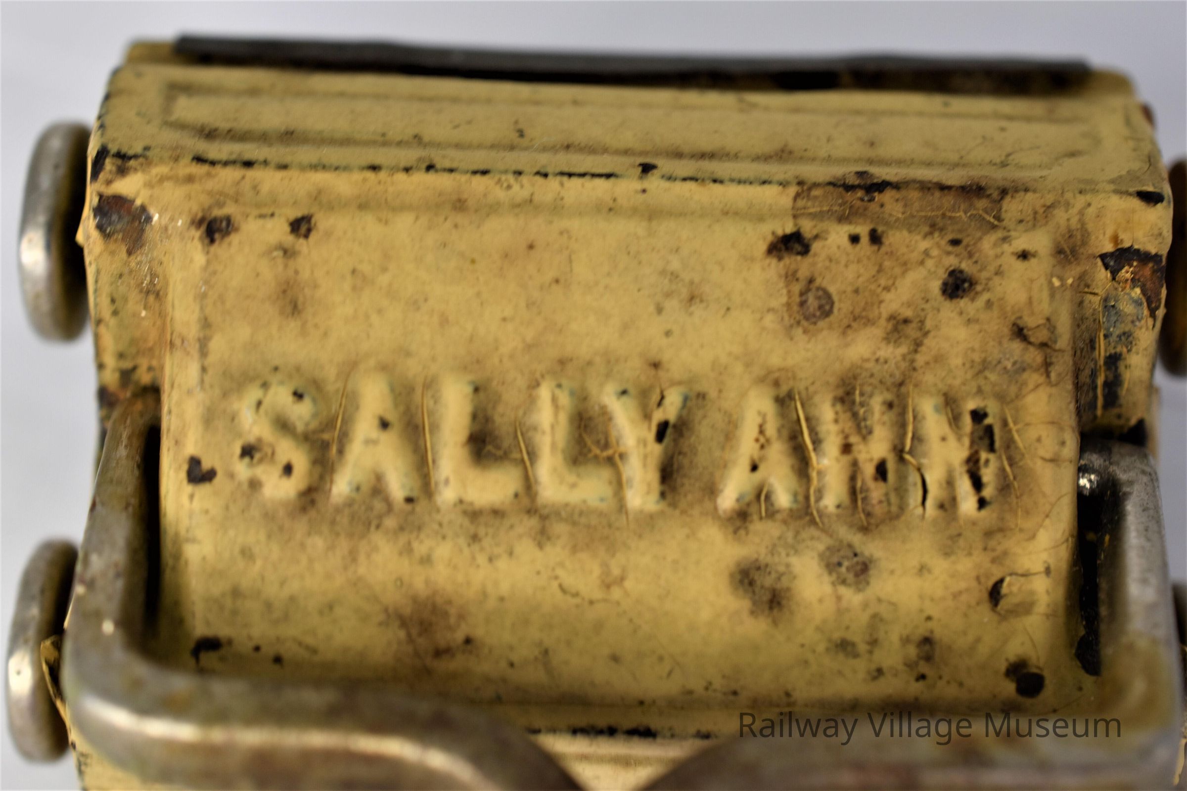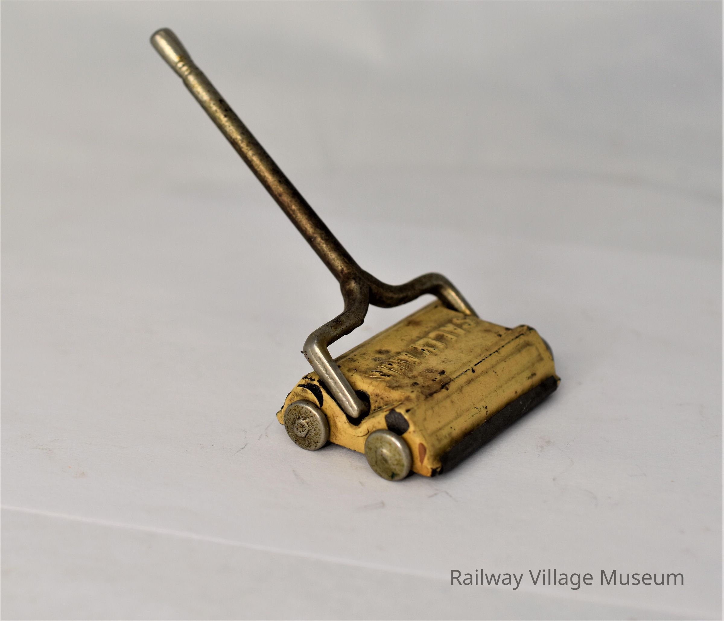 A cast iron sweeper, manufactured by Kilgore Manufacturing Co. Written on the top of the sweeper, are the words "Sally Ann."