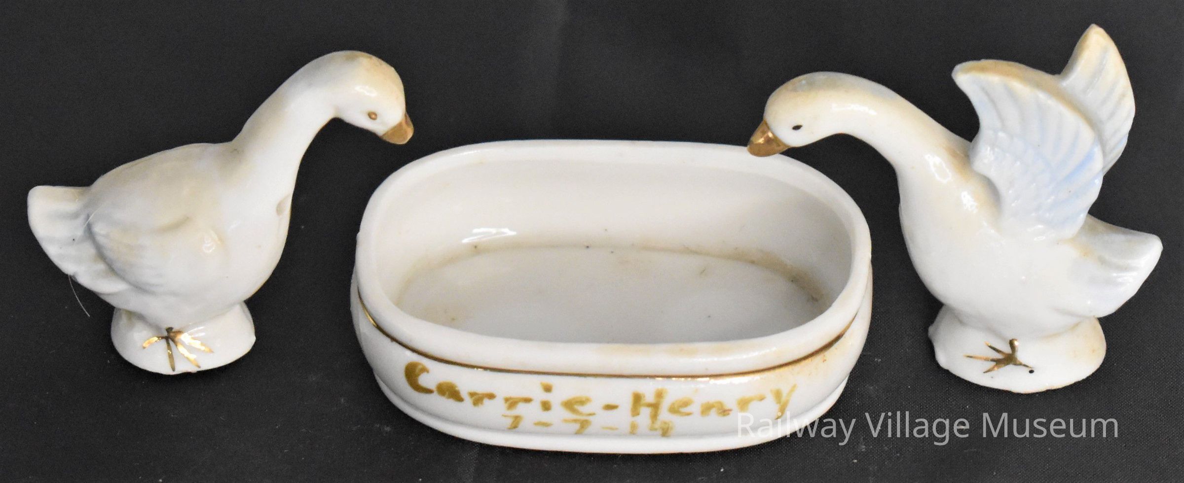 Birds salt and pepper shakers with basin 3 piece set: salt - 2023.1.195a, pepper - 2023.1.195b, and basin - 2023.1.195c