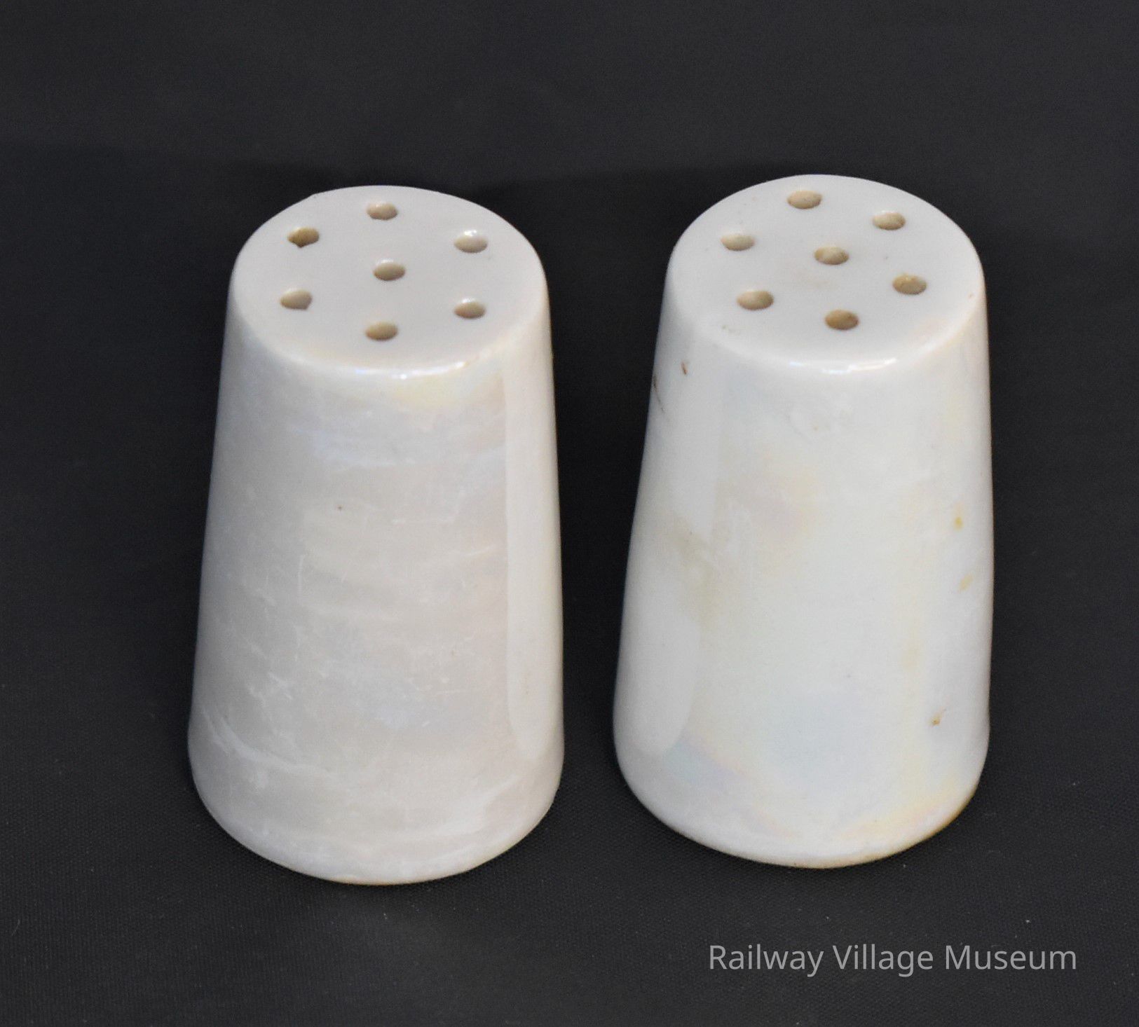 White luster salt and pepper shakers: 2023.1.47a, and 2023.1.47b