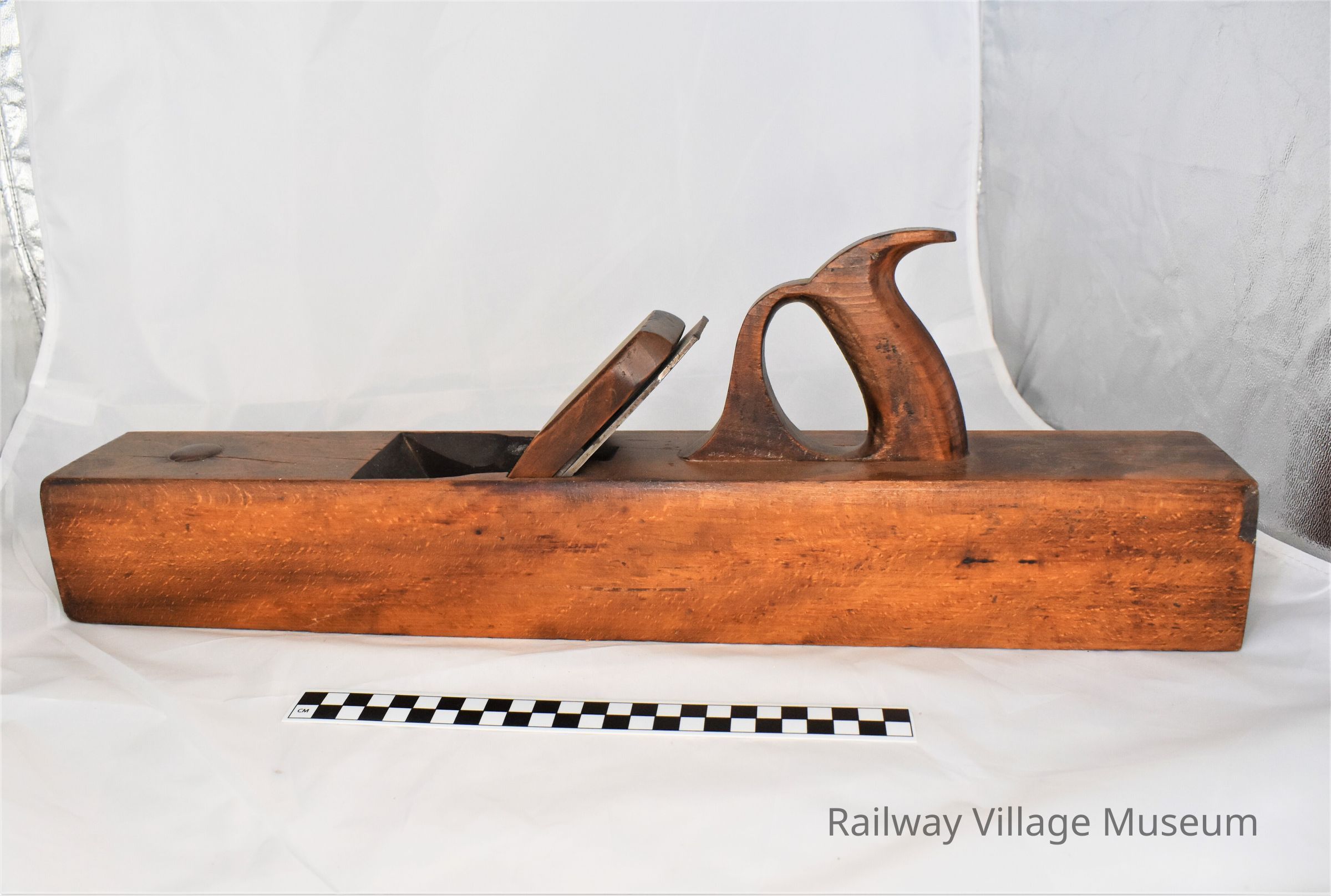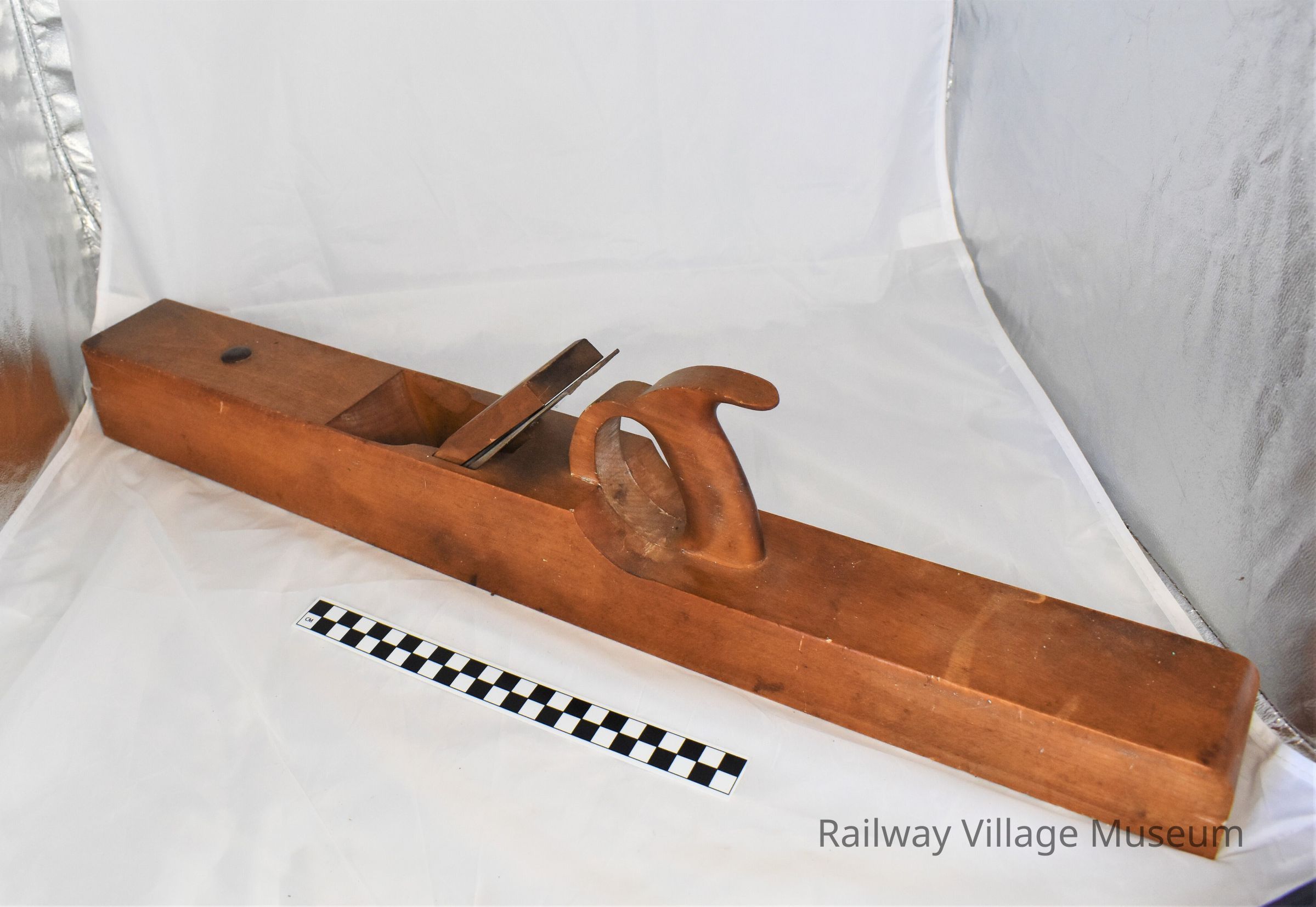 Long wooden smoothing plane with metal blade.Acquisition