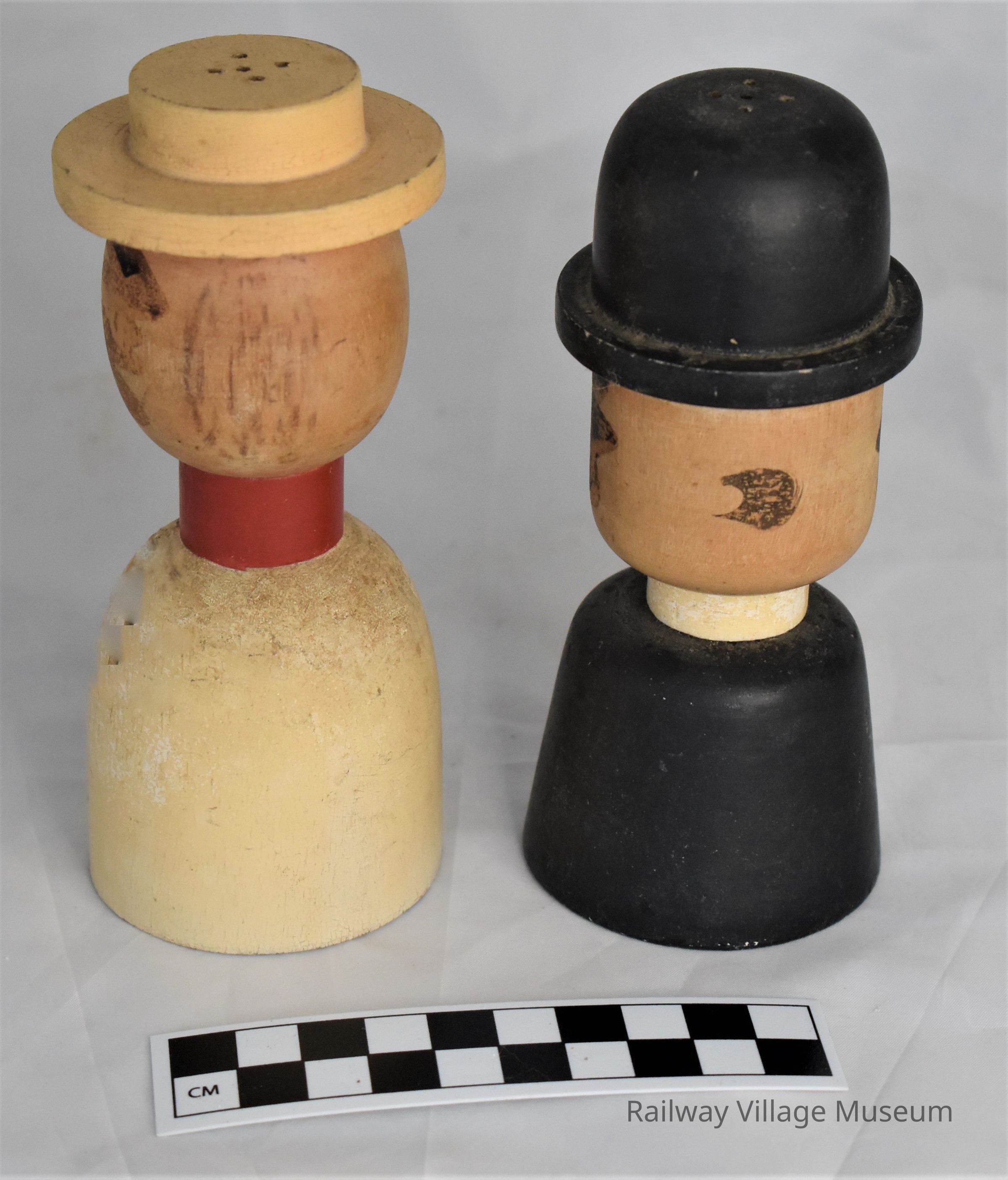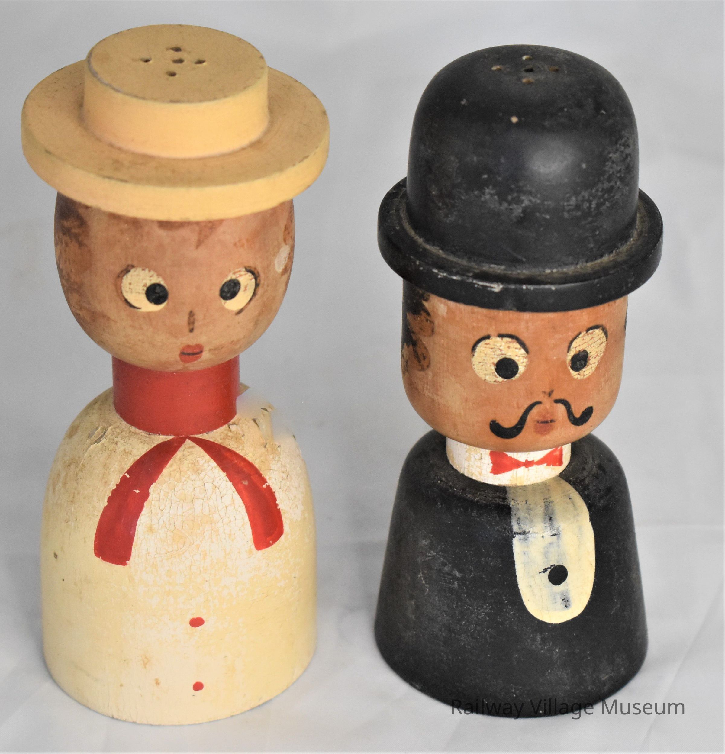Vintage wooden man and woman salt and pepper shakers: 2023.1.99a, and 2023.1.99b