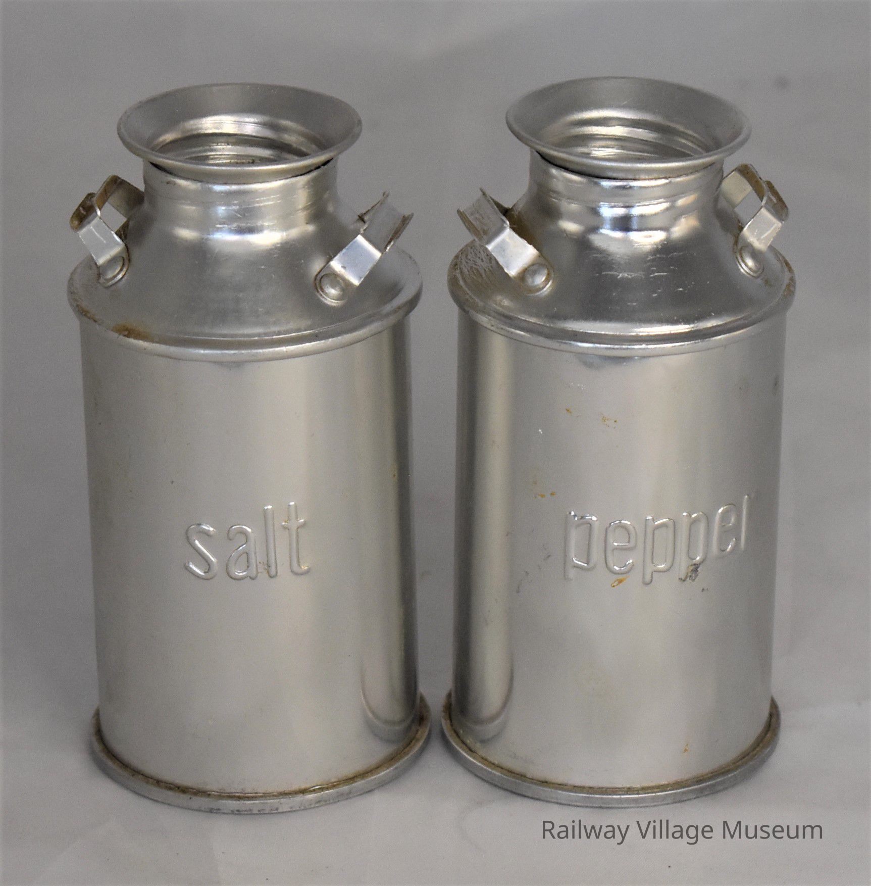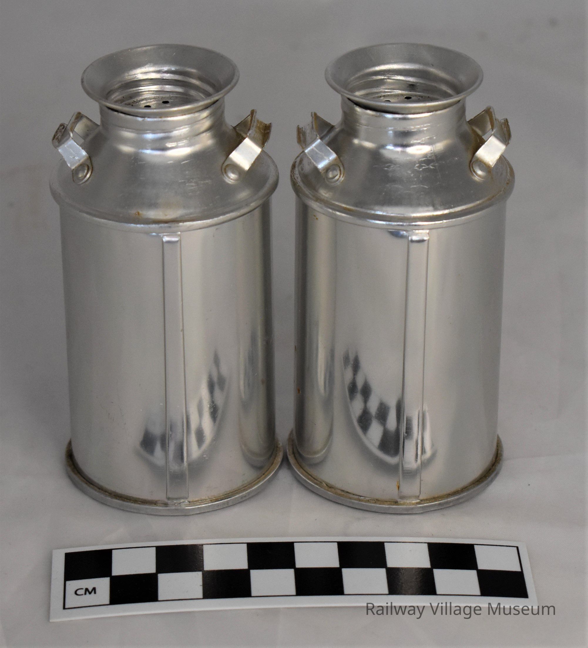 Aluminum milk cans salt and pepper shakers: 2023.1.85a, and 2023.1.85b