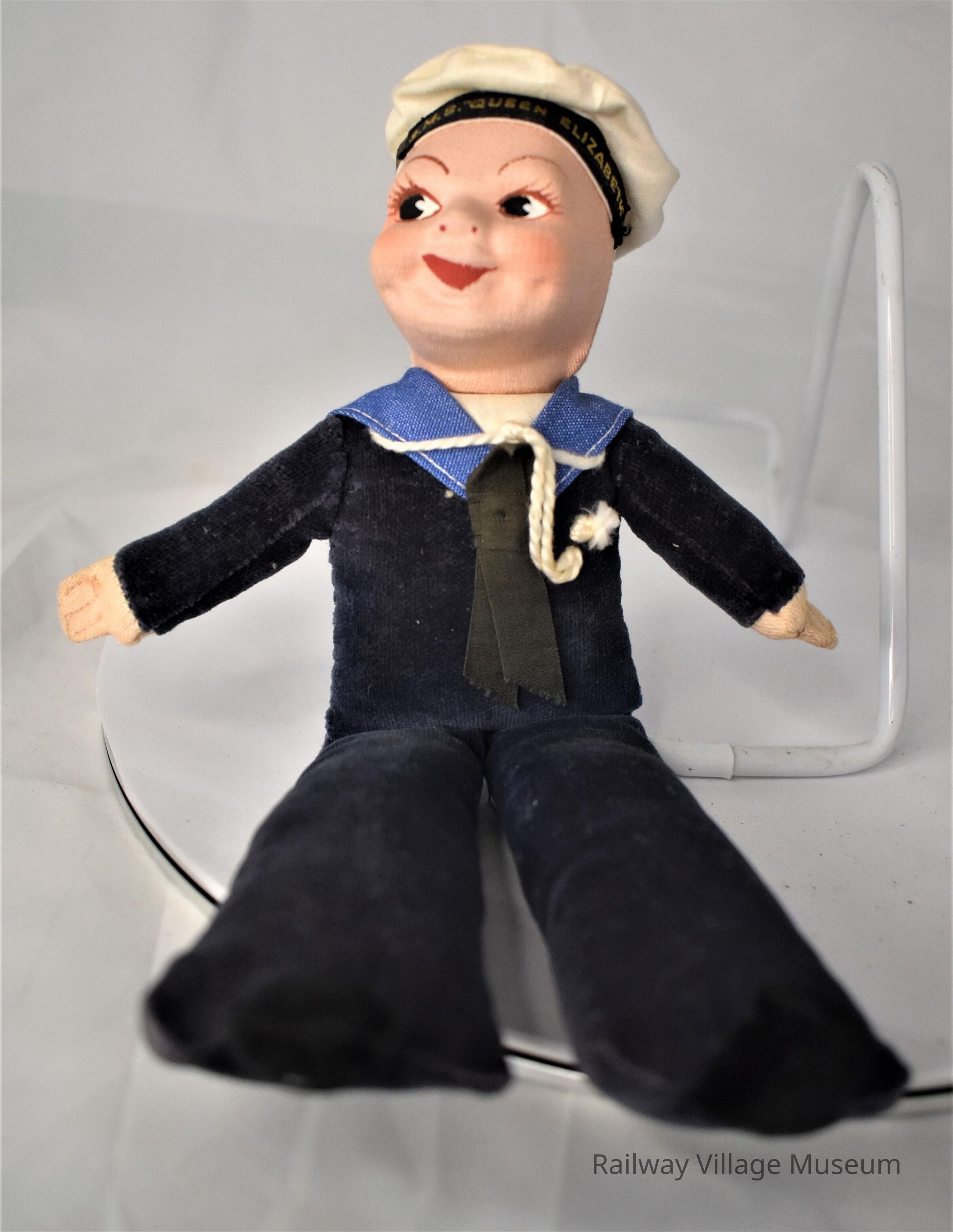 A cloth sailor doll for the R.M.S. Queen Elizabeth. The R.M.S. Queen Elizabeth was an ocean liner that provided luxury cruises between Southampton, England and New York City. During World War II she was a troopship.Acquisition