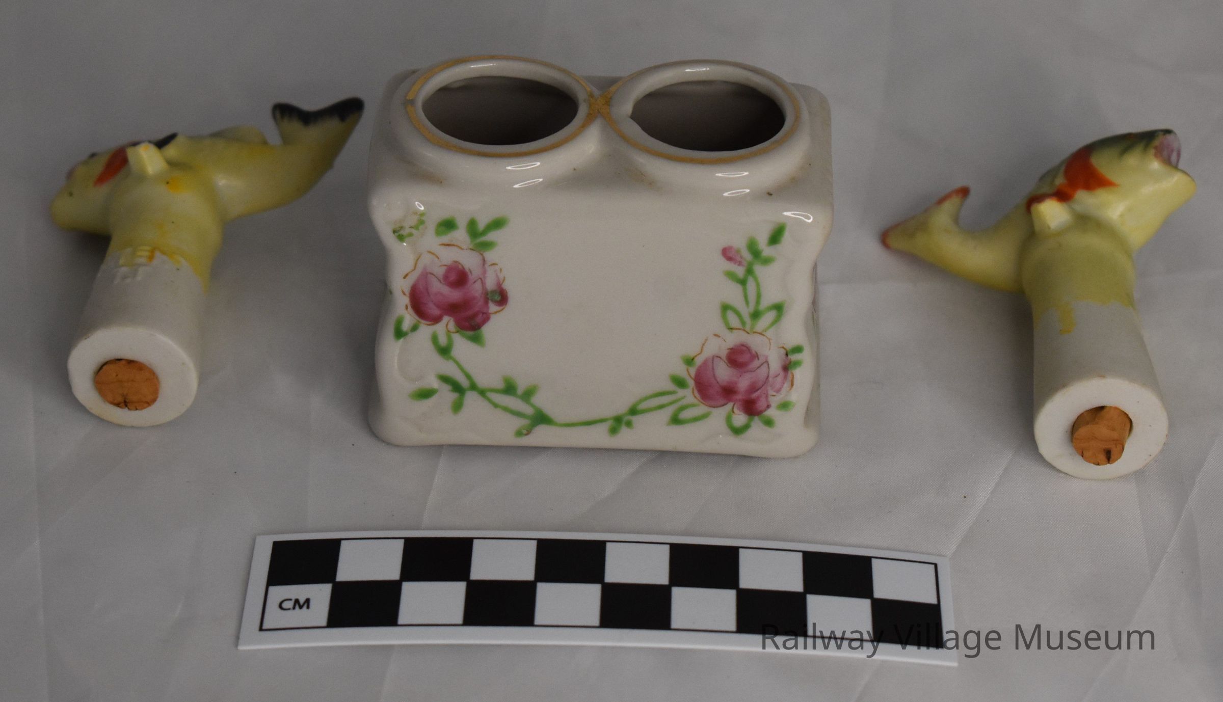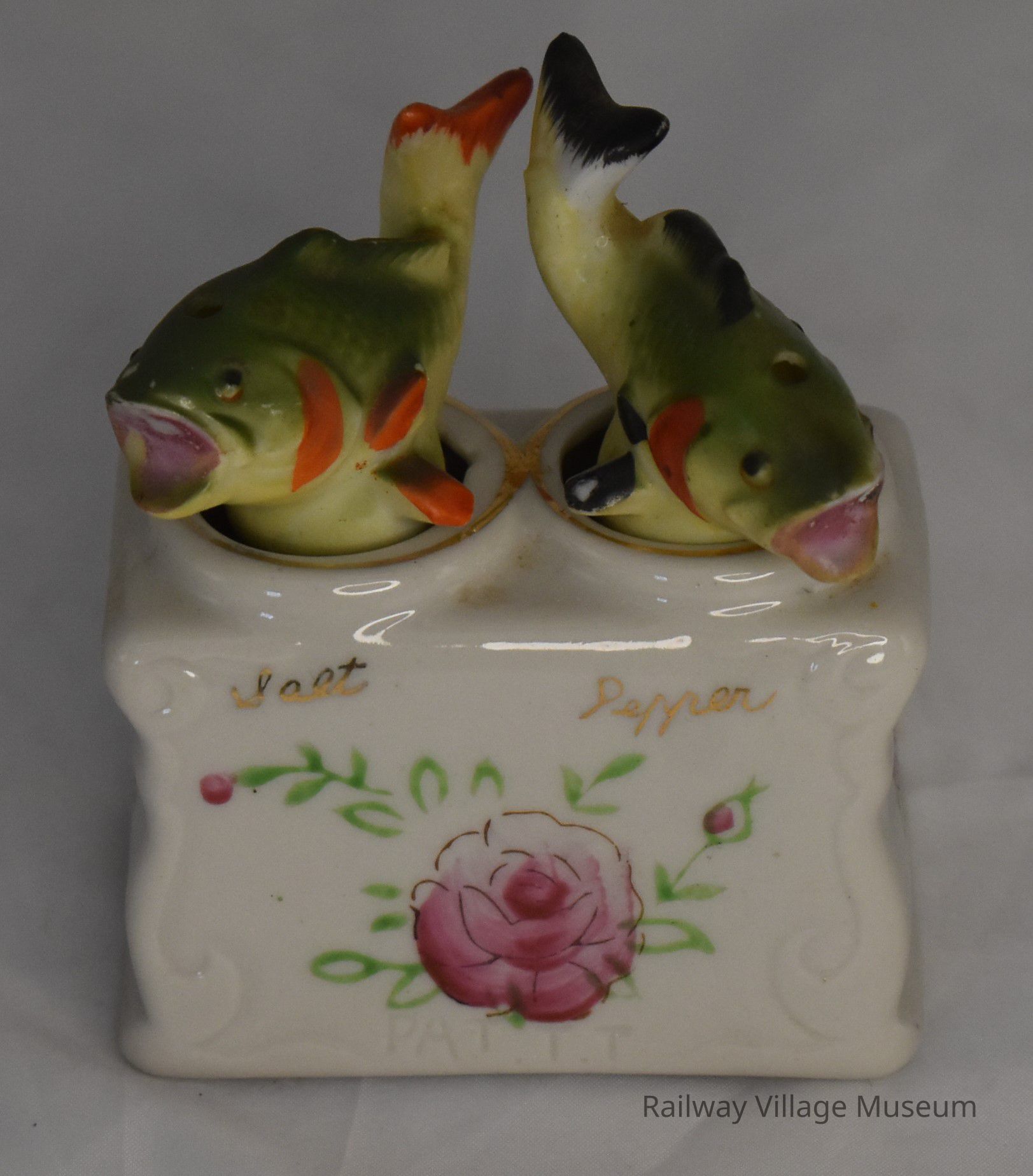 Vintage 3 piece ceramic fish nodders salt and pepper set. 2022.1.233a, 2022.1.233b, 2022.1.233c