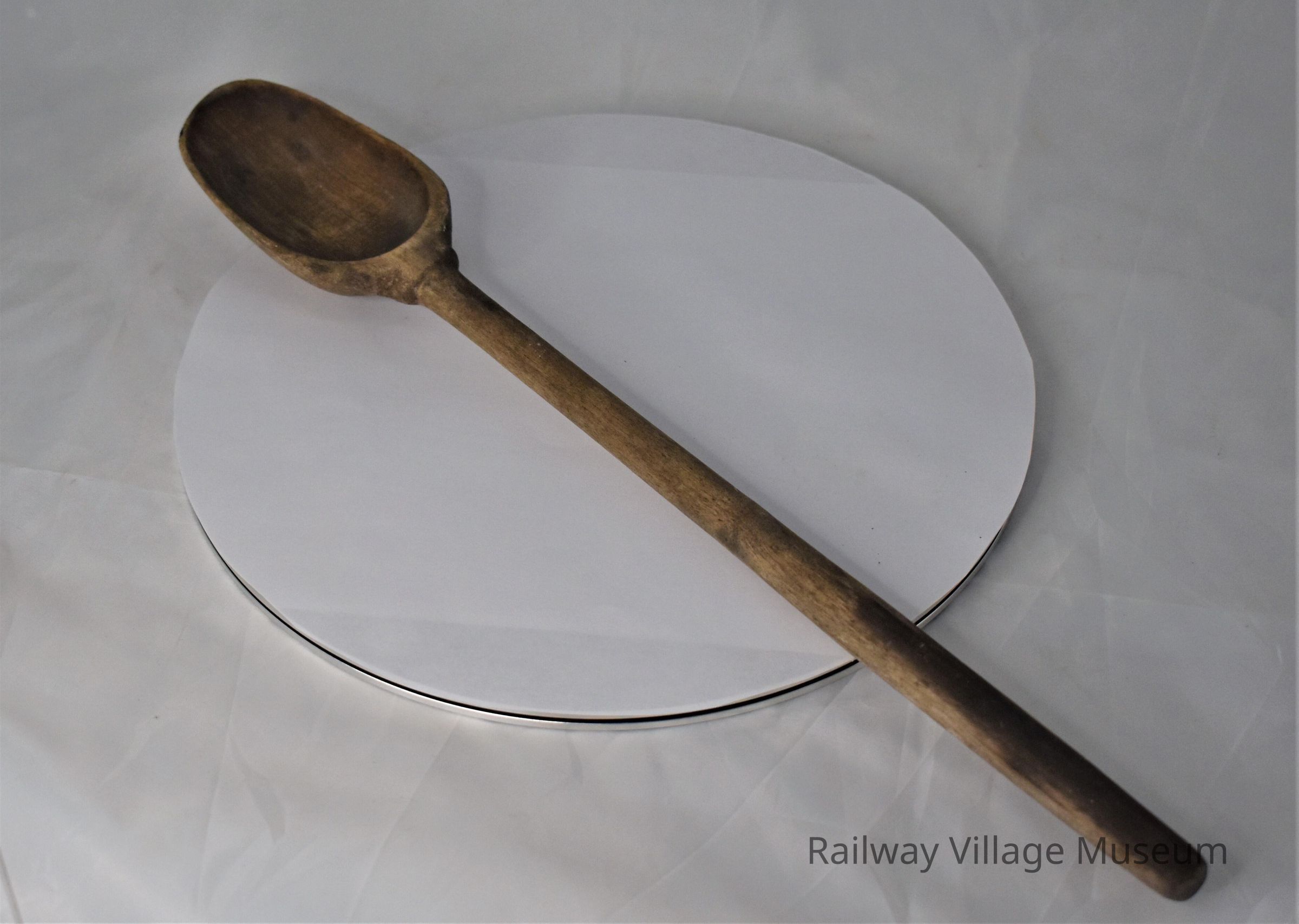 A long wooden mixing spoon. One of the best cooking utensils, still used today.