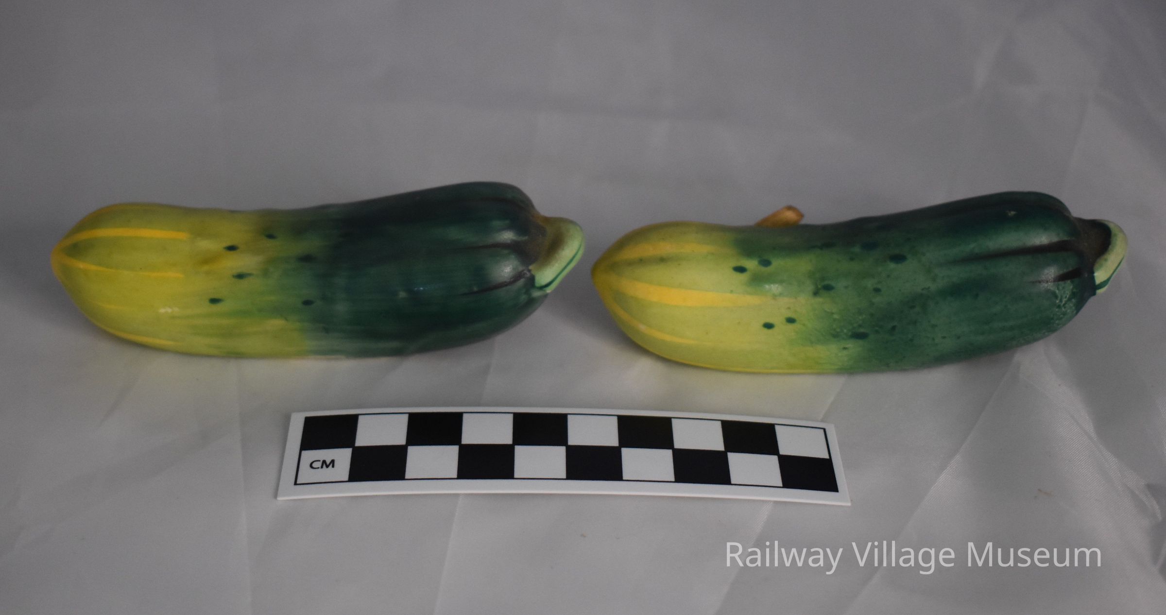 Pickle salt and pepper shakers: salt - 2023.1.212a, and pepper - 2023.1.212b.