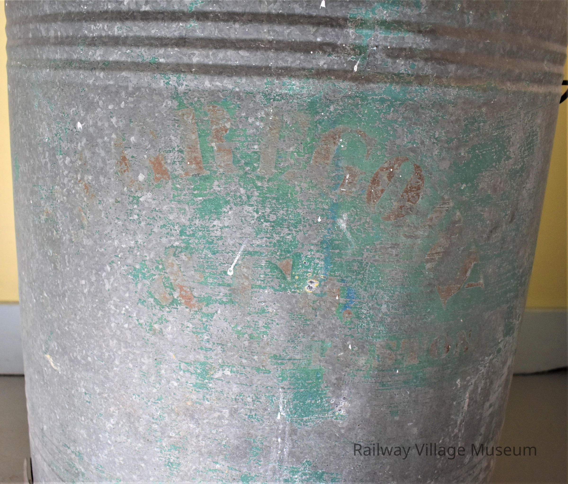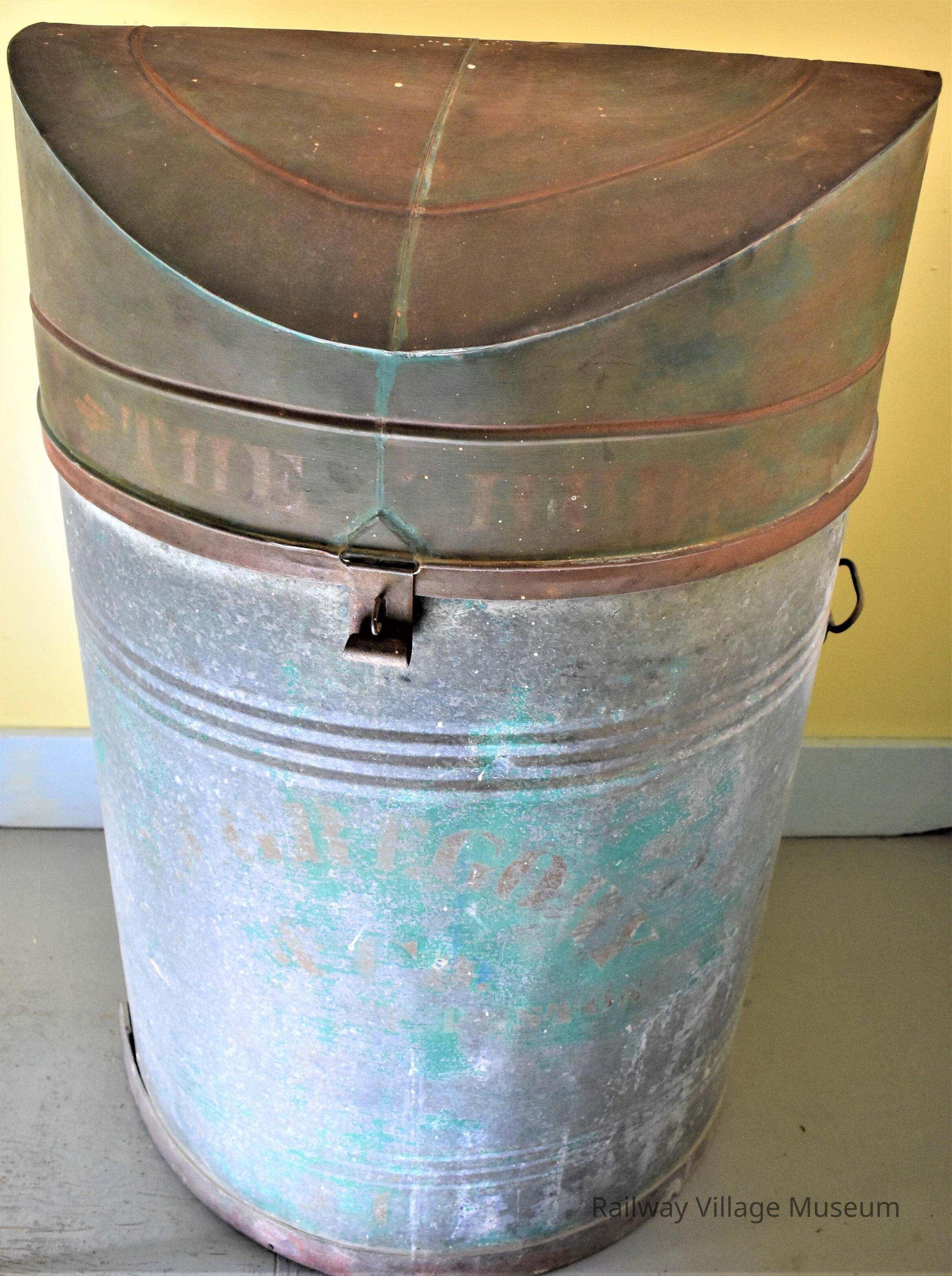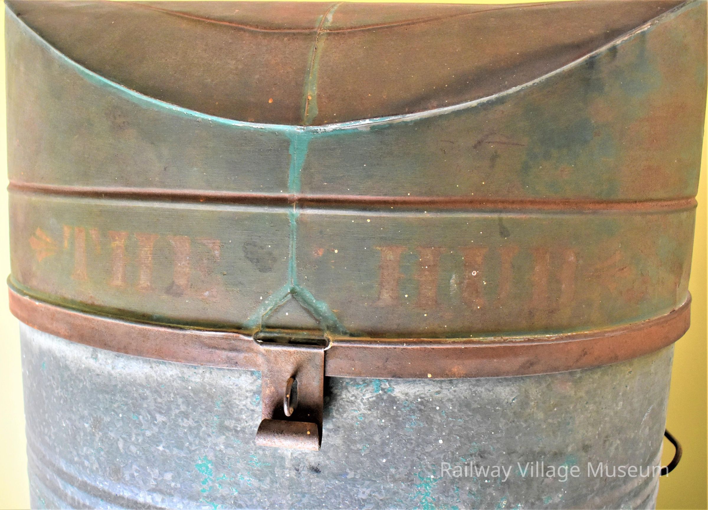 This oil tank use to be green, but it has long since faded. The wording on the front is too faded to read properly.