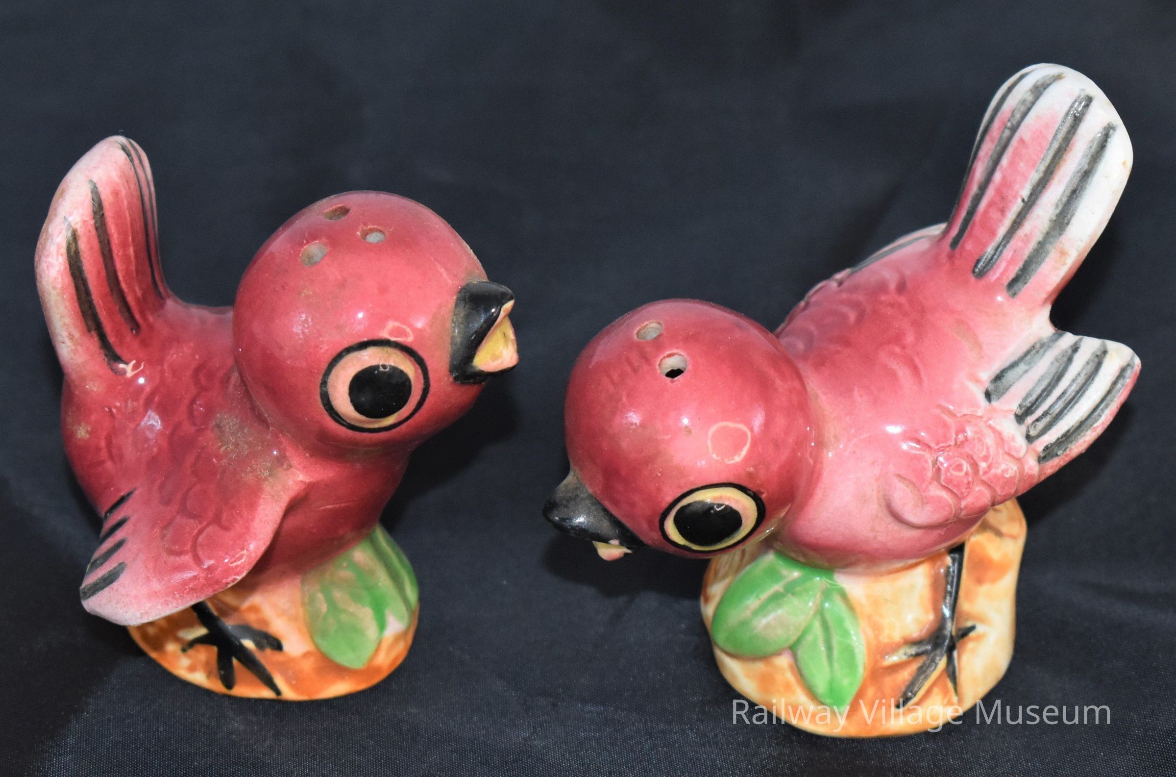 Vintage Ceramic Red Birds Salt and Pepper Shakers