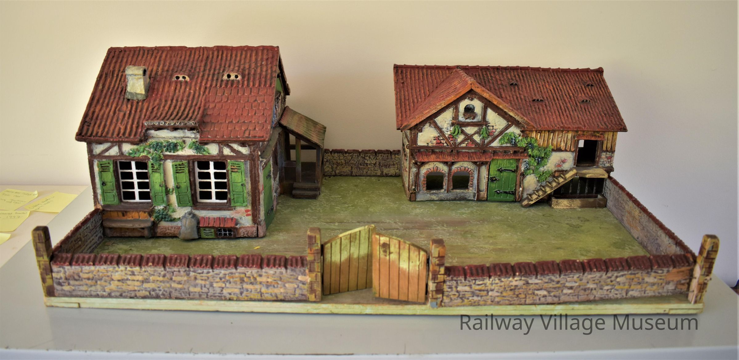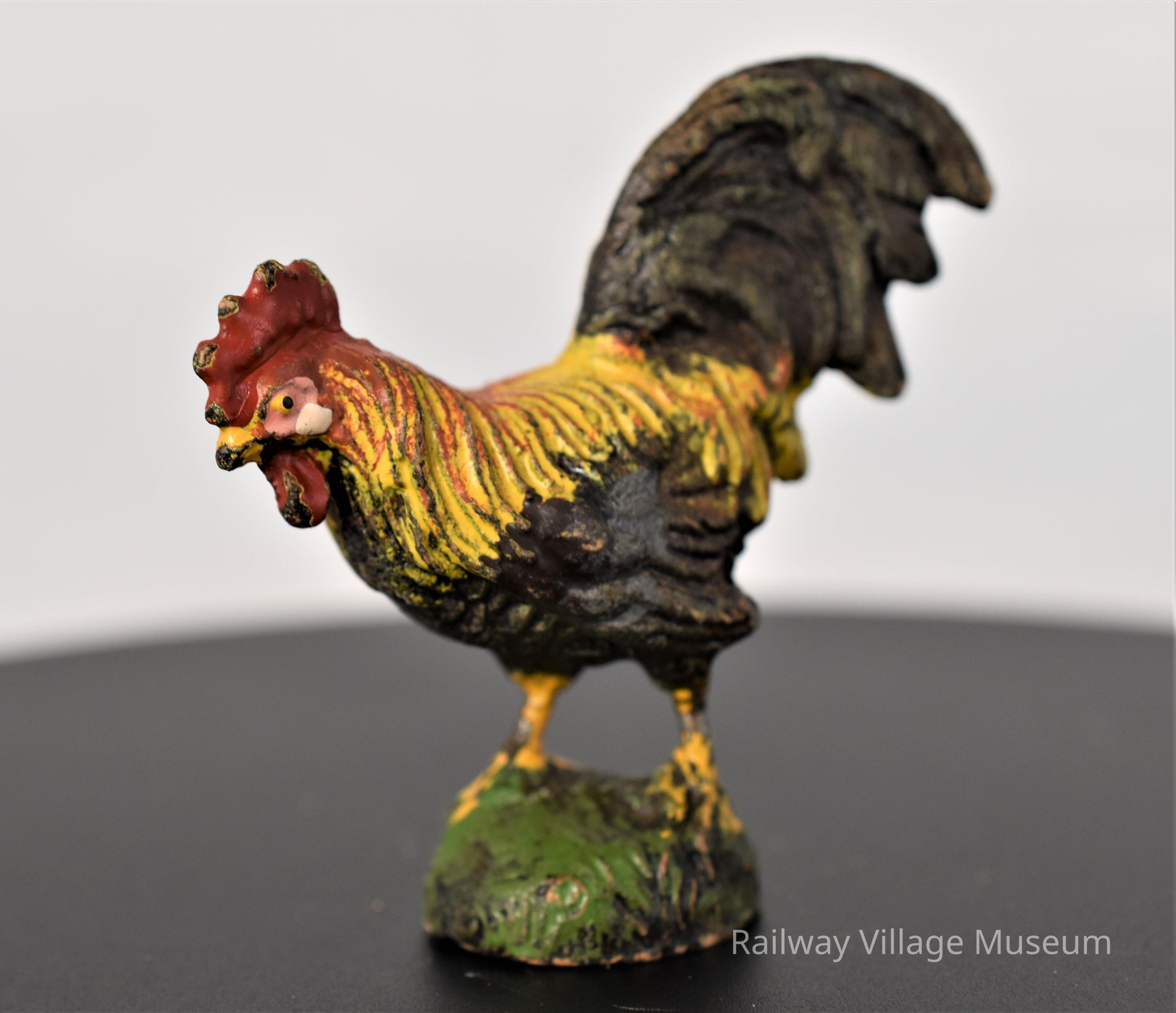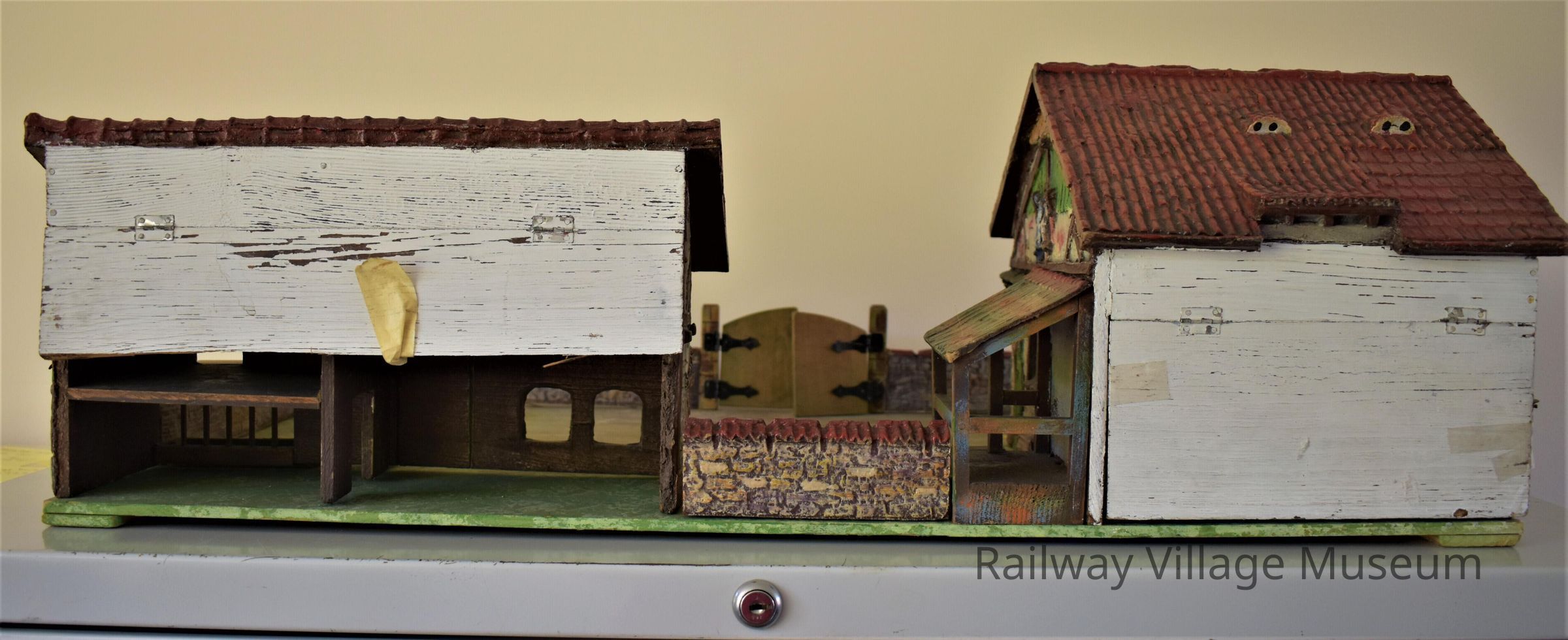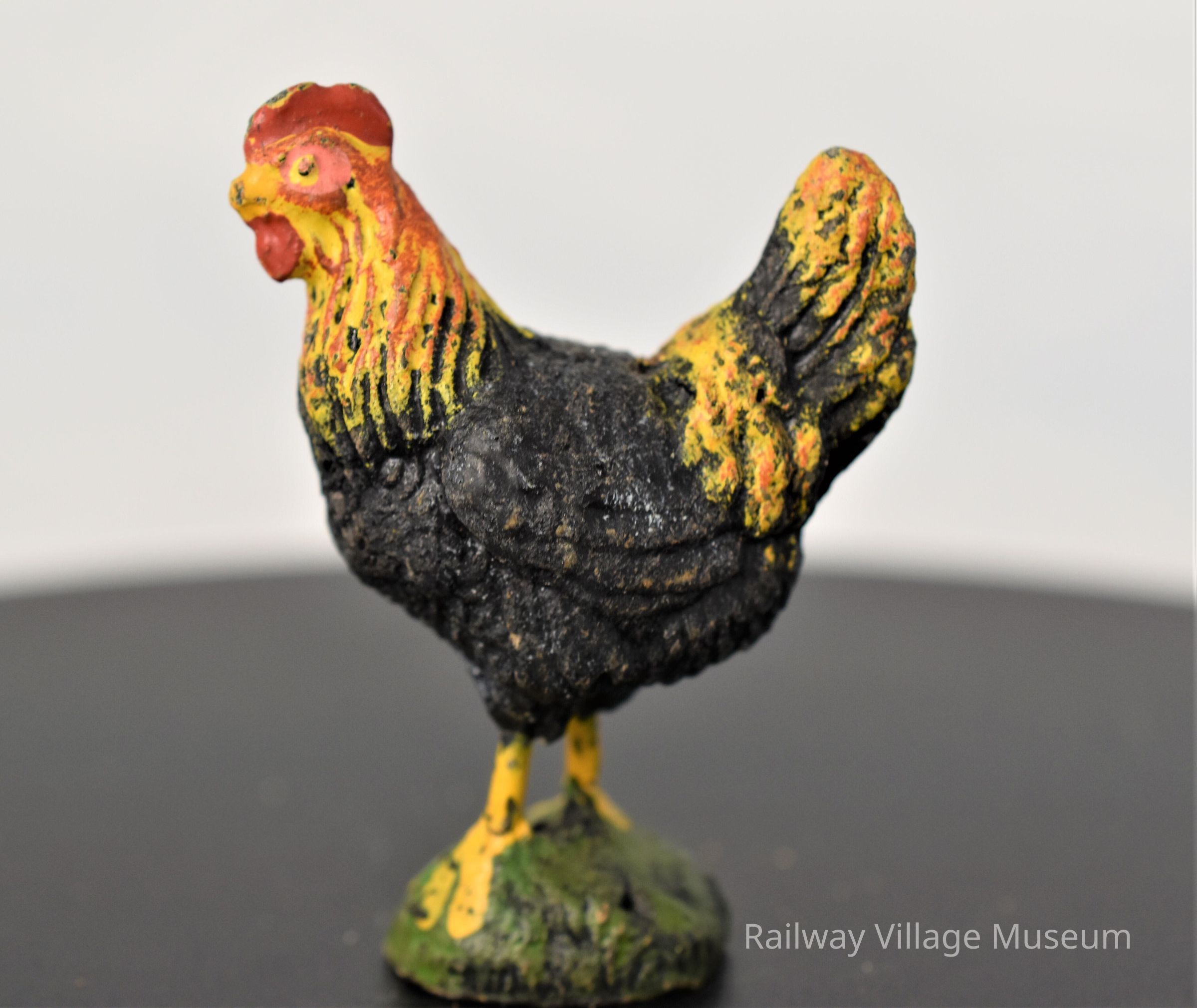 An Elastolin farm set. The animals are all made out of a composite material that is most likely sawdust and glue. The gate and trough are made out of wood.