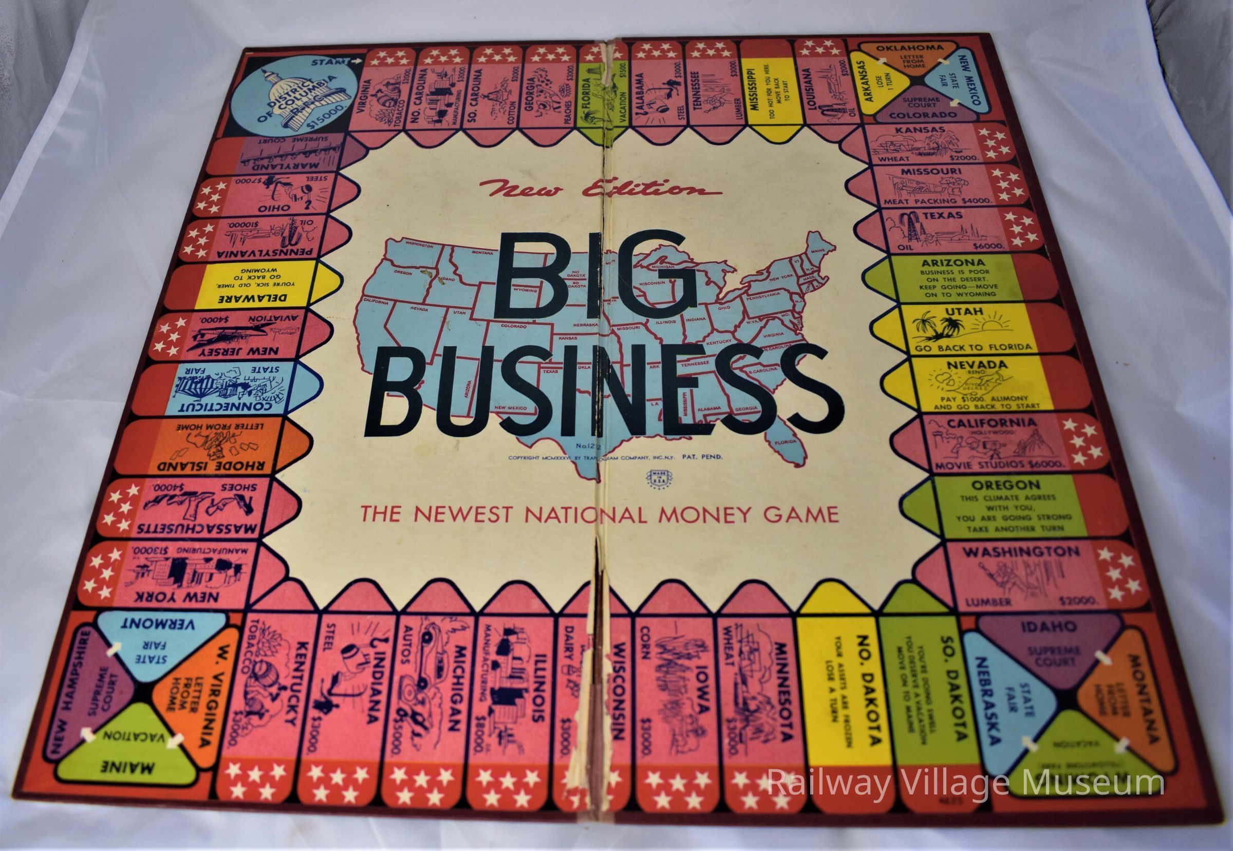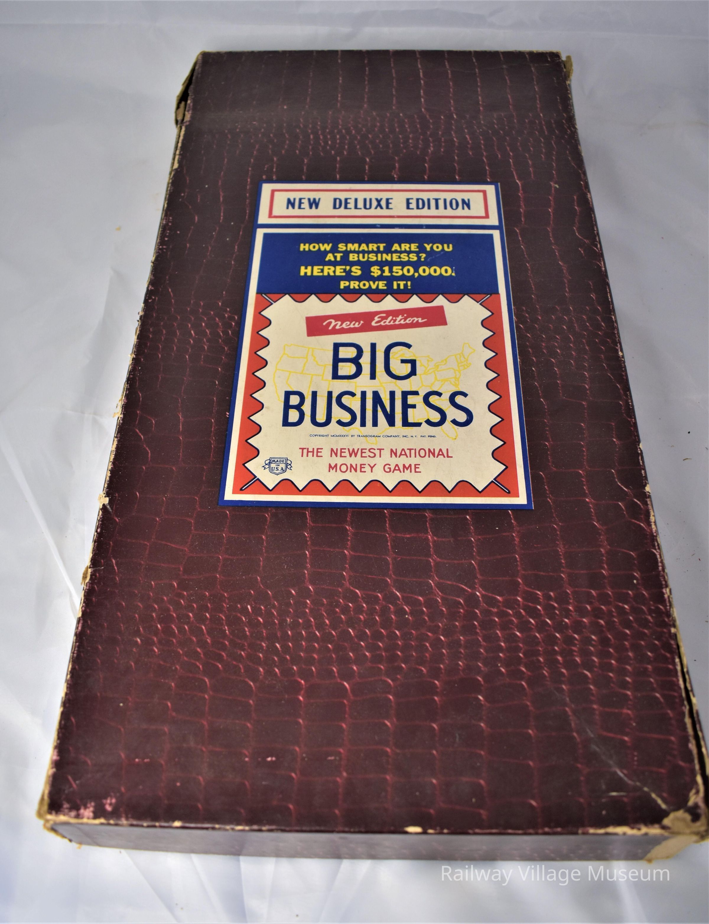 Big Business is a board game hybrid of Monopoly and Life. The box is frayed and coming apart, but the game pieces are still intact. Whether or not all the pieces are still there is unknown.