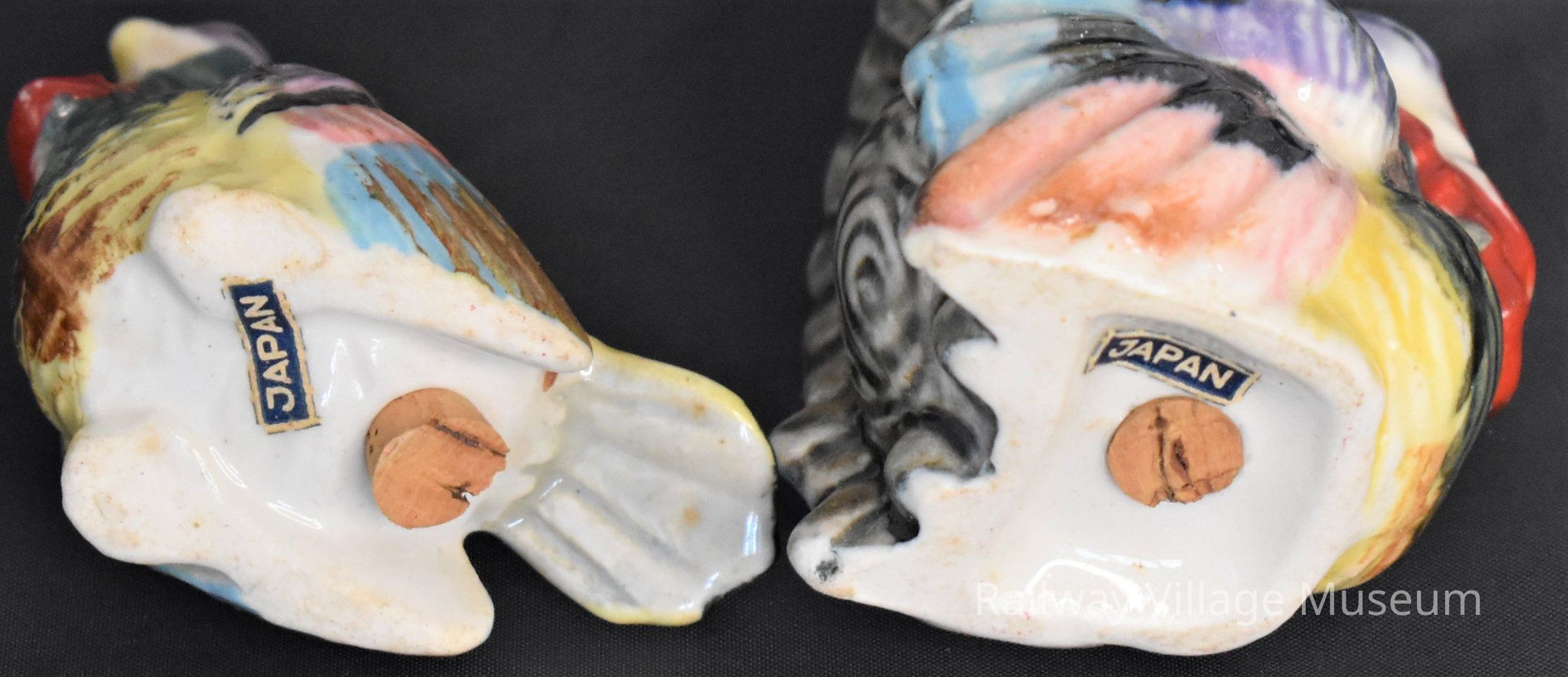 Vintage colorfully painted ceramic turkeys salt and pepper shakers. Original "Japan" labels on the bottom of each shaker.