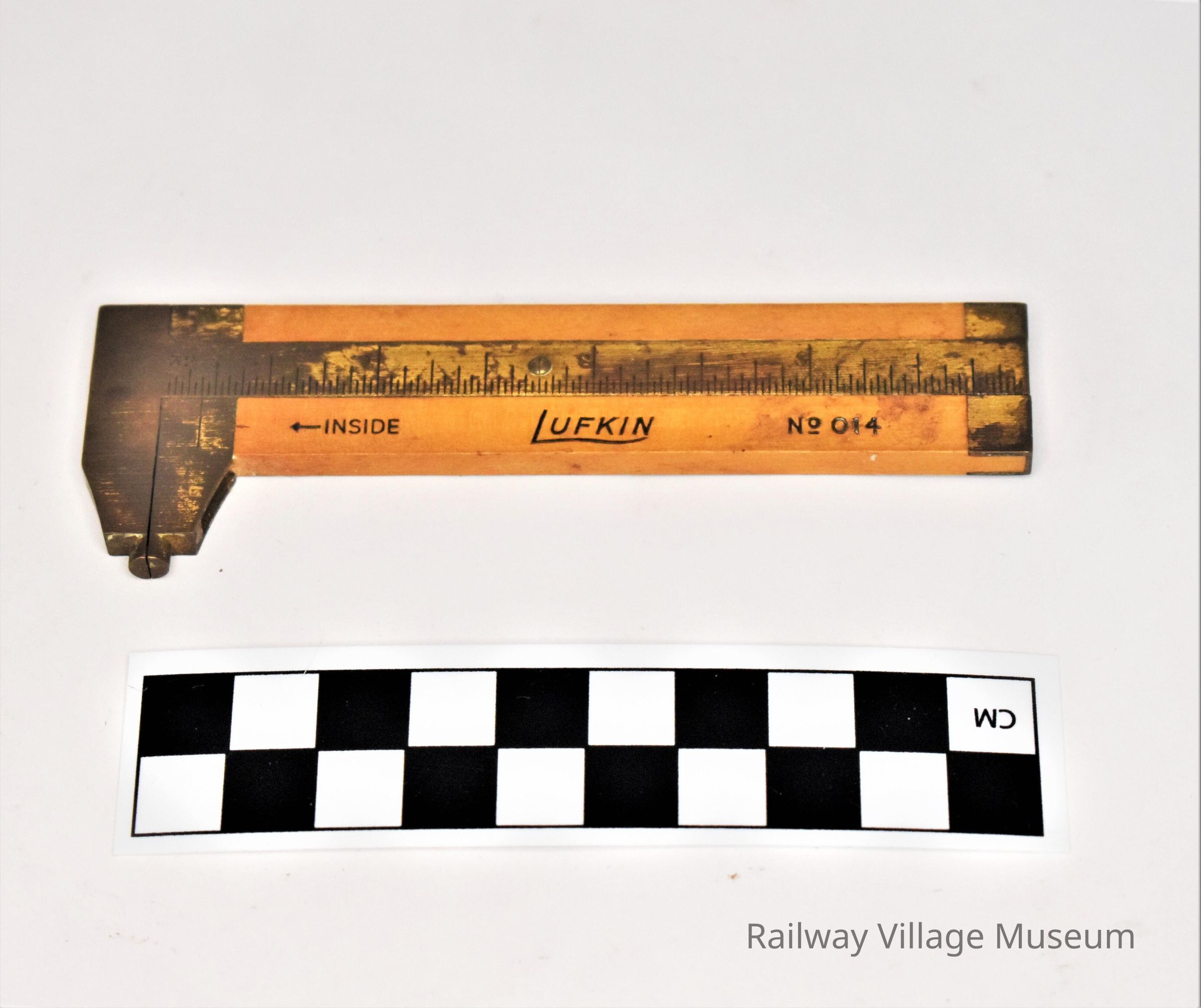 Wooden and brass gauge to measure external diameters. Manufactured by Lufkin in England.