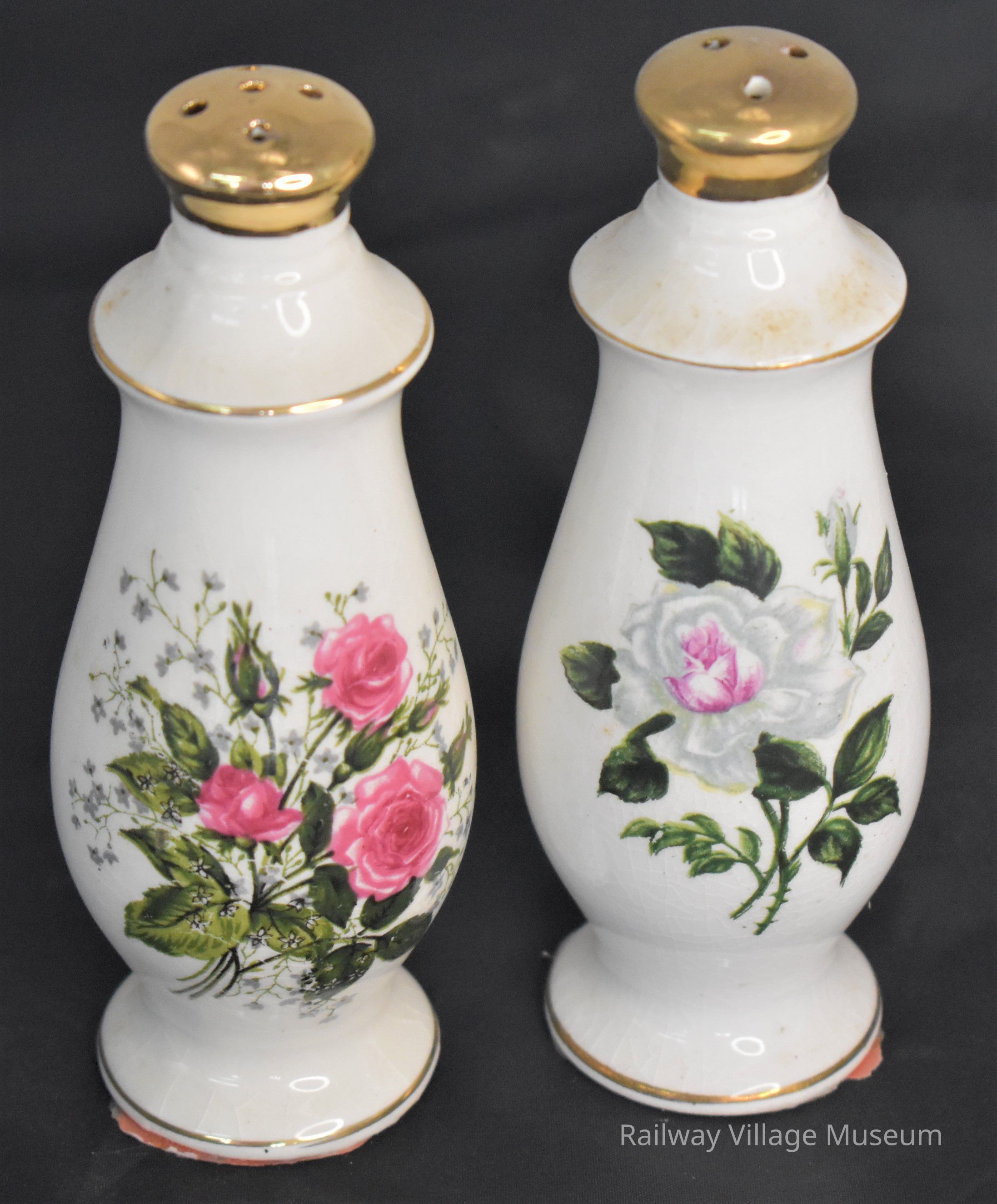 Vintage Porcelain Tall Floral Gold Trim Salt and Pepper Shakers Made in JapanEntry/Object ID