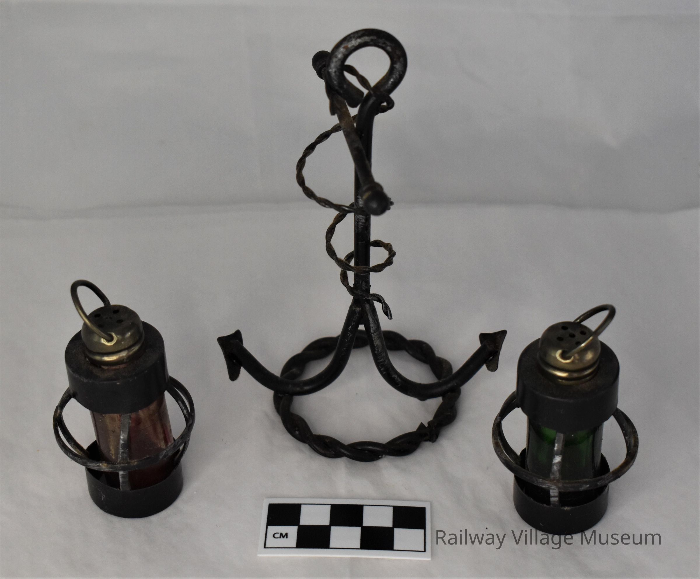 Anchor stand- 2022.1.145a, Red lantern- 2022.1.145b, and Green lantern- 2022.1.145c