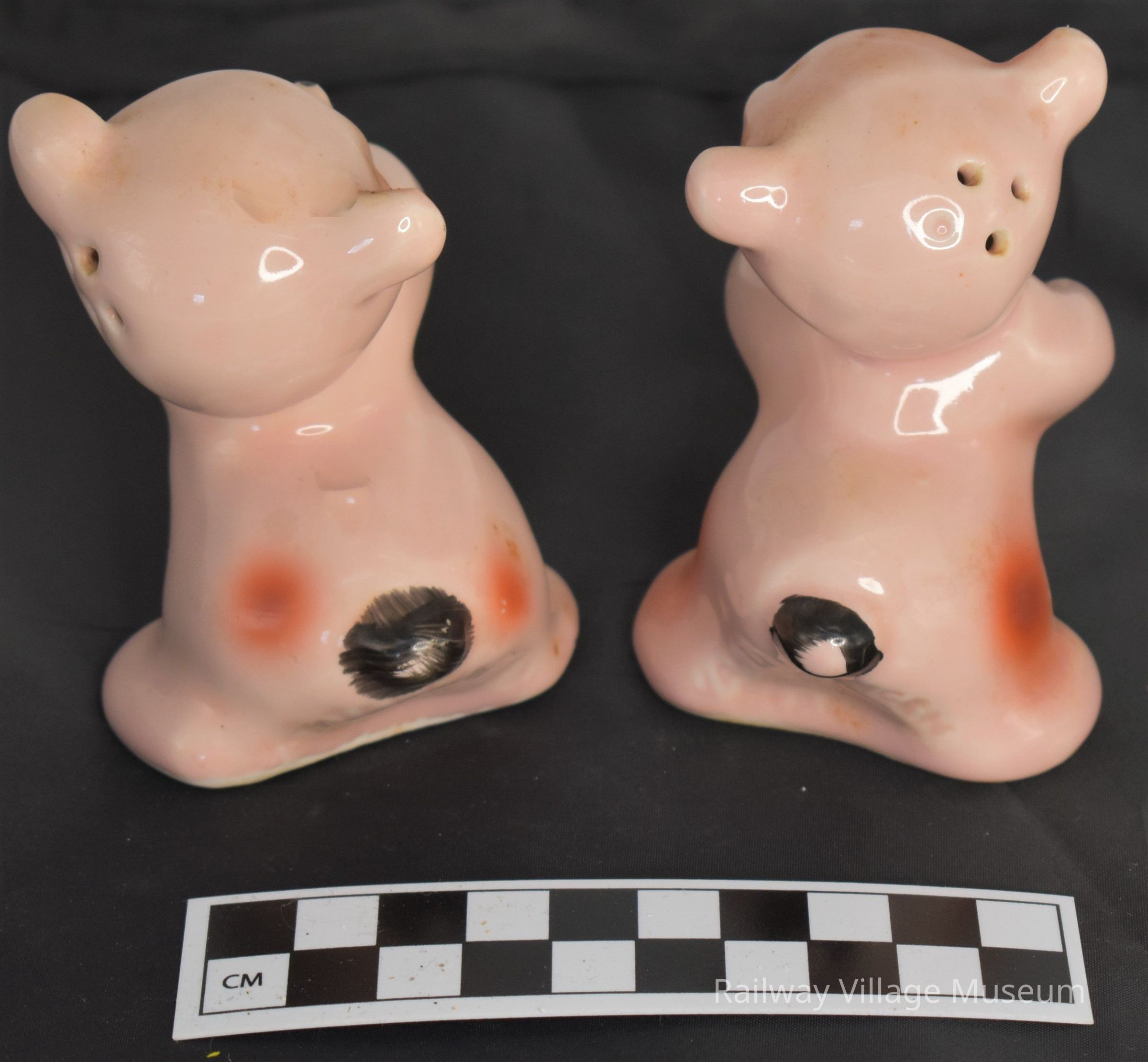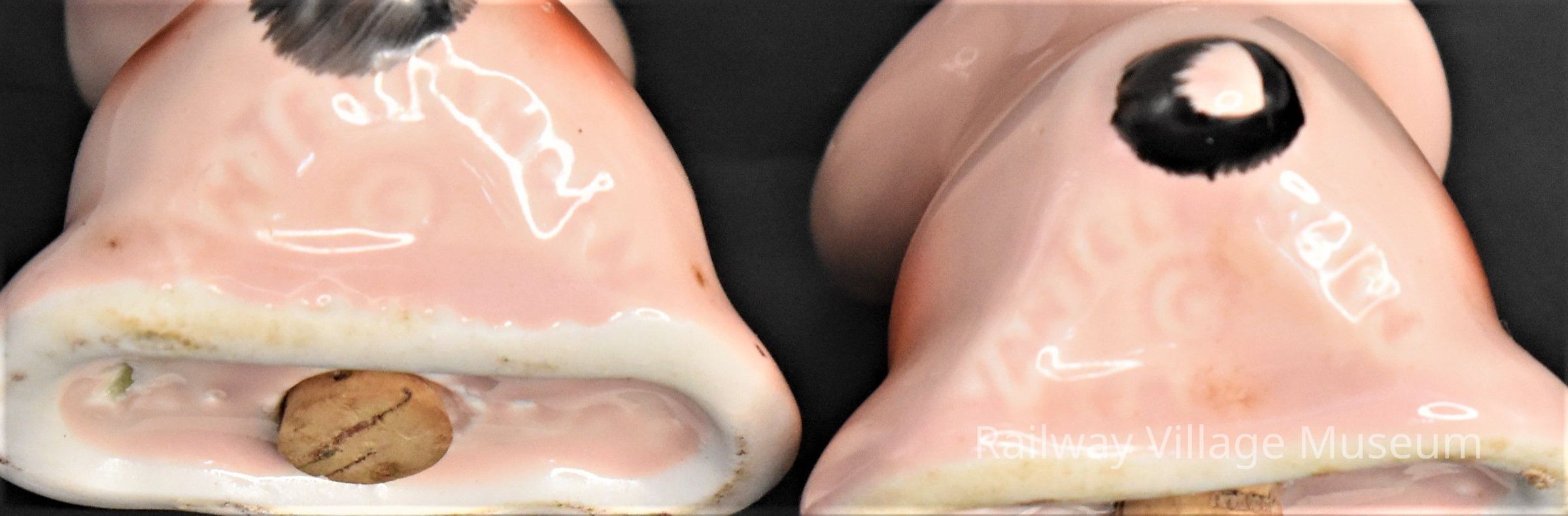 In the 1940's, children's book illustrator Ruth Van Tellingen Bendel designed a series of salt and pepper shakers for the Royal China and Novelty Company of people or animals hugging. This pair of ceramic hugging bears are signed "Van Tellingen Bears" on the back and "Pat.Pend." on the bottom.Made/Created