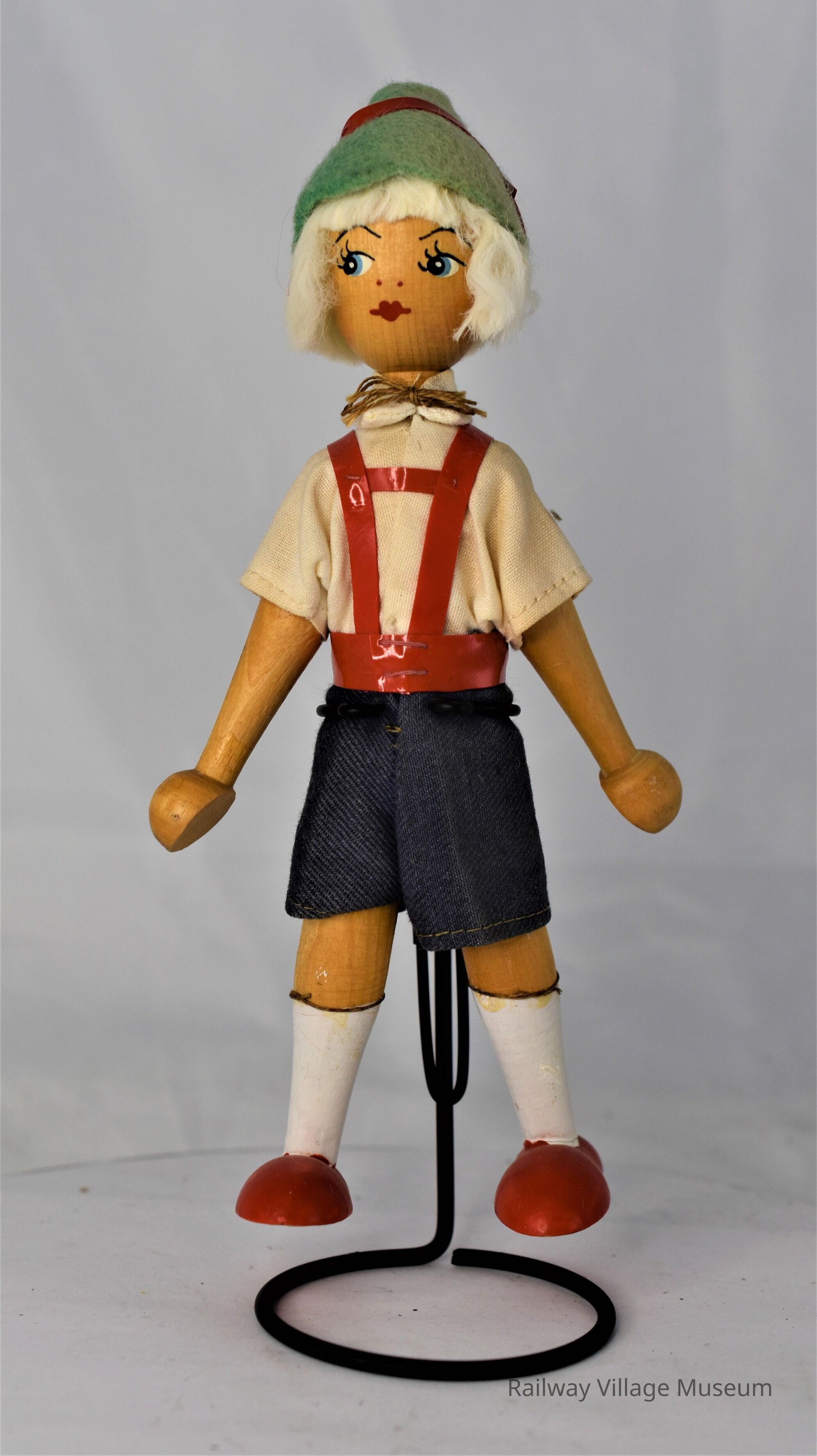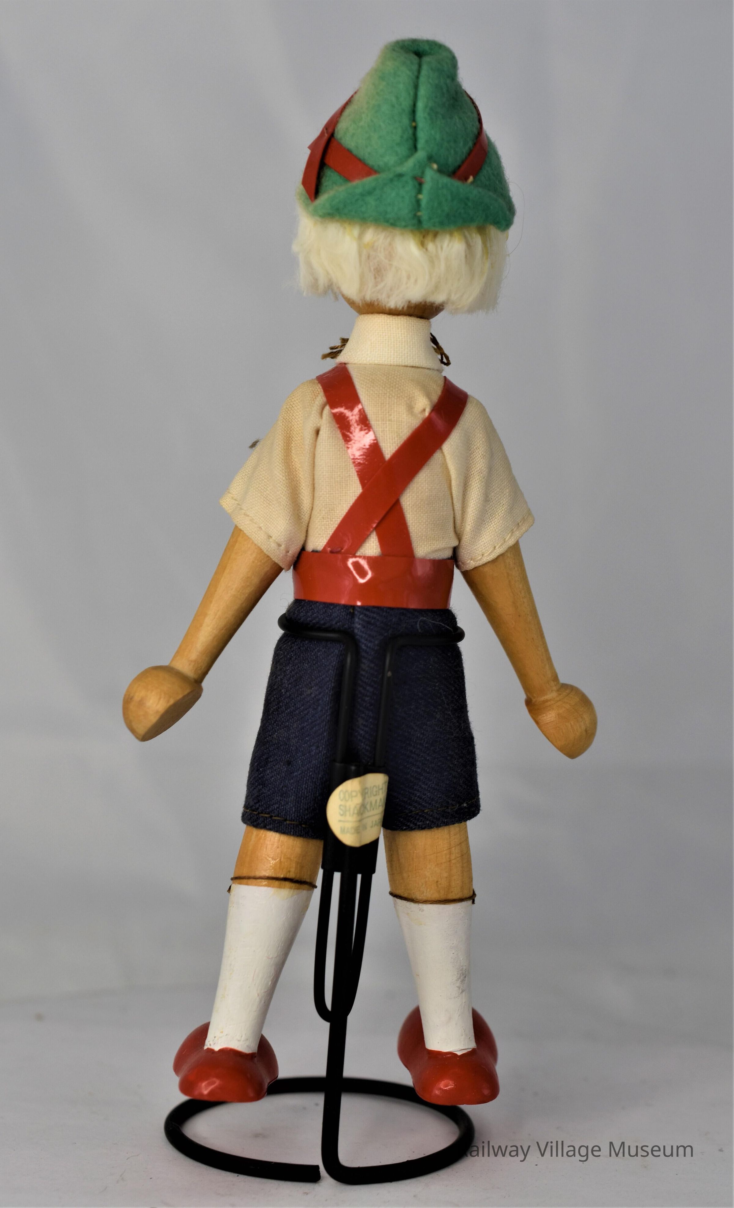 A wooden doll, like the other but missing the "Made in Poland" sticker. It's wearing lederhosen.Lexicon