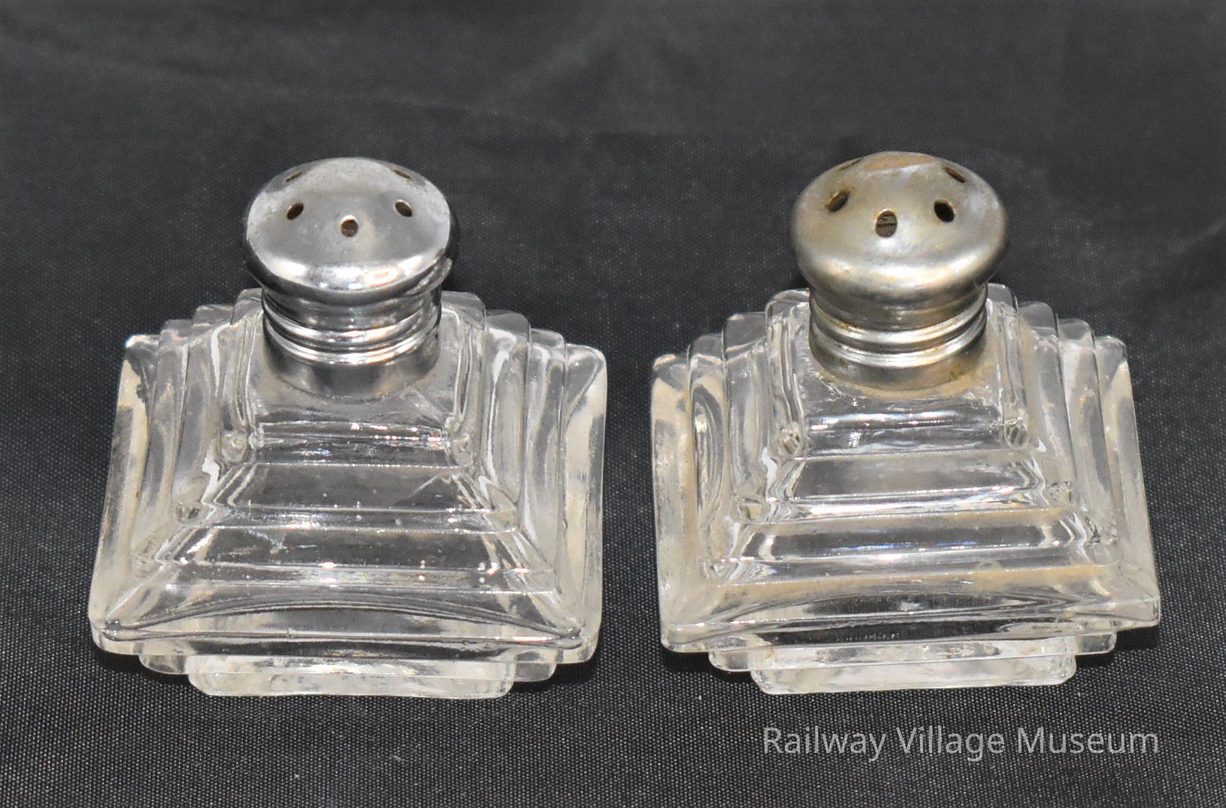 Crystal Irving Rice Co. N.Y. Chrome Tops Salt and Pepper Shakers