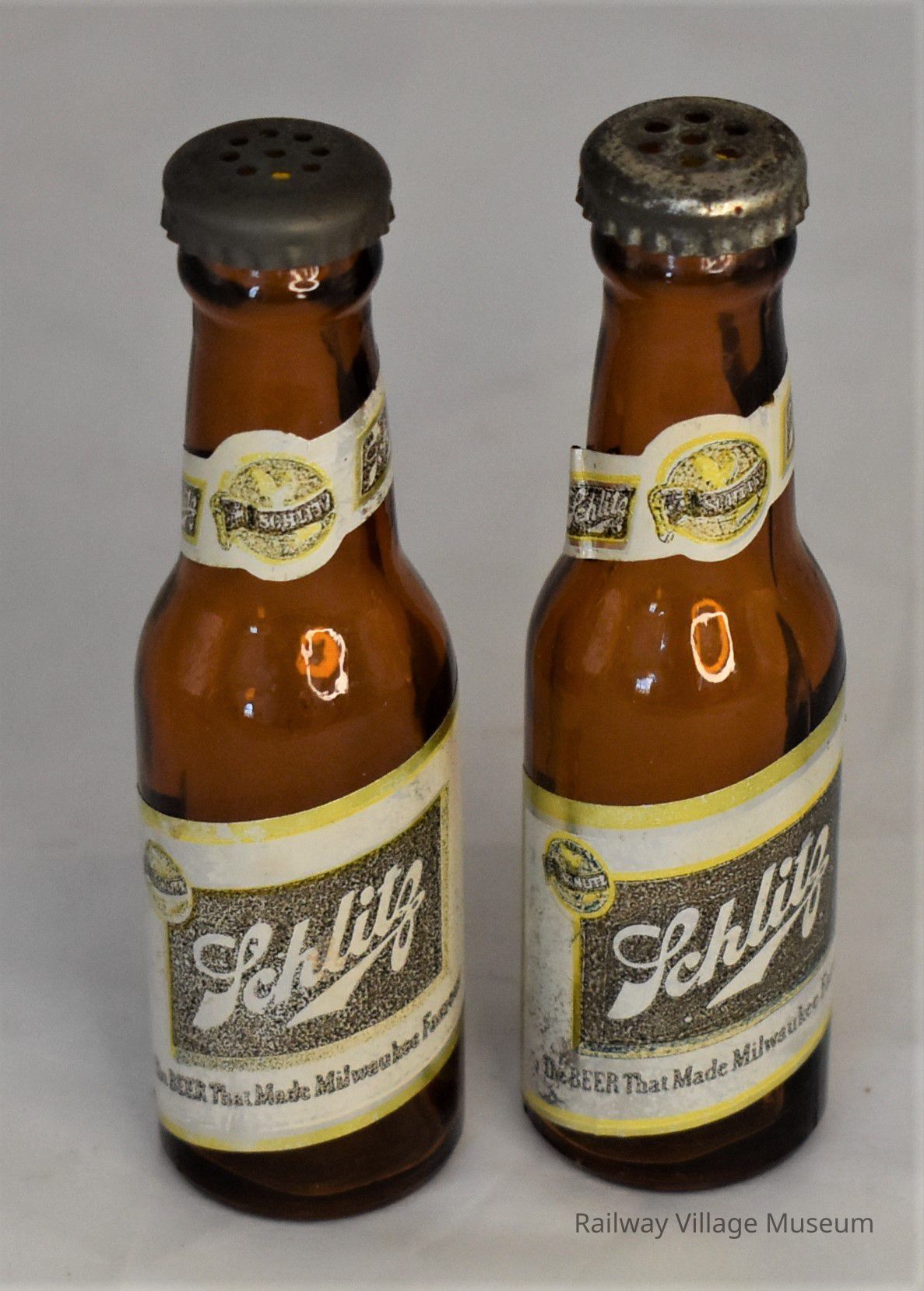 Schlitz beer bottles salt and pepper shakers: 2023.1.23a, and 2023.1.23b