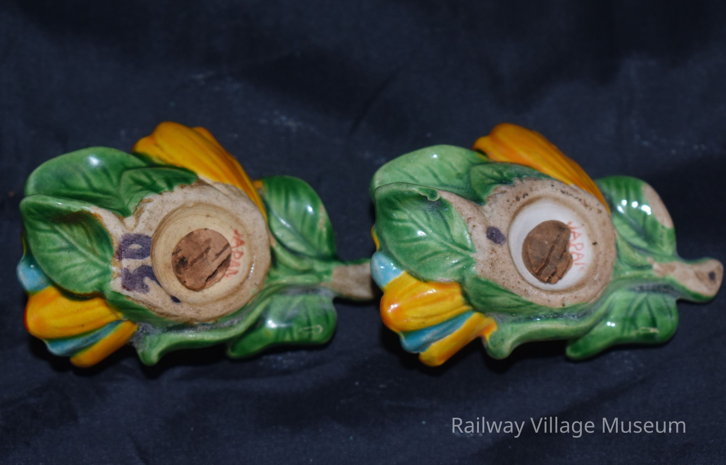 Vintage ceramic floral salt and pepper shakers made in Japan. Along with the Japan inscription, the salt shaker is marked "50" on the bottom.