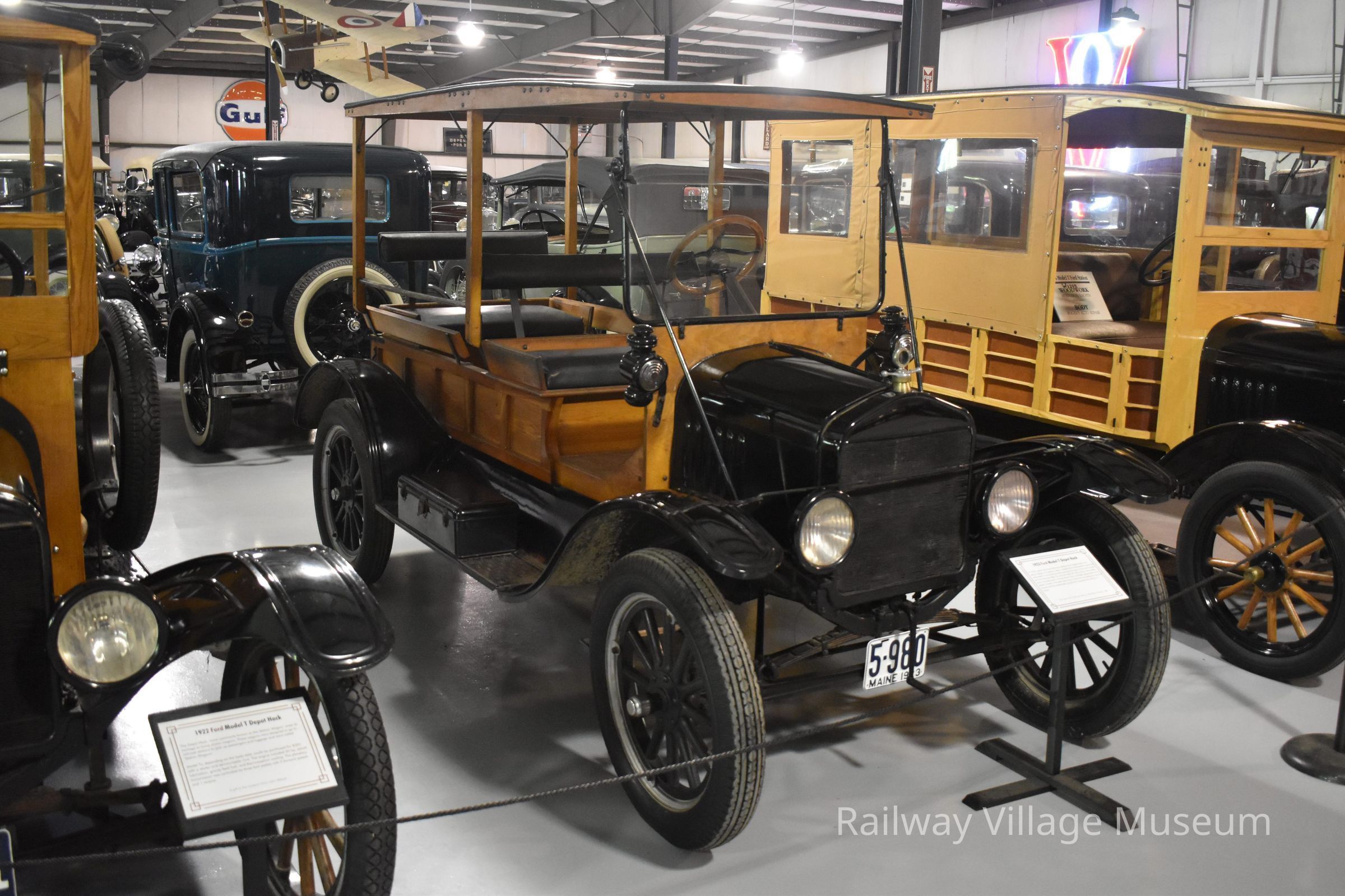 A 1923 Ford Model T Depot Hack. Depot hacks were meant to pick up passengers and luggage from railroad stations. In 1923, some automobile companies offered their station wagons as special orders. Independent bodybuilders were then contracted to assemble the parts.